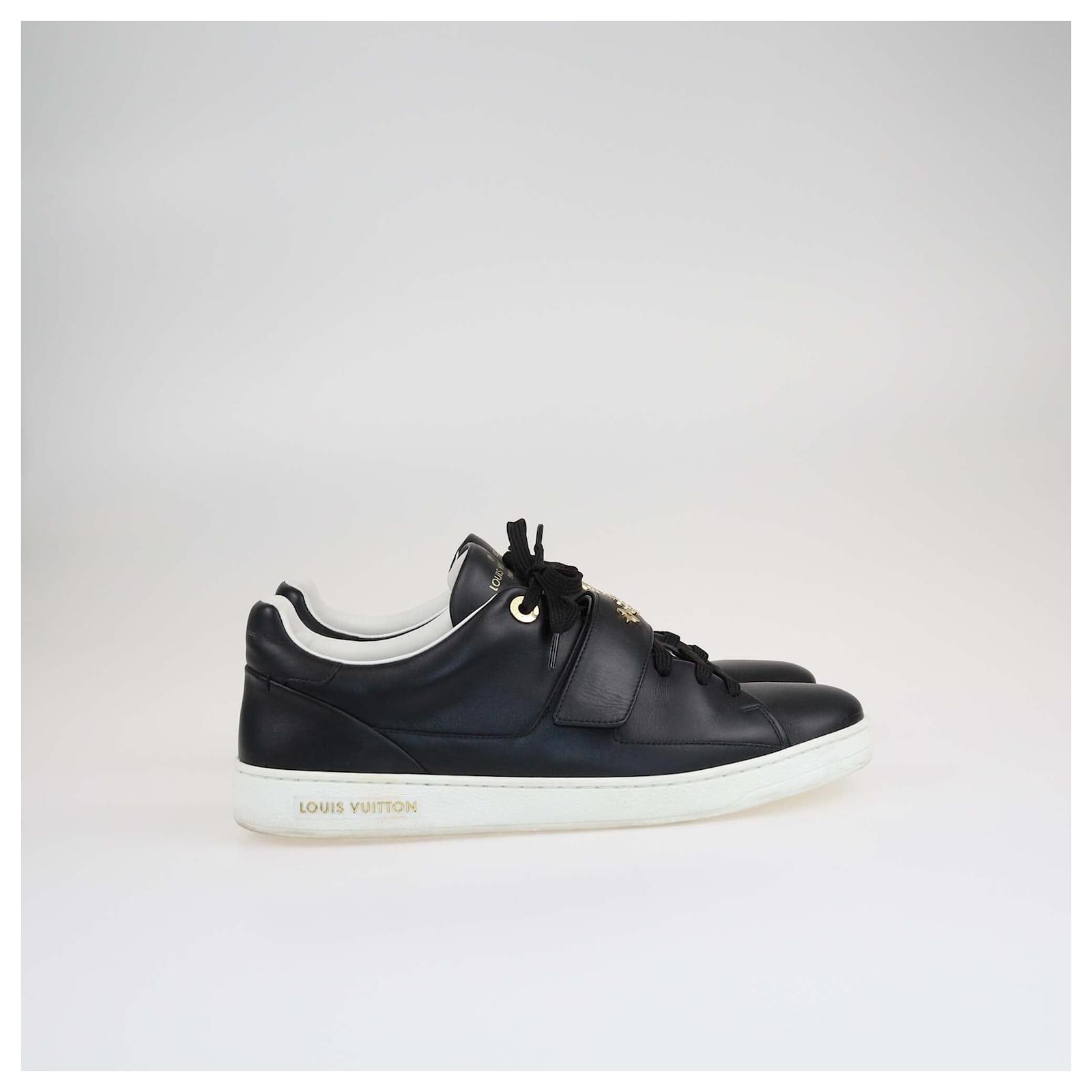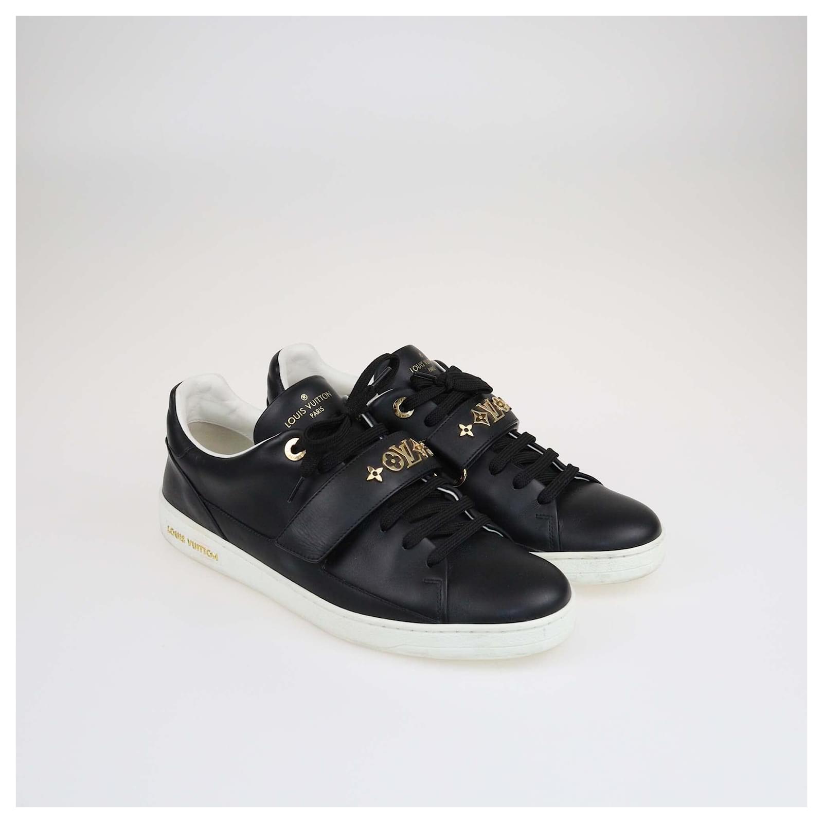 Louis Vuitton Black Frontrow Low Top Sneakers\n- Exterior Material: Leather\n- Origin: Italy\n- Size: 40\n- Condition: Good Condition – Minor Sign Of Usage On The Soles, Toe Print Marked, Minor Stain On Different Areas\n- Sku: 5430-19