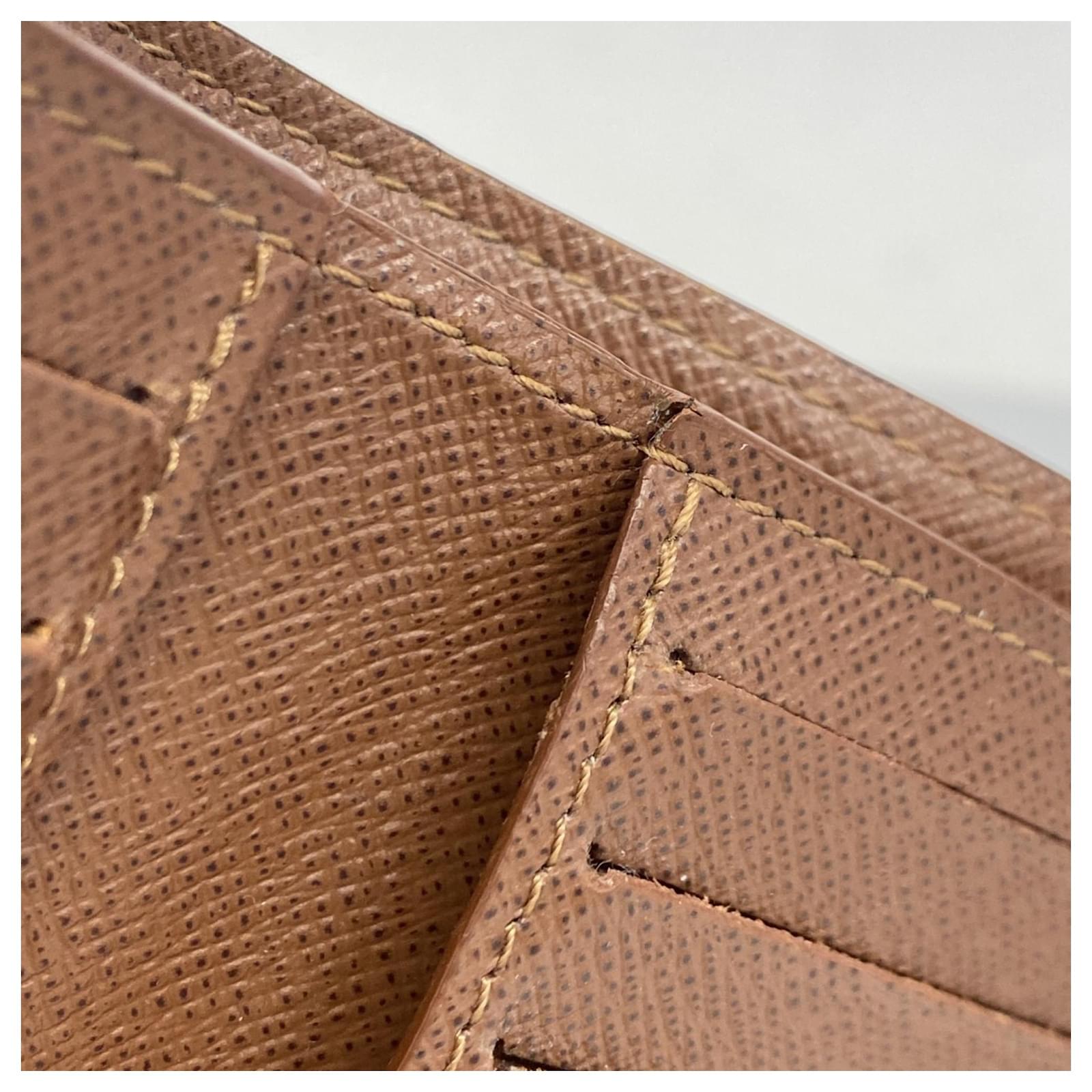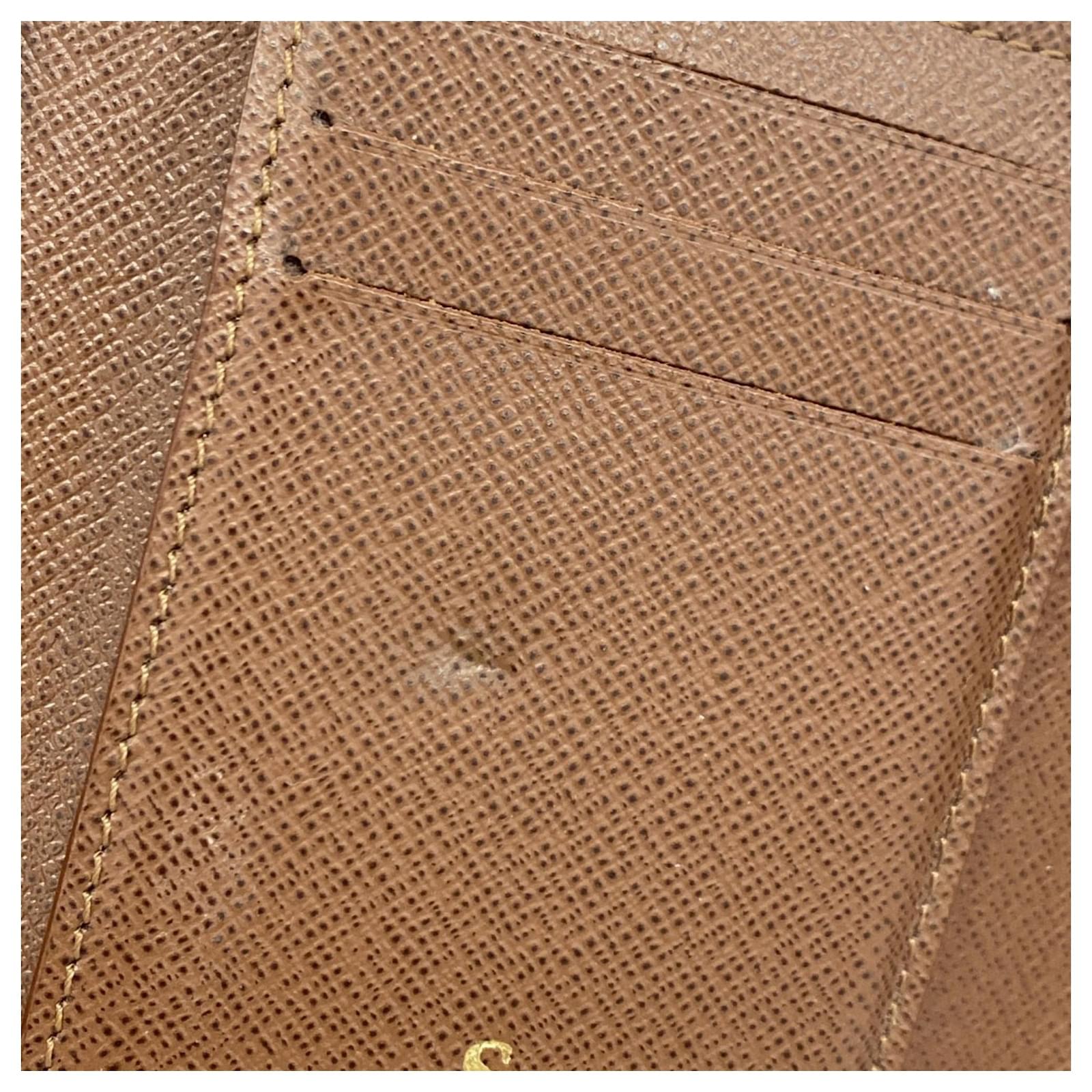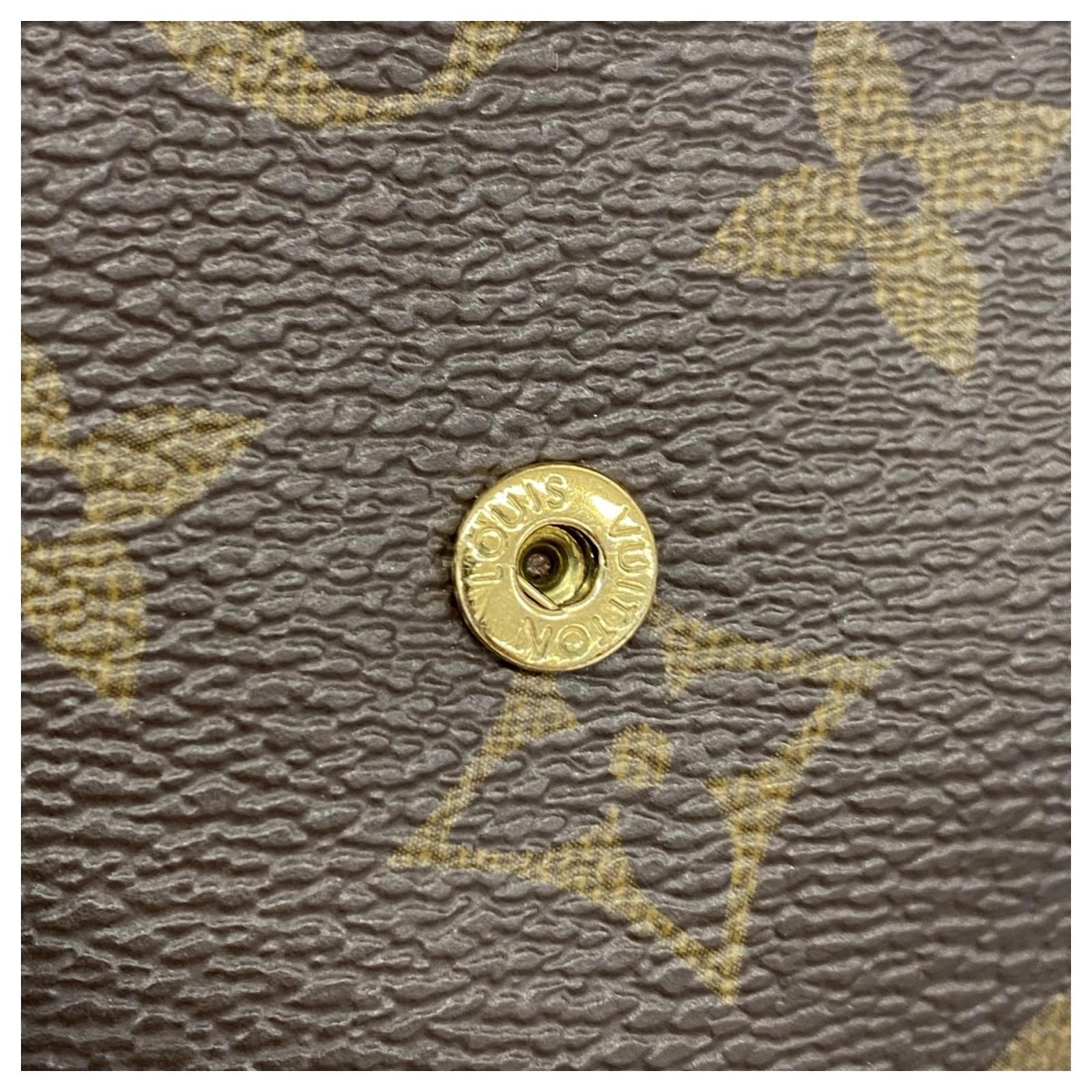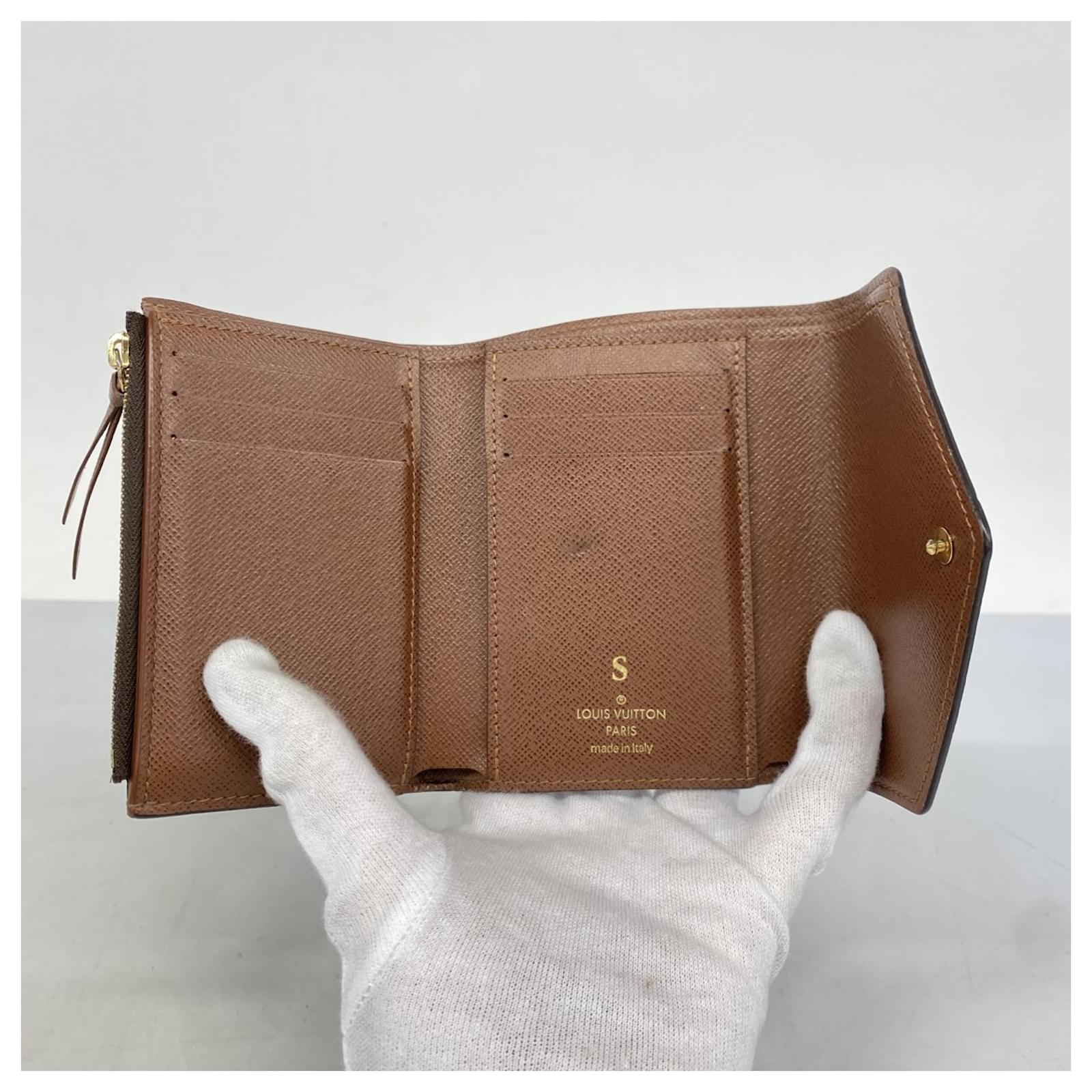 This Louis Vuitton tri-fold wallet, known as the Monogram Portefeuille Victorine M62472, comes in a classic brown color. Designed for women, it features a compact and functional layout. The wallet is in used condition, classified as Rank AB, indicating it shows slight traces of usage, including minor scratches and dirt. There is a note regarding a loose snap, which should be considered before purchase. The item includes a box and dust bag, and potential buyers are encouraged to review the images for a detailed view of its condition and included accessories.