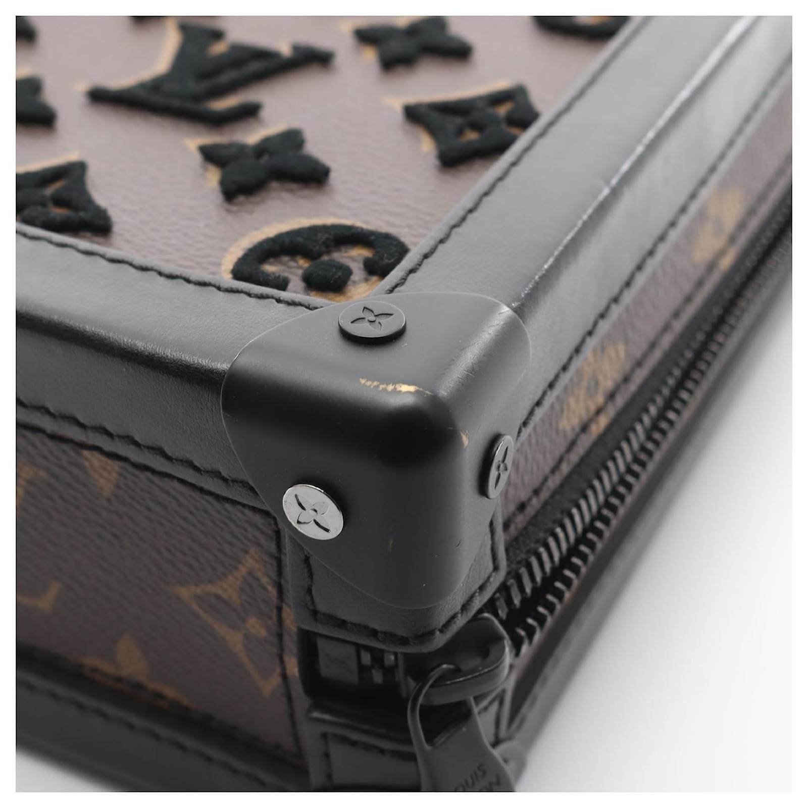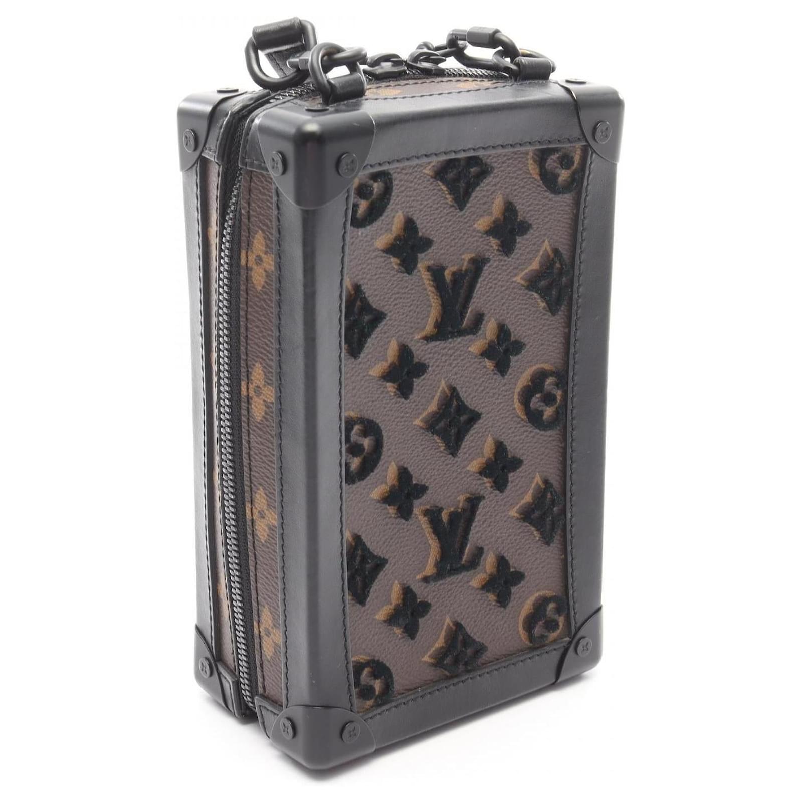 – General information -\nBrand : Louis VuittonItem name : Louis Vuitton Vertical Soft Trunk Monogram Shoulder BagModel number : M45044 – Design -Type : Shoulder BagMaterial : CanvasColor : BrownGender : Male- Size -Size : Length : 12Depth : 7Height : 20Shoulder strap : 116Item Material : PVC coated canvas, leatherItem Series : Monogram TaigaramaItem Color : Brown/BlackClosure Type : ZipperInterior : Main compartment x 1- Inventory -Serial Number : FL5119SKU : 120210058905000A0025750955- Included Items -Accessories : null*Before purchasing, please refer to the images of the accessories included with the item.- Condition -Condition : Good ConditionRank : Used A Used condition with obviously scratches and stains.Condition Notice : Before purchasing, please refer to the images for the exact condition of the item. Measurments: width: 70 mm length: 120 mm height: 200 mm strap length: 1160 mm \n Product Id: 501305 \n