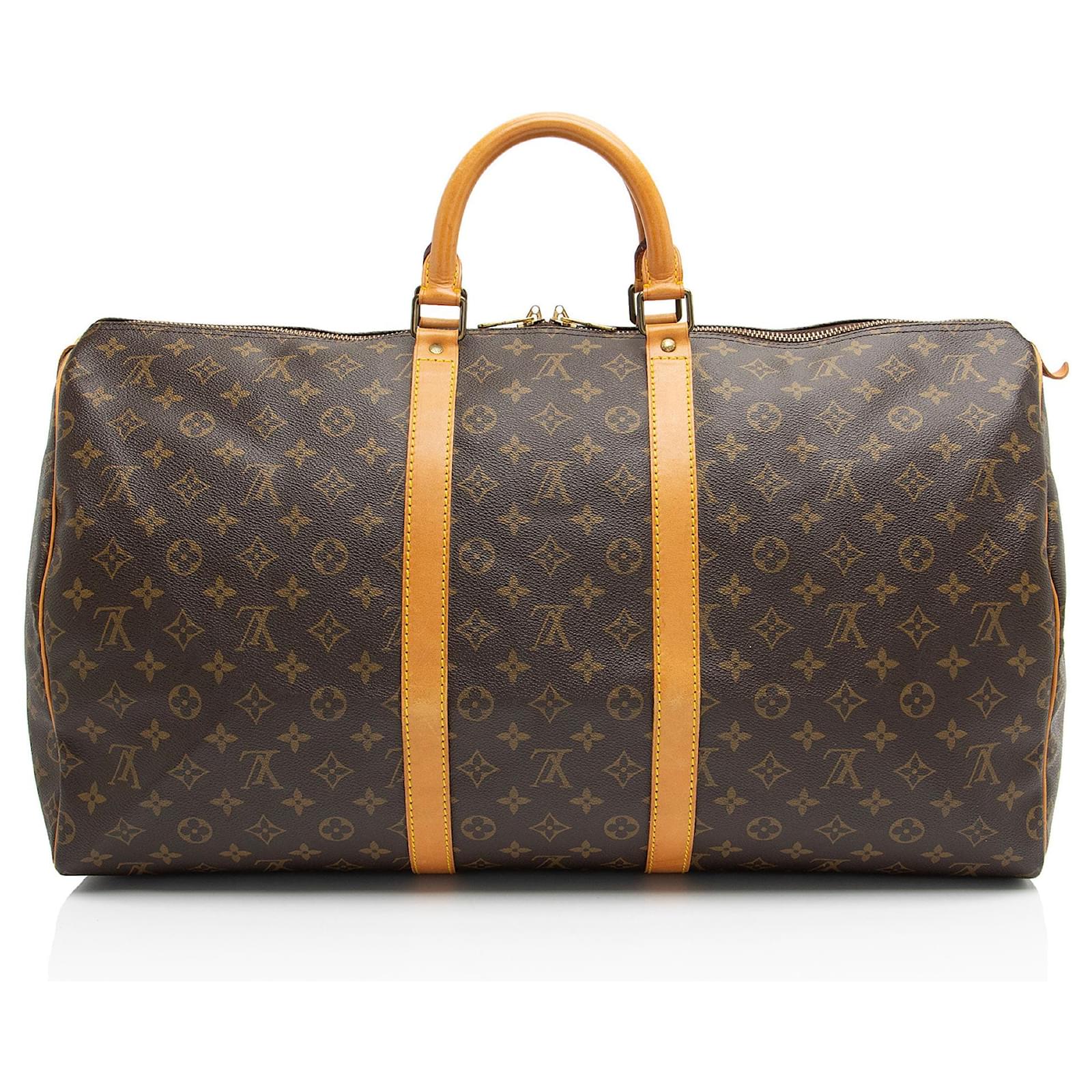 Fresh and artistic, Louis Vuitton remains one of the world’s most coveted symbols of status and sophistication. The Damier pattern was designed in 1888 and the Monogram, in 1896. Over a hundred years later, these remain two of the most recognizable prints in the world. Nicolas Ghesquière, previously of Balenciaga, is the artistic director of women’s collections (2013). Virgil Abloh was the artistic director of the men’s line starting in March 2018 until his untimely passing in 2021.Condition Notes: Darkening, marks, and scuffs throughout exterior leather trim. Dryness, darkening, and wear throughout handles. Visible wear throughout handle casing. Scuffs to exterior bottom corners. Light scuffs and wear throughout exterior coated canvas. Surface scratches and tarnishing to hardware. Marks and wear throughout interior. Missing luggage tag, handle fastener, and lock and keys.Width (at base): 22\”Height: 12\”Depth: 9.5\”Handle Drop: 4\”Circa: 1987Type of Material: Coated Canvas, LeatherColor: BrownLining: Brown Fine TextilePockets: NoneHardware: Gold ToneClosure: Double ZipOrigin: France Measurments: width: 558 mm height: 304 mm handle drop: 101.6 mm \n Product Id: 511248 \n