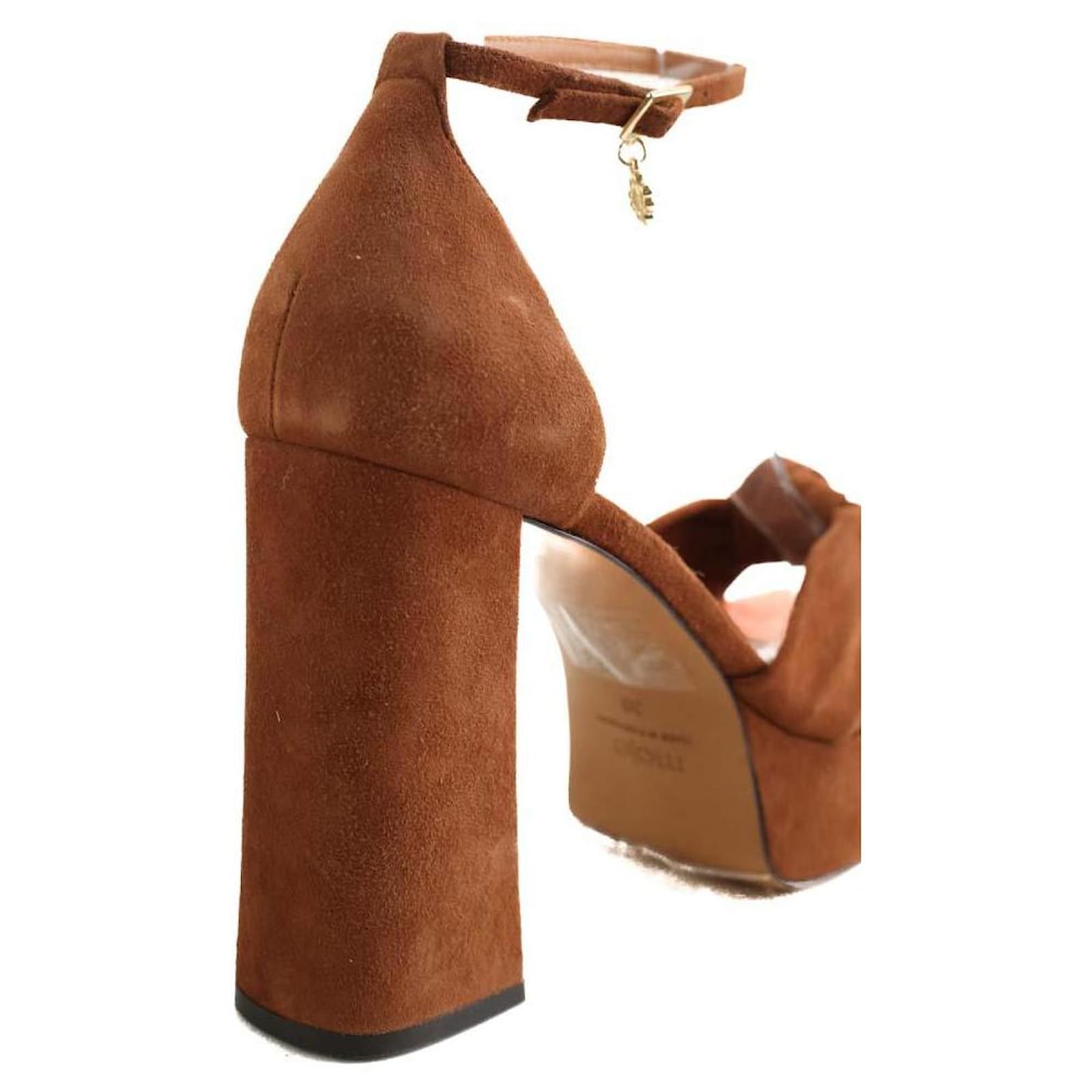 Second-hand brown Maje heels. Main material suede. Size 39. Heel height: 12cm. Women’s collection. Never worn with tag. Reference: 044080006.