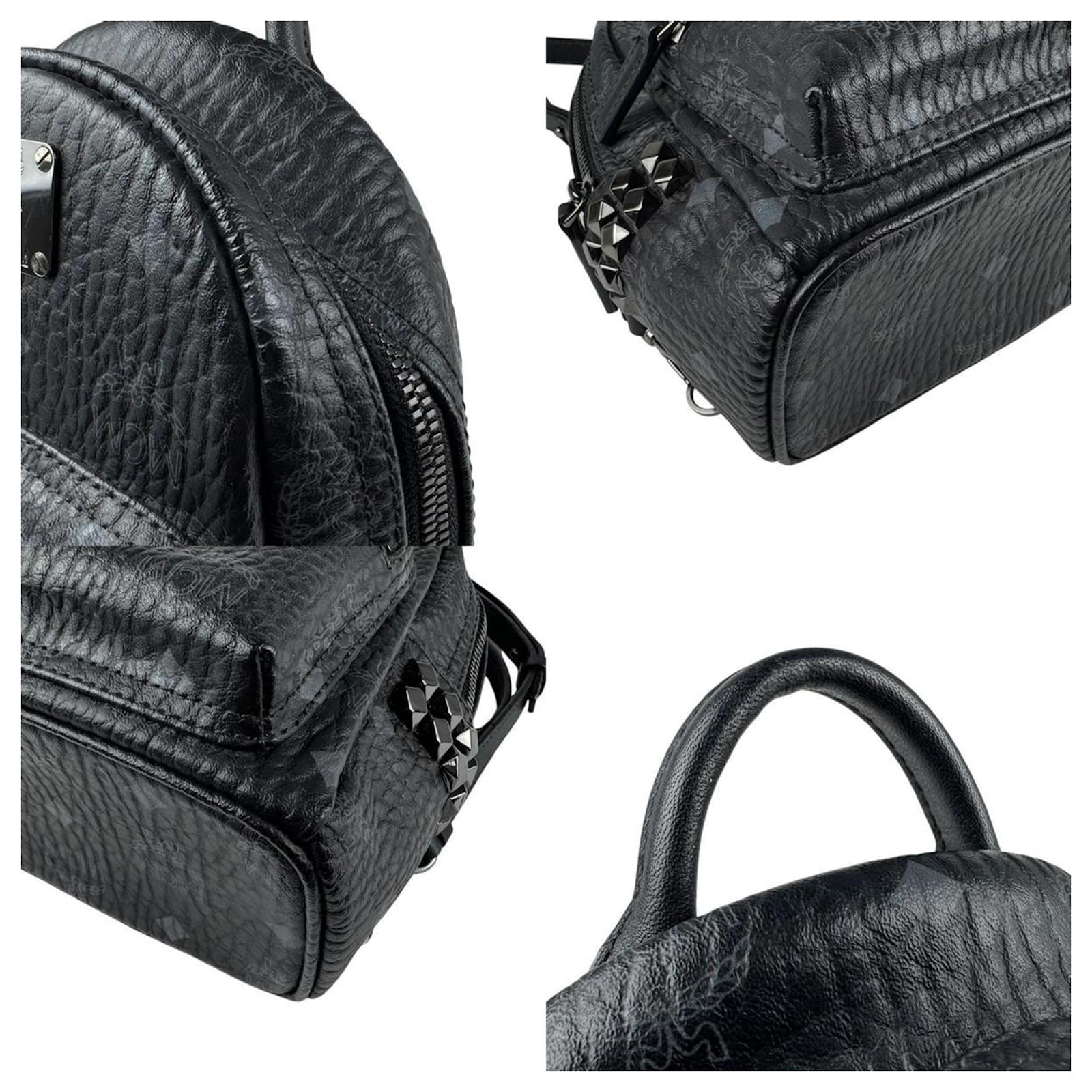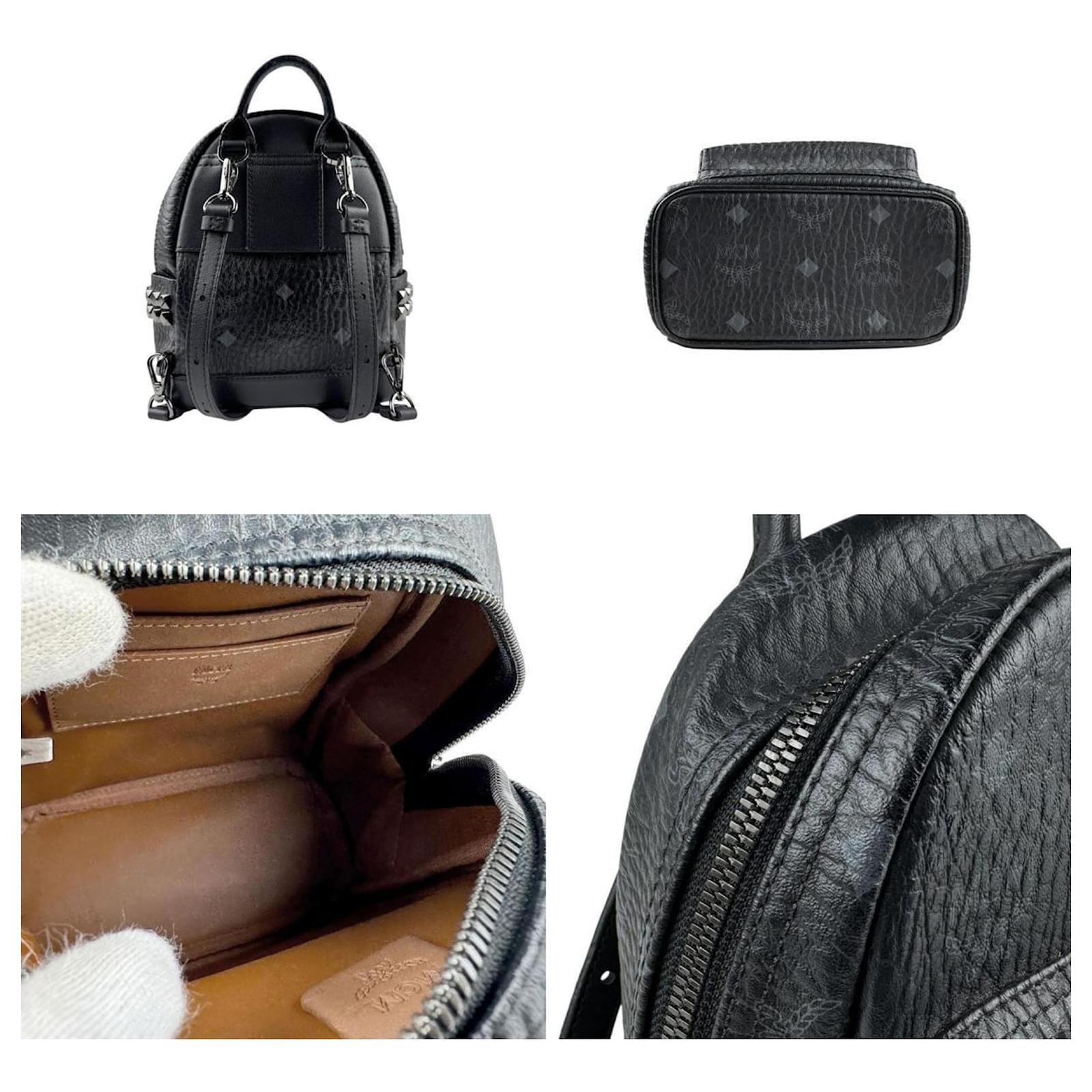 This MCM backpack is crafted from leather and features a sleek black design. It includes a zipper outer pocket for added convenience and is secured with a strap closure. The dimensions of the backpack are 21cm in height, 17cm in width, and 9cm in depth, with a handle length of 15cm and a strap length of 103cm. \n\nThe item is classified as used but remains in good condition, showing slight traces of usage such as scratches and dirt. It comes with a dust bag for storage. Potential buyers are encouraged to review the images for a clear understanding of the item’s condition and included accessories.