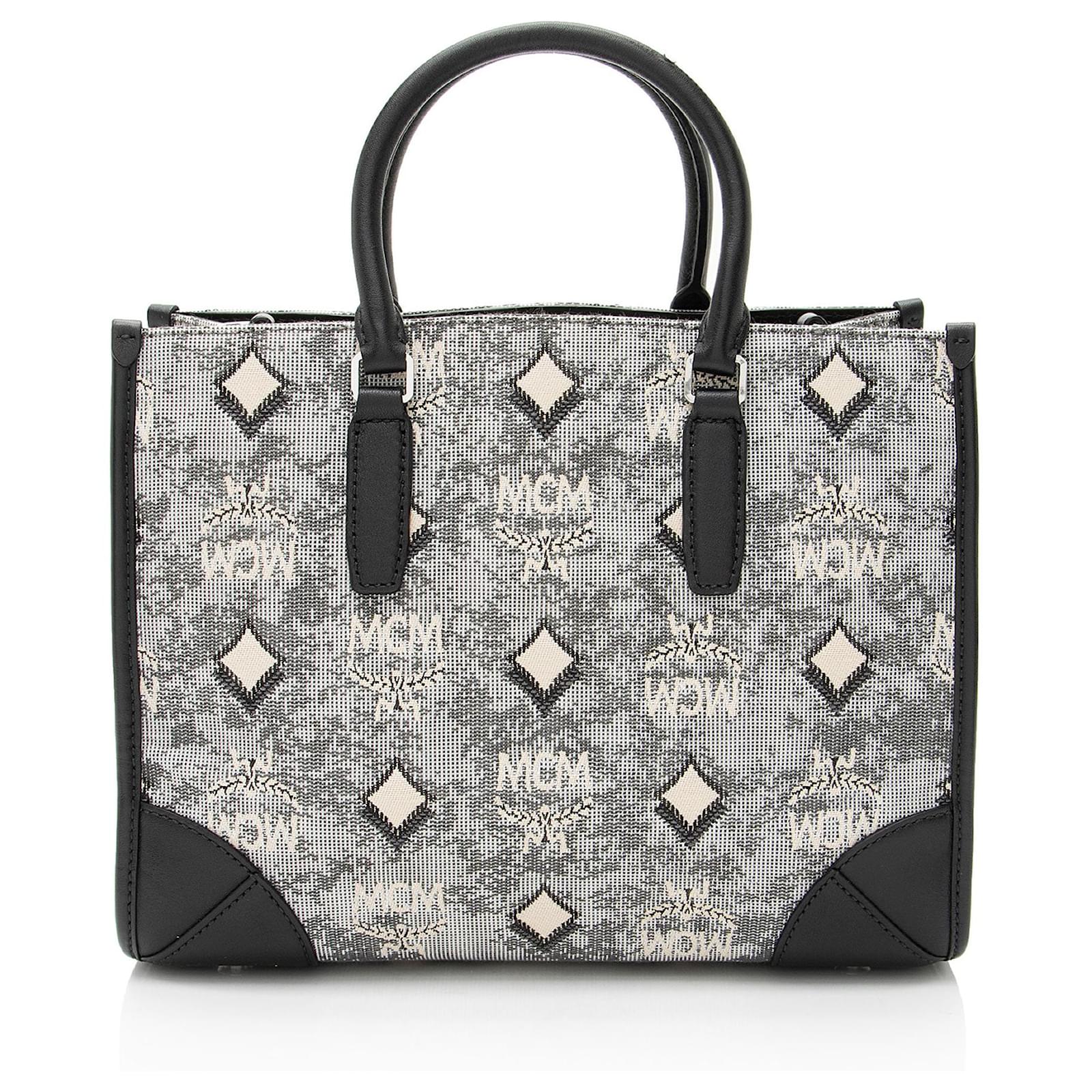 Mode Creation Munich is known throughout Europe for their luxurious flair and superior quality. Chic yet functional, MCM handbags are perfect for everyday.Condition Notes: Minor scuffs throughout exterior leather trim and handles. Light surface scratches to hardware. Minor wear to interior. Missing detachable shoulder strap.Width (at base): 9.25\”Height: 6.5\”Depth: 3.5\”Handle Drop: 3\”Type of Material: Leather, Monogram CanvasColor: Black, WhiteLining: Beige Fine TextilePockets: Two InteriorHardware: Silver ToneClosure: Spring ClaspOrigin: KoreaIncludes: Dust Bag Measurments: width: 234 mm height: 165 mm handle drop: 76.2 mm \n Product Id: 511010 \n