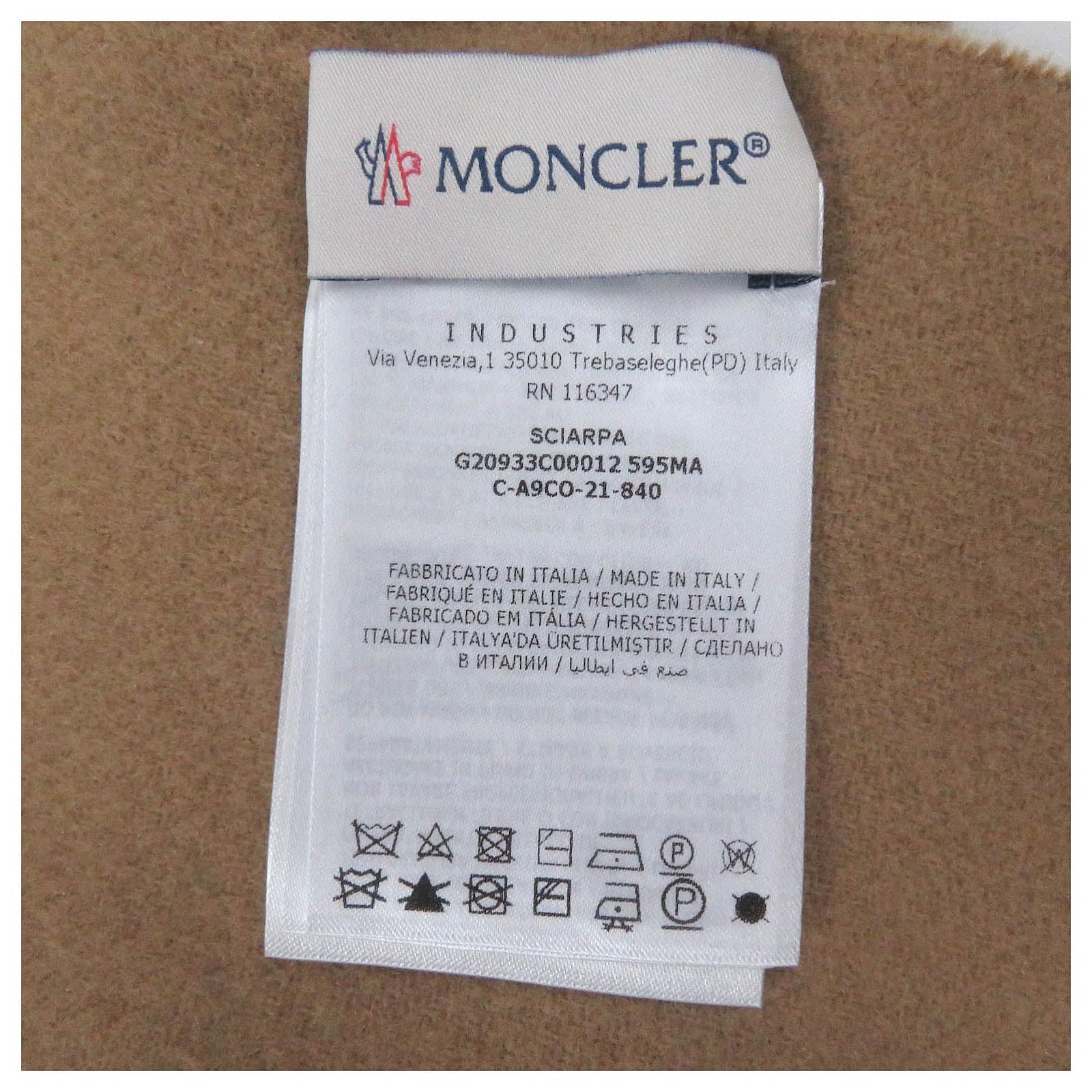 – General information – Brand : MonclerItem name : Moncler Wool Scarf Beige UNIModel number : – Design -Type : ScarfMaterial : CanvasColor : BeigeGender : Male- Size -Size : Depth : 67.00Length : 166.00Color : beigeMaterial : 100% wool- Inventory -Serial Number : nullSKU : 120250000363000A0025595267- Included Items -Accessories : null*Before purchasing, please refer to the images of the accessories included with the item.- Condition -Condition : Great ConditionRank : Used A Good used condition with slight scratches and stains.Condition Notice : Before purchasing, please refer to the images for the exact condition of the item.