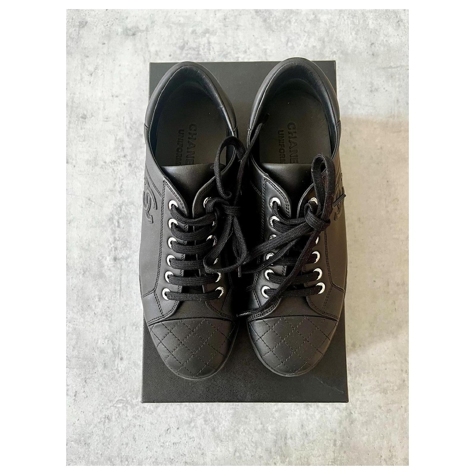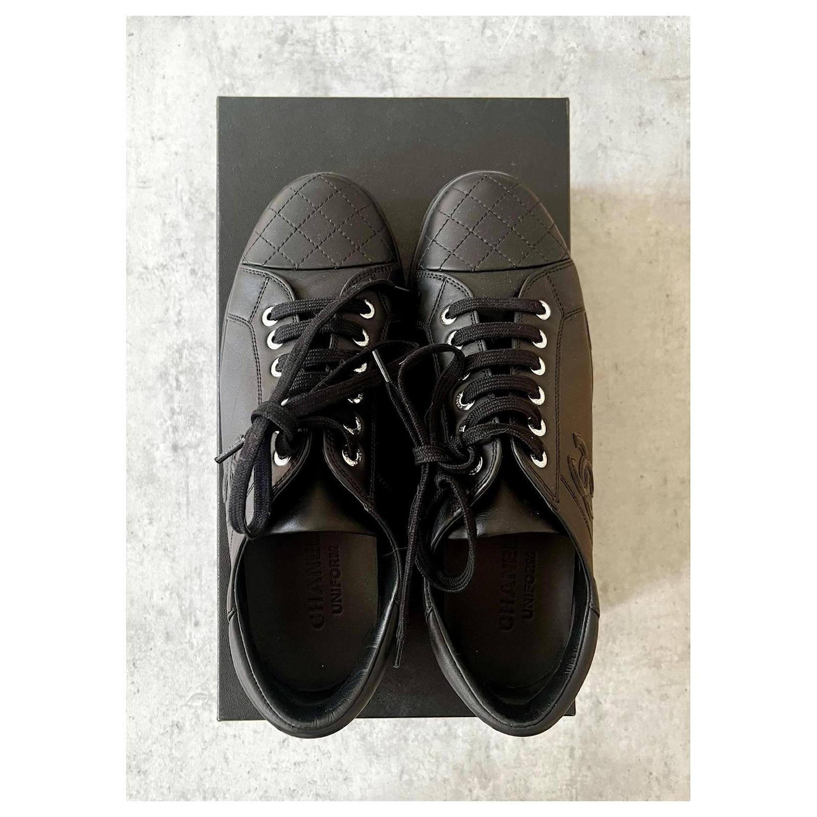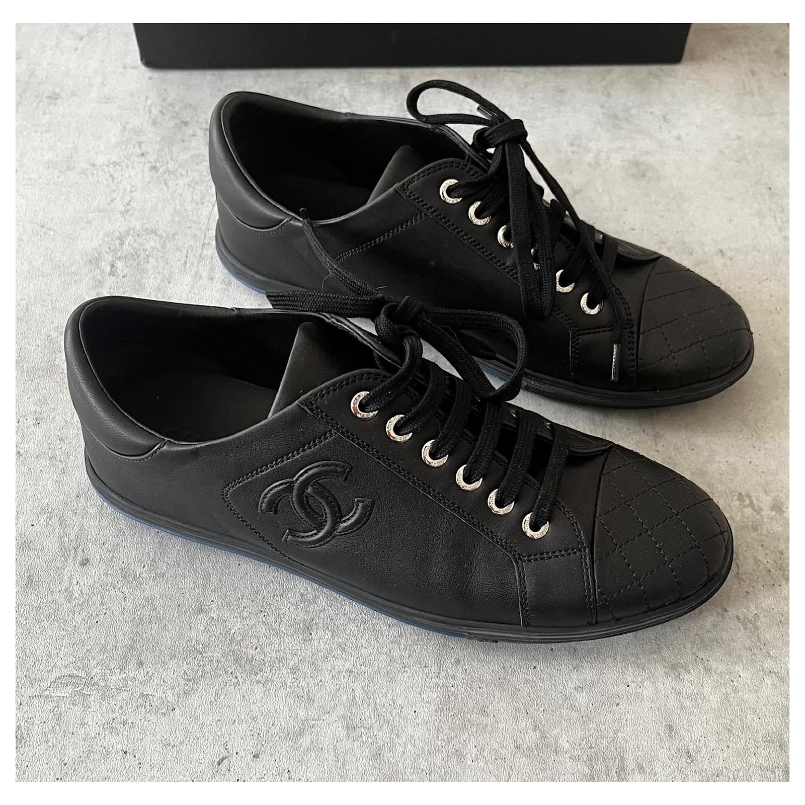 Stunning new Chanel sneakers\nIn black calfskin\nMade in Italy\nIn their Chanel box\nWith quilting and CC logo