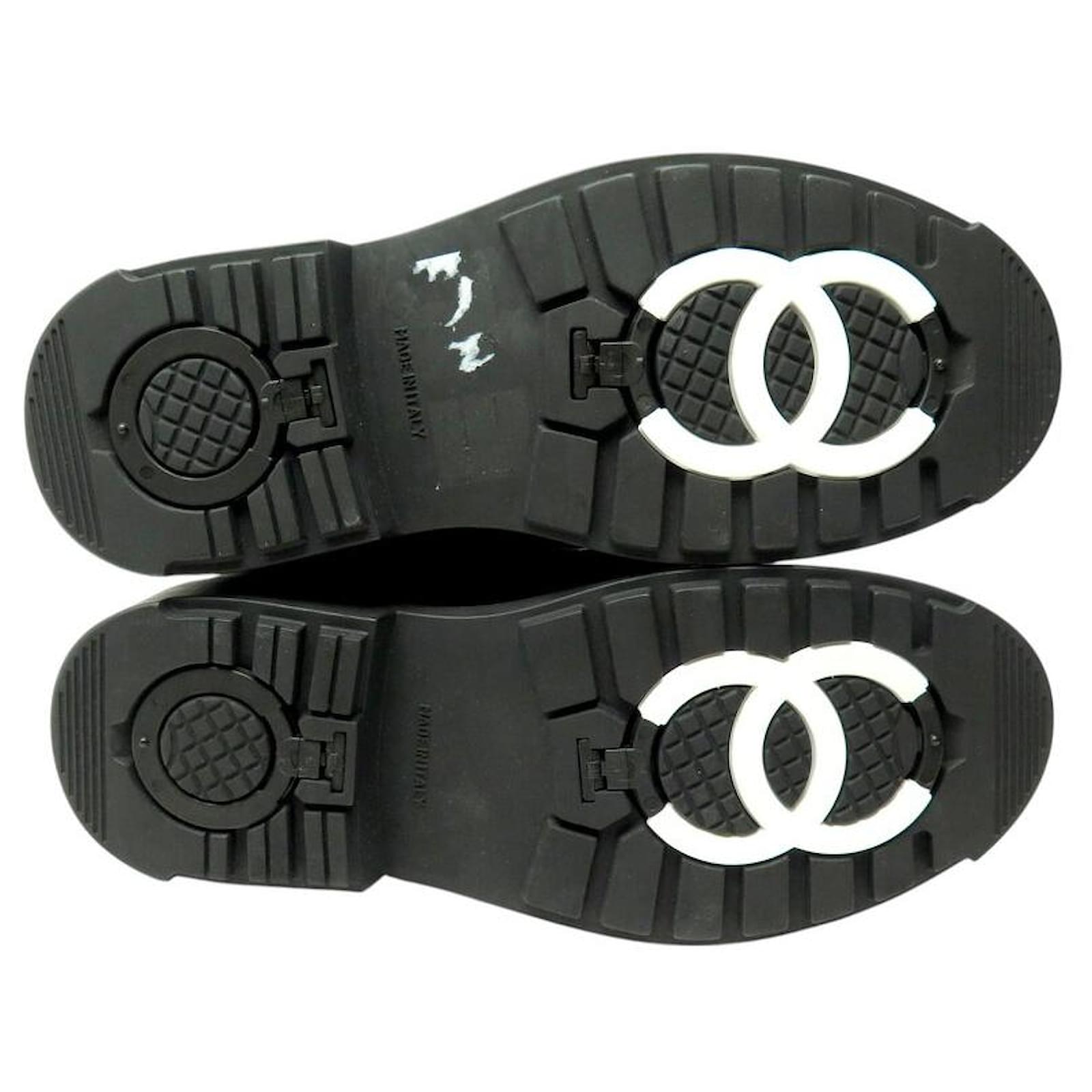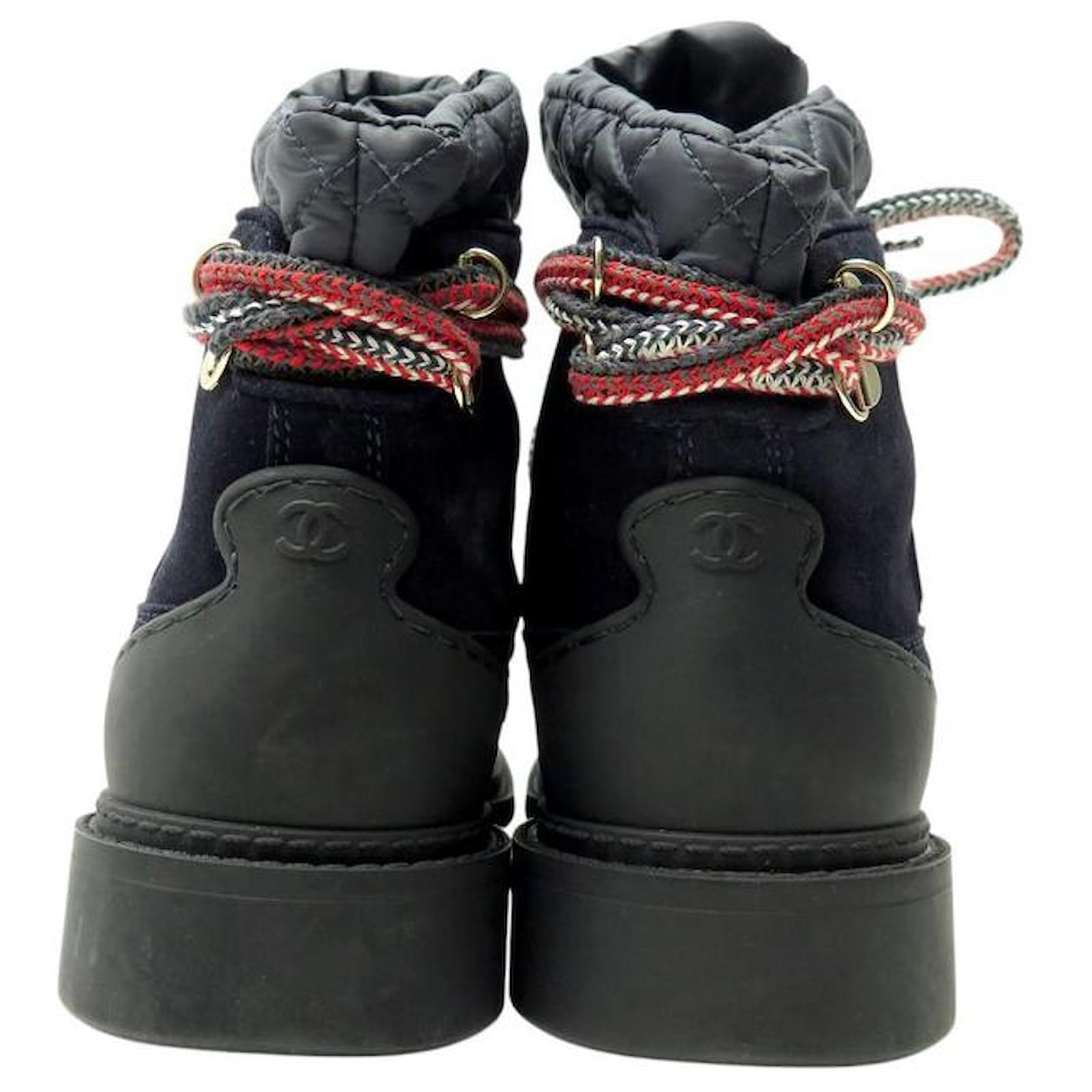 Boot-type shoes\nBrand: CHANEL\nModel: COMBAT BOOTS SUEDE LINED\nGender: Women\nValue of new: 1600 euros\n\nList of documents and accessories provided:\nBox\nDust bag\n\nCHARACTERISTICS:\nMaterial: suede – calf velour\nColor: Navy blue\nNote: from staff sales/private sales\nEstimated new value based on the last known value or an equivalent model\nSize: 36\nHeel height (in cm): 03\nDimensions: Length of the outer sole (cm): 27\nMaximum width of the sole (cm): 10\n\nCondition: NEW condition\nnever worn – slight storage marks – see photos Reference: 267278