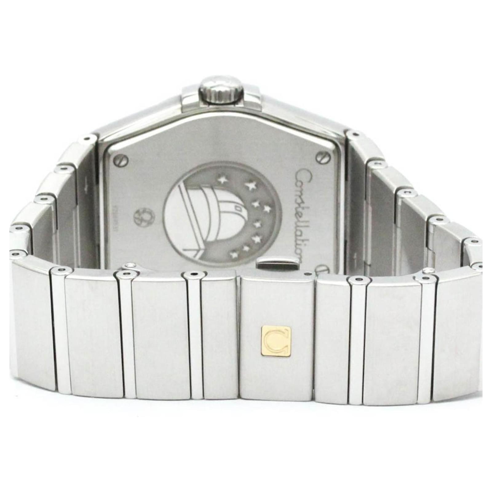 The Omega Constellation Steel Quartz Watch, model code 123.10.35.60.02.001, features a polished silver dial and a stainless steel case, making it suitable for dress and formal occasions. With a case diameter of 35mm, this wristwatch is powered by a reliable quartz movement and includes a date function. \n\nThis pre-owned timepiece is in very good condition, showing only insignificant signs of wear, with no scratches on the glass or crown. The battery has been replaced, and the watch has been polished for maintenance. It is designed to fit a wrist size of 16cm (6.29 inches) and weighs 130g (4.58oz). \n\nThe watch does not come with any accessories. Its serial number is 92**9531.