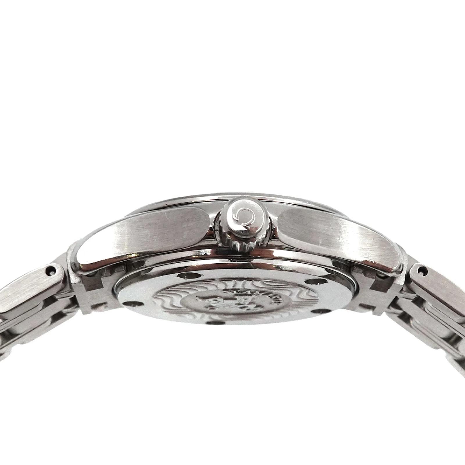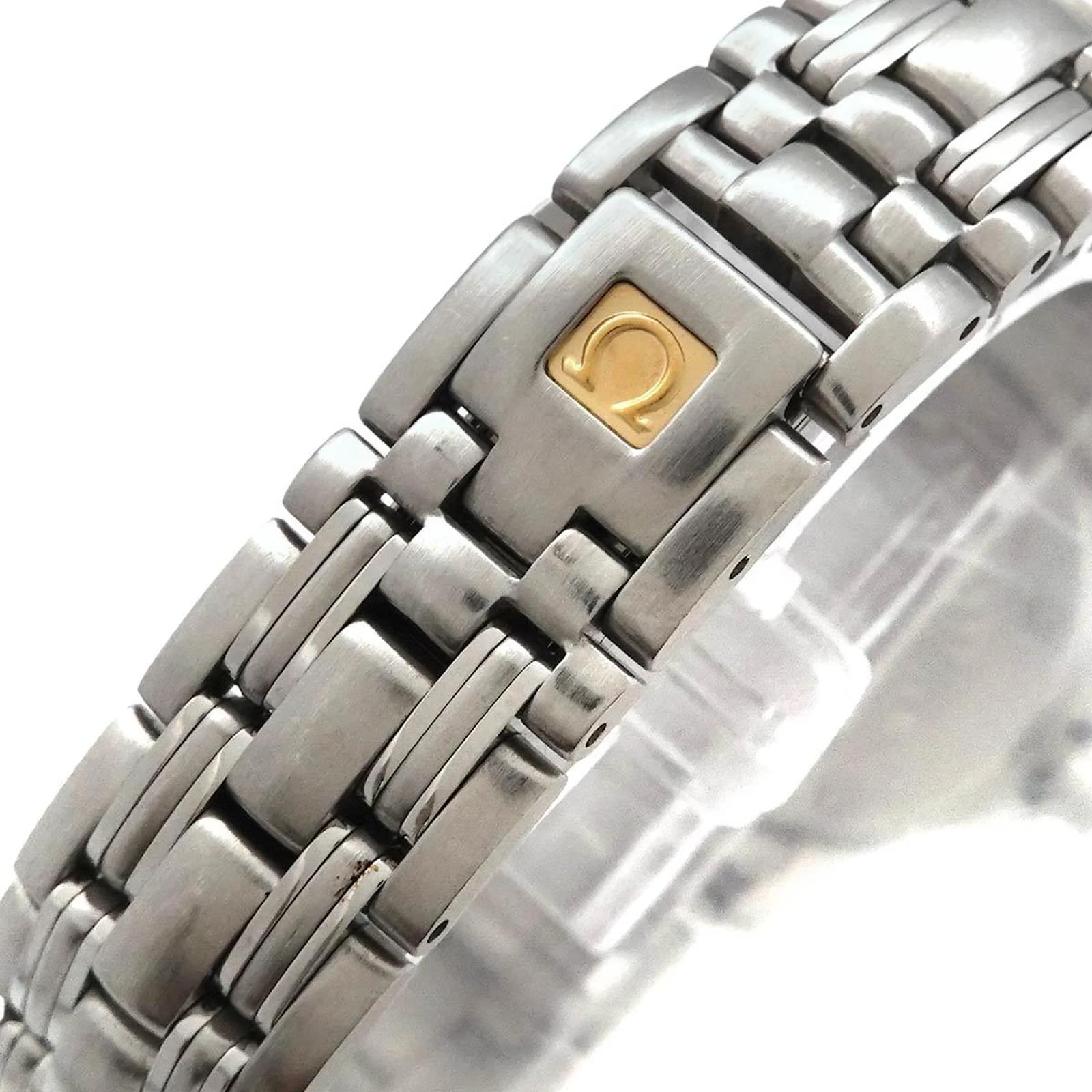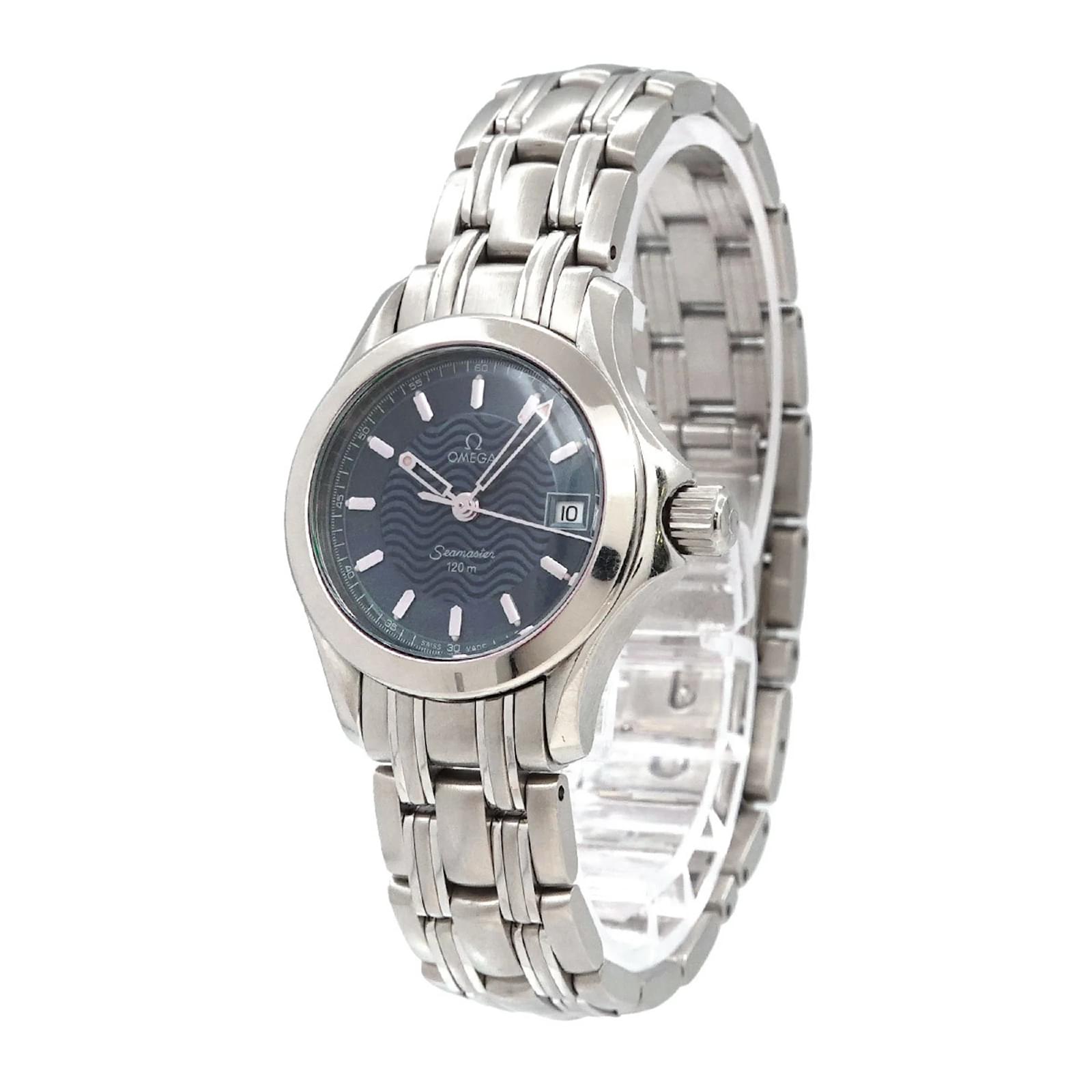 The OMEGA Seamaster 120 2581 81 is a ladies’ wristwatch featuring a blue analog dial and a stainless steel case and band. It operates on a reliable quartz movement and has a case diameter of 32mm, suitable for a wrist size of 15.5cm (6.1 inches). This watch is classified as used but is in very good condition, with only slight scratches on the bezel, case, and band. The battery has been replaced, and any signs of wear on the dial and glass are insignificant. Please refer to the images for a detailed view of the watch’s condition. No accessories are included with the purchase.
