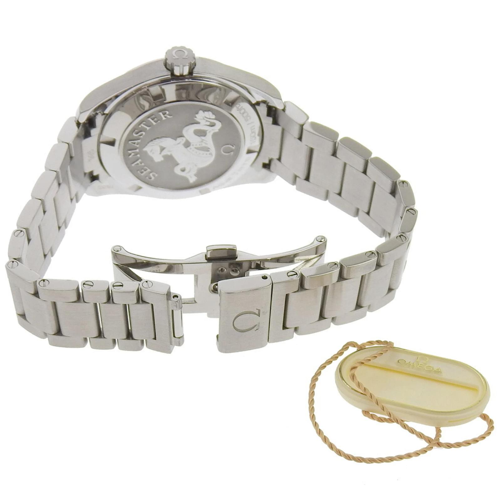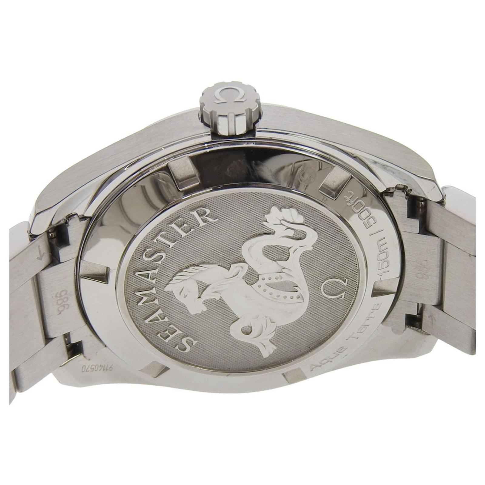 The OMEGA Seamaster Aqua Terra watch, model code 213.10.39.61.06.001, features a sleek black dial and is crafted from stainless steel, both in the case and the band. This analog wristwatch is powered by a reliable quartz movement and includes a date function. \n\nWith a case diameter of 38mm and a thickness of 12mm, it is designed to fit a wrist size of 19.5cm (7.67 inches) and has a band width of 19mm. Weighing 140.4g (4.95oz), this timepiece is both stylish and functional. \n\nThis particular watch is in very good used condition, showing slight scratches on the case and bracelet. It is important to review the provided images for a clear understanding of its condition. The watch does not come with any accessories. \n\nManufactured in Switzerland, this model is part of the esteemed OMEGA brand, known for its quality and craftsmanship.
