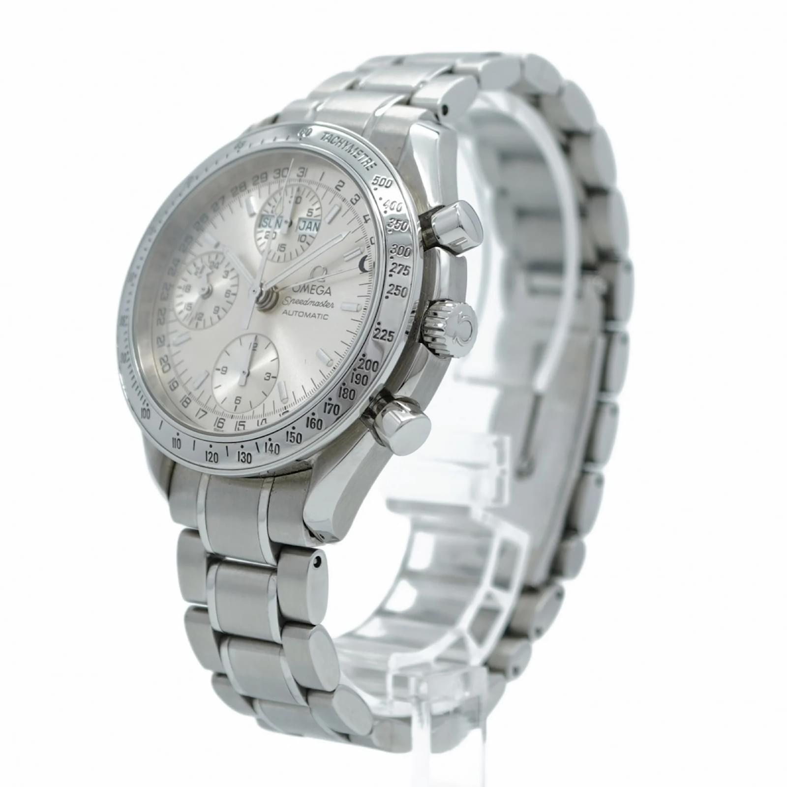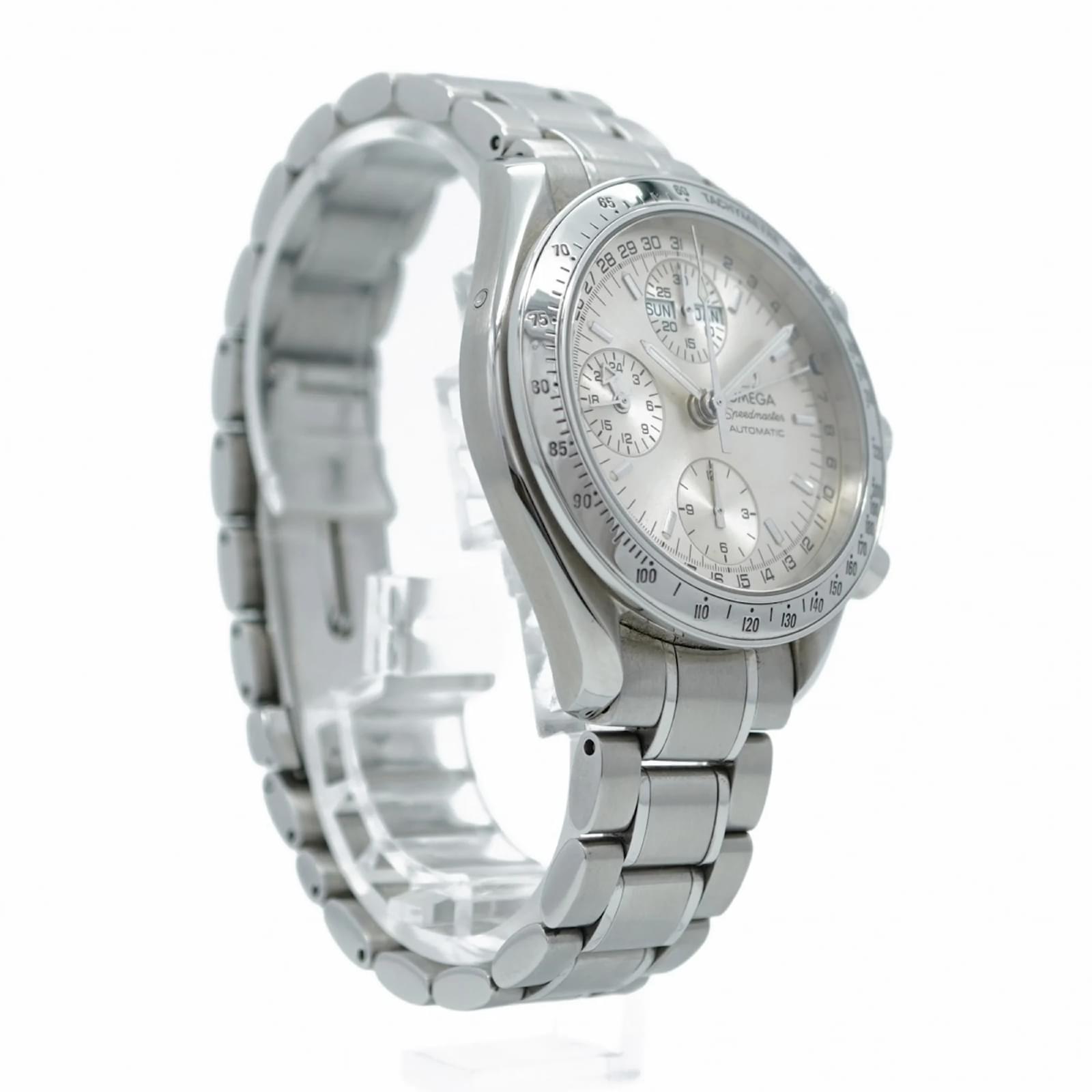 The Omega Speedmaster 3523.30 is a men’s wristwatch featuring a silver dial and a stainless steel band. This self-winding automatic timepiece has a case diameter of 38.7mm and is suitable for a wrist size of 17.5cm (6.88 inches). \n\nThis watch is classified as used and is in good condition, showing slight traces of wear including minor scratches on the bezel, case back, dial, glass, and crown. The seller ranks it as Rank AB, indicating that while there are visible signs of usage, the watch remains in generally good condition. \n\nPlease note that no accessories are included with the watch, and potential buyers are encouraged to review the provided images for a detailed view of its condition.
