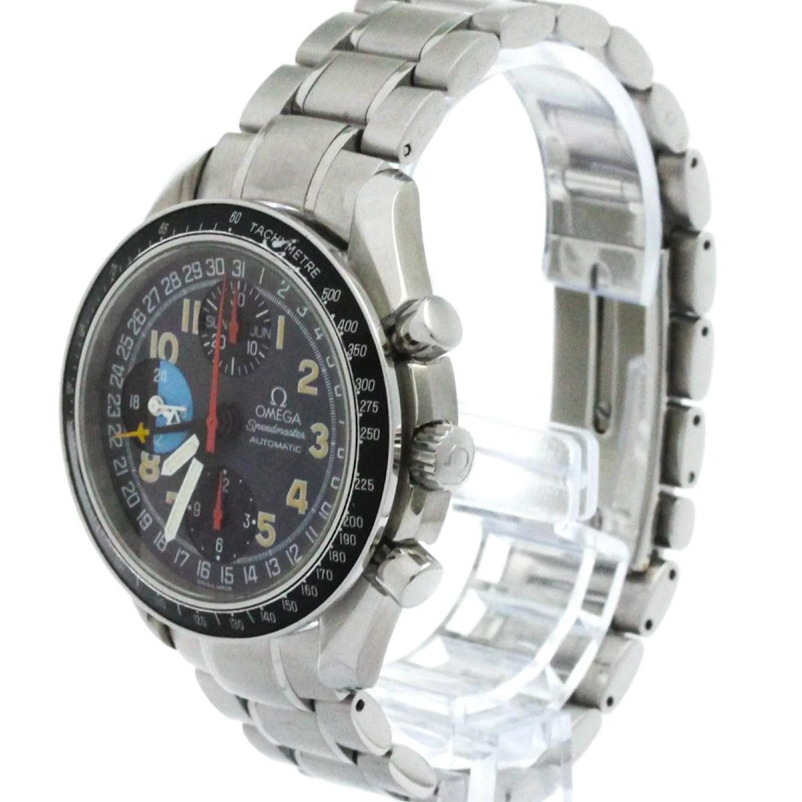 The OMEGA Speedmaster Mark 40AM/PM is a stainless steel wristwatch designed for sport enthusiasts. It features a gray dial and a self-winding automatic movement, ensuring reliable timekeeping. The case has a diameter of 39mm, making it a versatile size for various wrist sizes, with a comfortable fit for a wrist circumference of 16.5cm. \n\nThis model, identified by the code 3520.53, includes chronograph and day-date functions, adding practicality to its stylish design. The watch is in good used condition, with insignificant scratches on the case and bezel, while the glass and dial remain free from any scratches. \n\nWeighing 120g, this timepiece is a blend of functionality and elegance, suitable for everyday wear. Please note that no accessories are included with the watch.