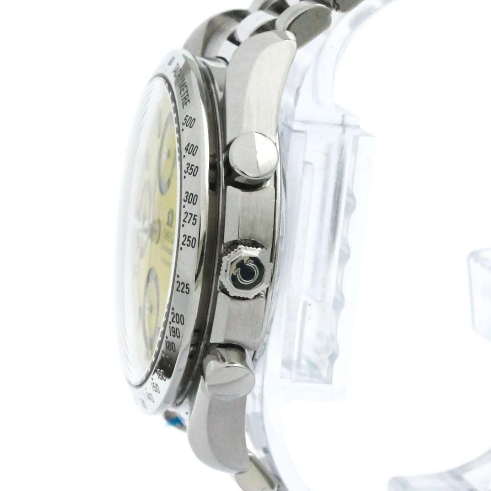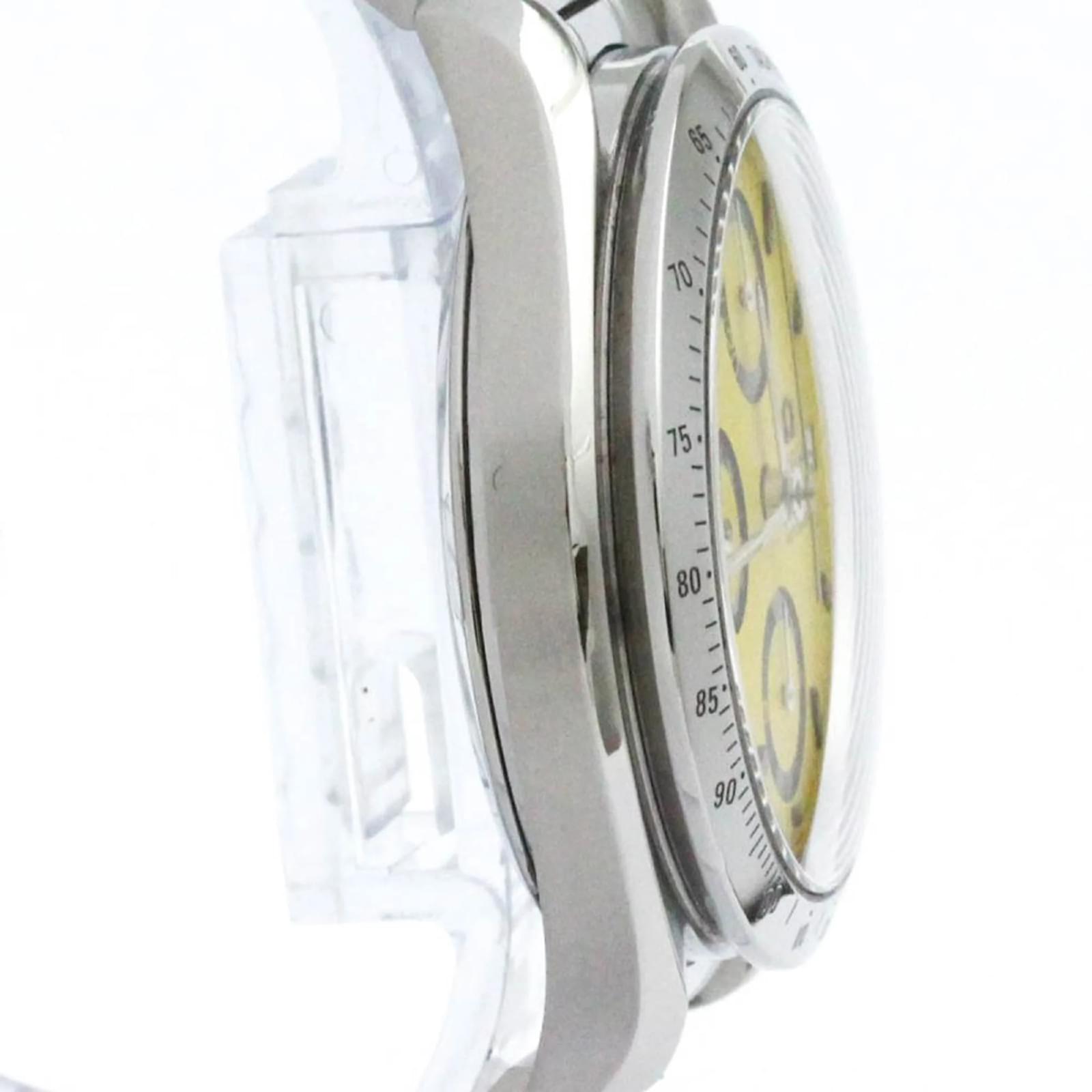 The OMEGA Speedmaster Michael Schumacher watch features a striking yellow dial and is crafted from polished stainless steel, both in the case and the band. This sport-style wristwatch has a case diameter of 39mm and is powered by a self-winding automatic movement. It includes functions such as a chronograph and date display. \n\nThis particular model, identified by the code 3511.12, is in very good used condition, with insignificant signs of wear, including minor scratches on the case and bracelet. The watch has been polished and shows no scratches on the glass or dial. It is suitable for a wrist size of 16.5cm (6.49 inches) and weighs 110g (3.88oz). \n\nThe watch does not come with any accessories and has a serial number of 55**4495.