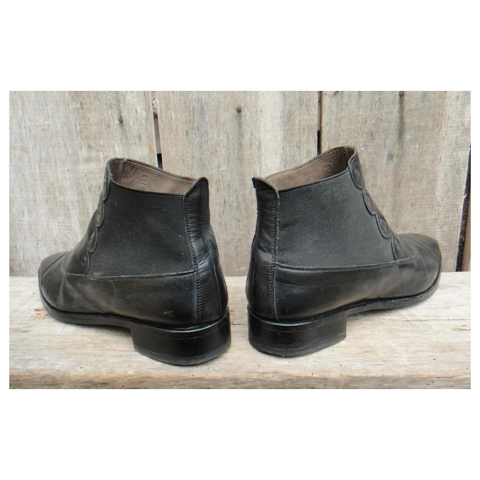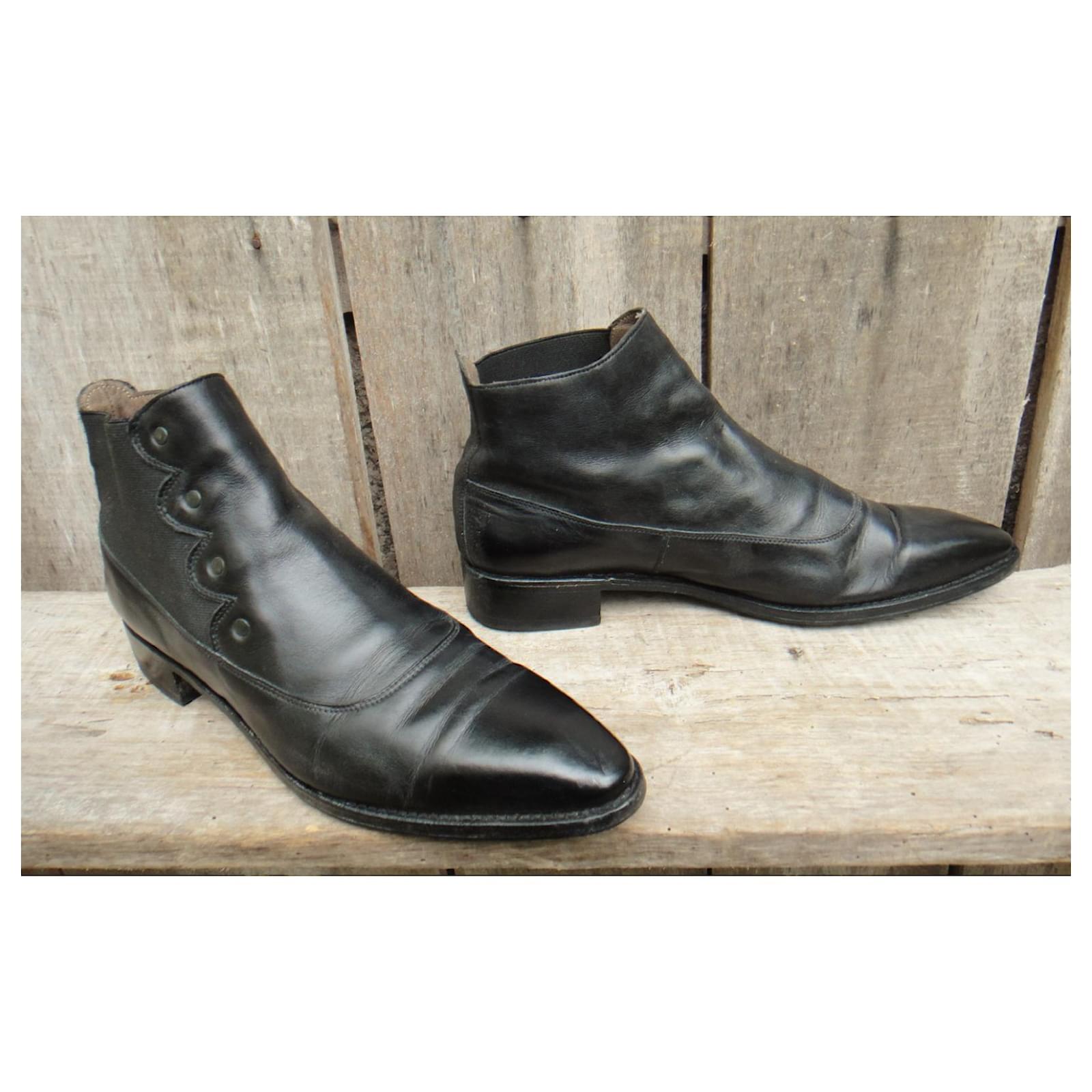 – Paraboot boots\r\n- shoe size 6,5 UK, correspond to 39,5 fr, inner length 26,7 cm\r\n- good condition, slight traces of use\r\n- leather upper with elastic insert, leather lining, first leather, Goodyear stitched on leather sole with added elastomer pad\r\n- heels of 3 cm\r\n- made in France\r\n- a marvel of retro ankle boots by Paraboot, benchmark signature in traditional French footwear\r\n2208033