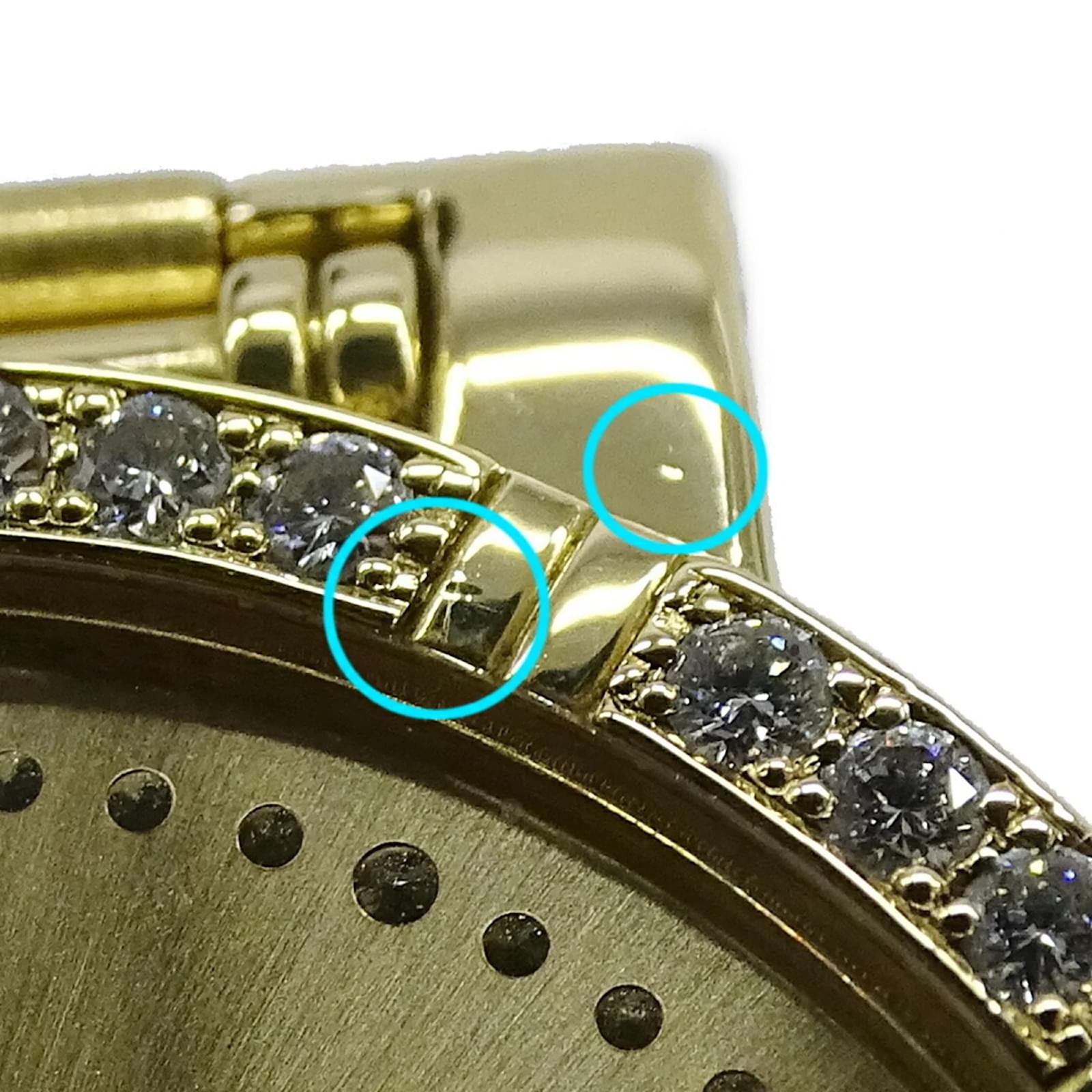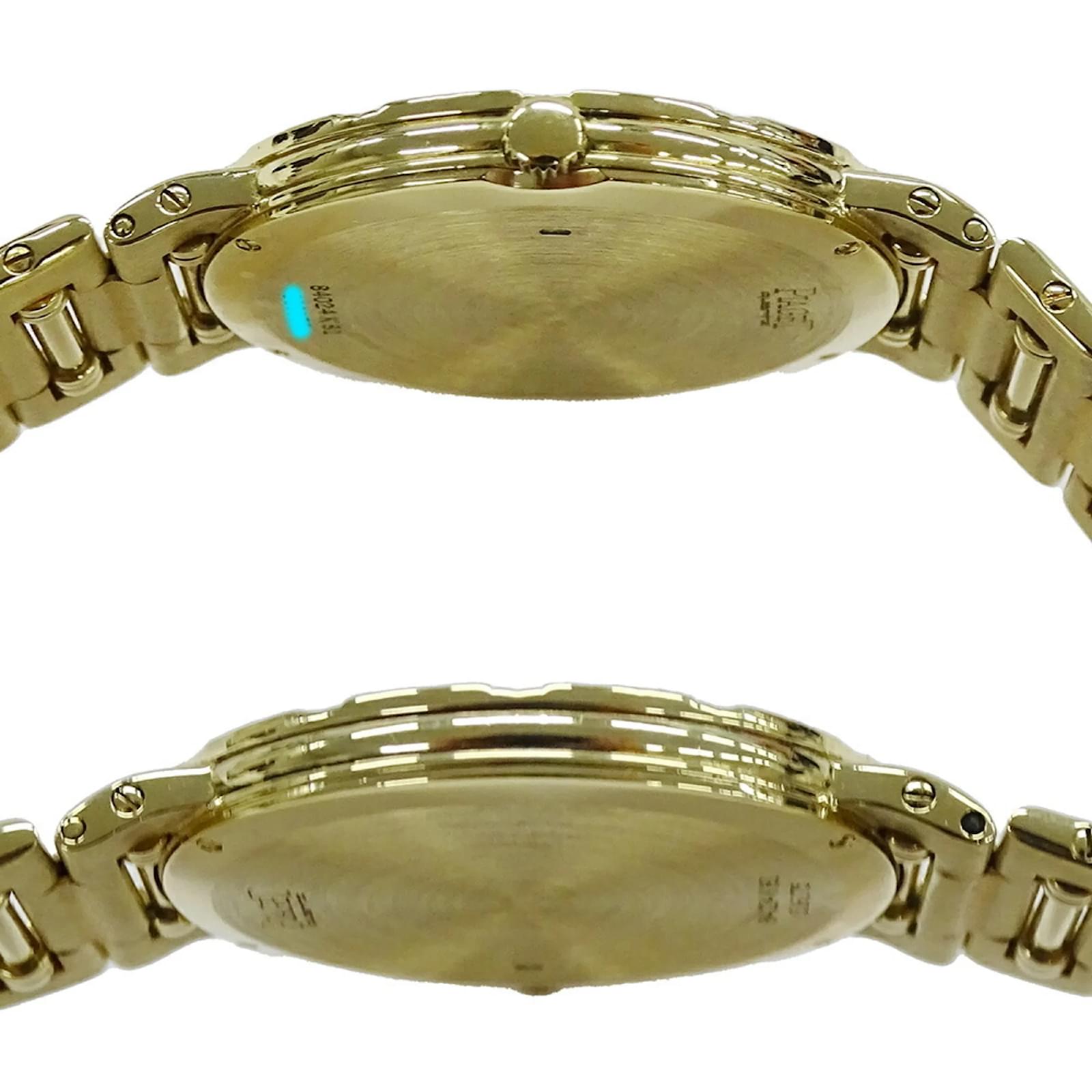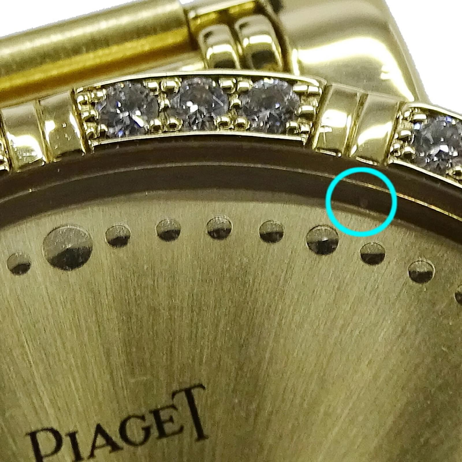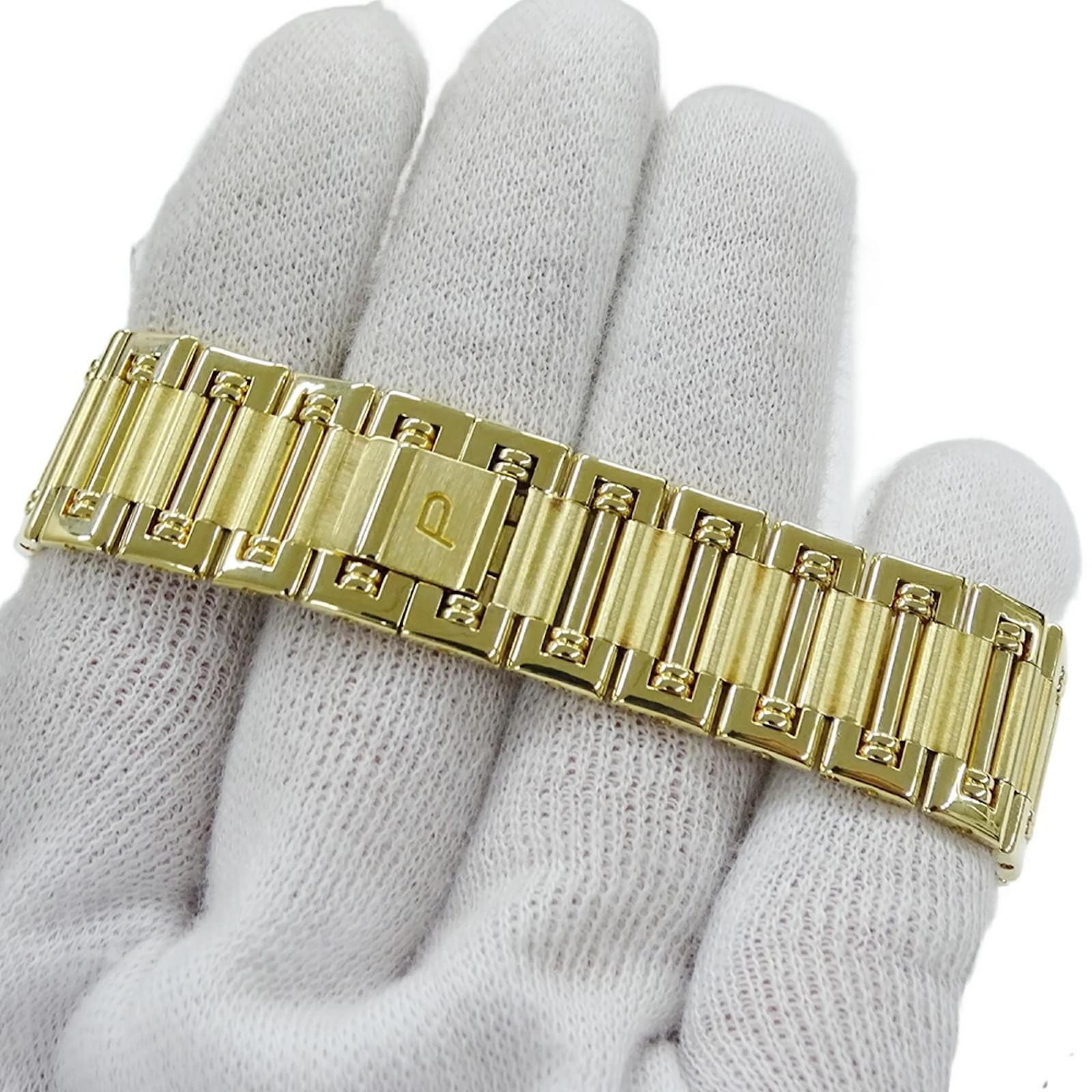 The Piaget Dancer Diamond Quartz wristwatch is a sophisticated timepiece crafted from 18K yellow gold, featuring a polished round case with a diameter of 31mm. The watch showcases a gold dial adorned with diamonds, providing an elegant touch to its analog display. It is designed for a wrist size of 17cm (6.69 inches) and weighs 82g (2.89oz). \n\nThis used watch is in good condition, with insignificant scratches on the bezel, case back, and bracelet, while the dial and glass remain free from any scratches. The watch has been polished and shows traces of usage, but overall, it is well-maintained. \n\nManufactured in Switzerland, this model, identified by the MPN 84024K81, is part of Piaget’s Dancer line. Please refer to the images for a detailed view of the item’s condition and included accessories.