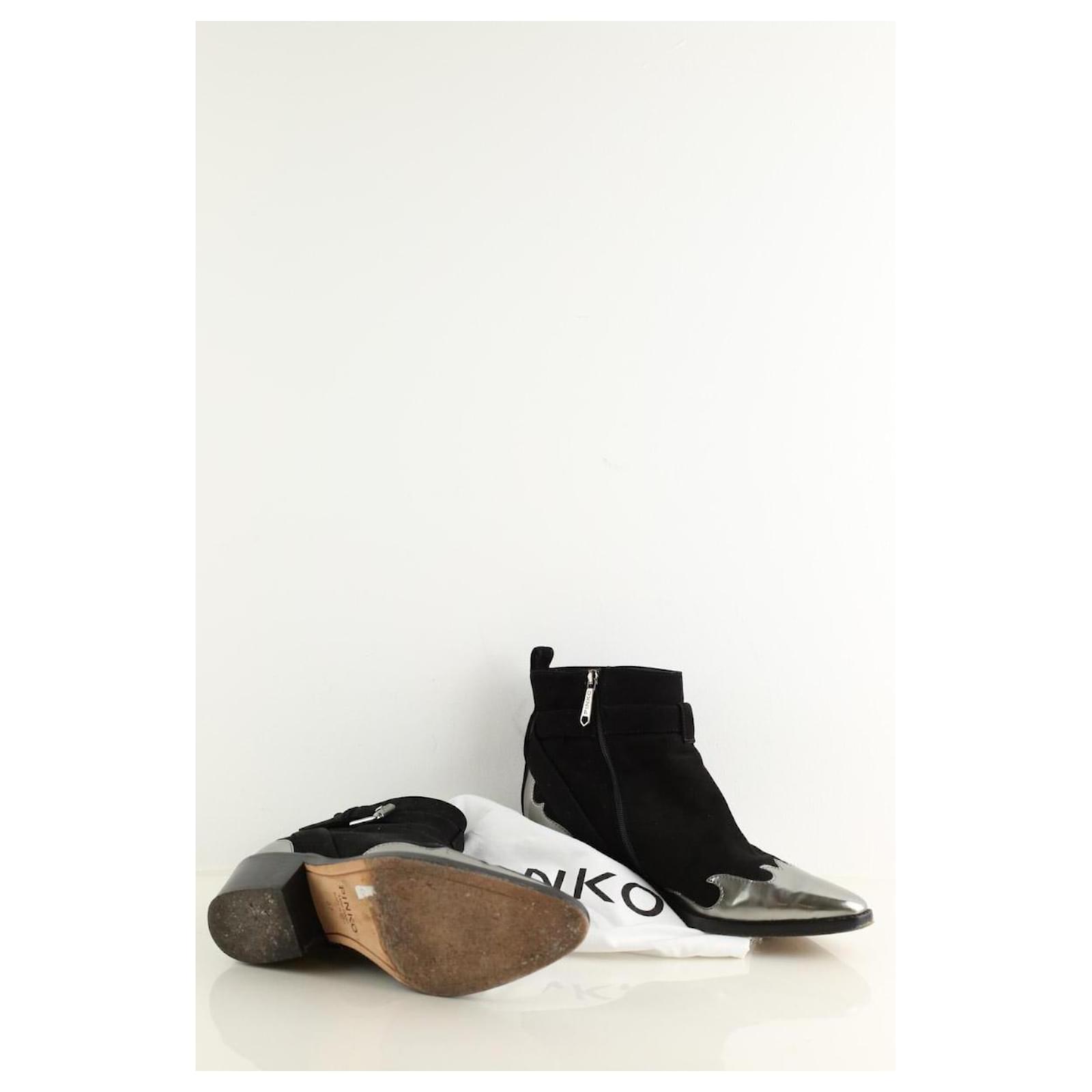 Second-hand black Pinko boots. Main material leather. Size 37. Heel height: 5cm. With pouch. Women’s collection. Very good condition. Reference: 038360045.