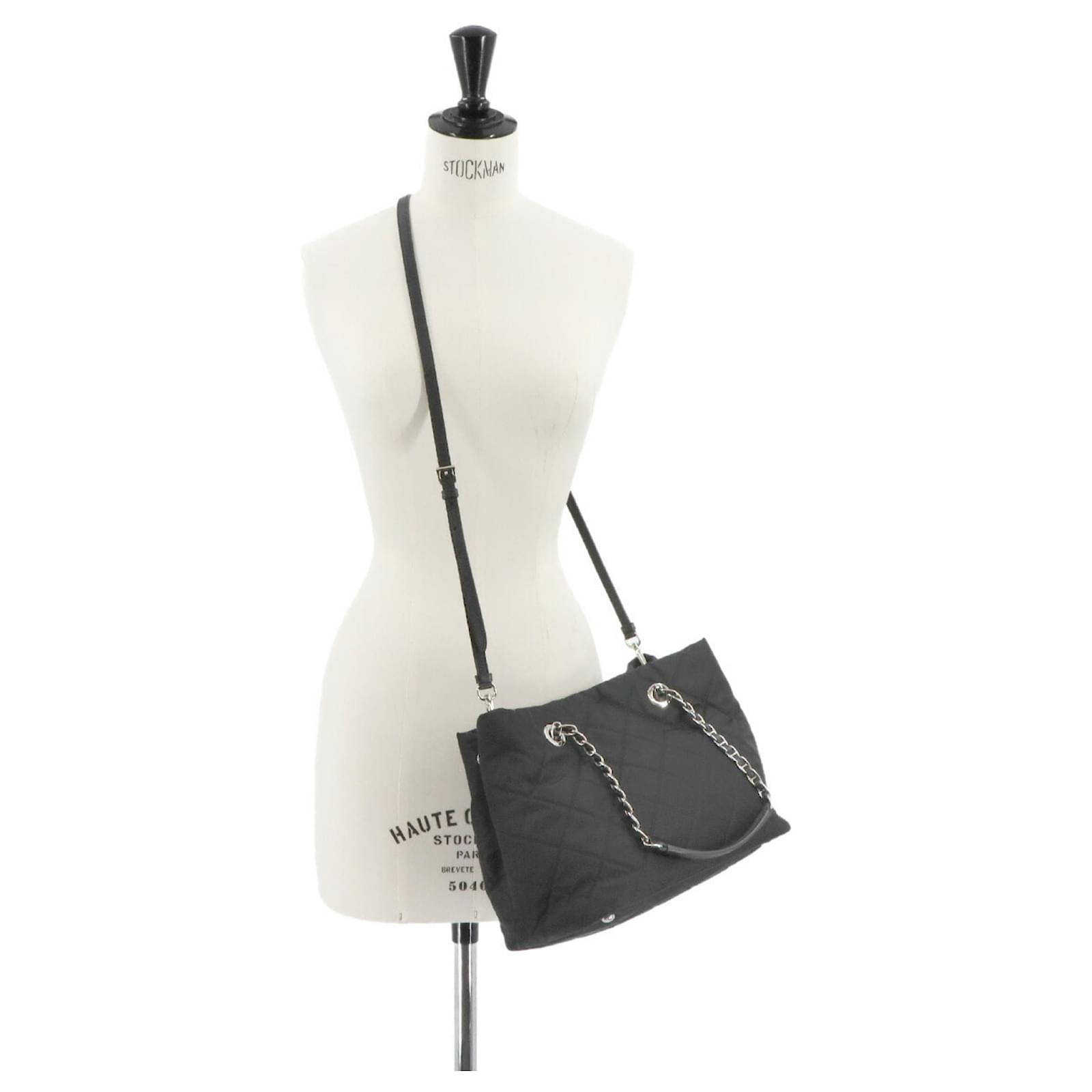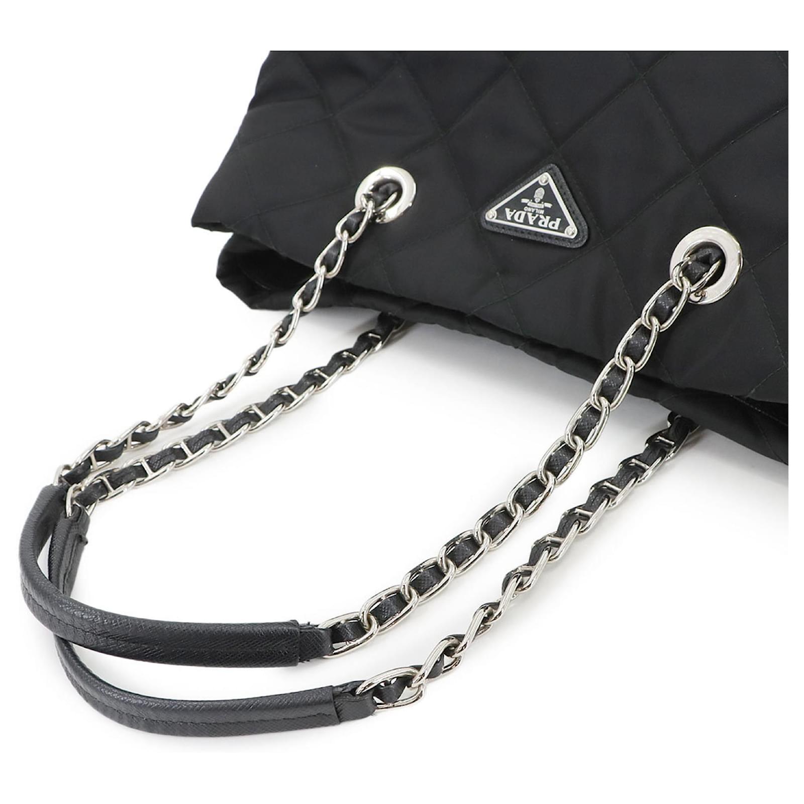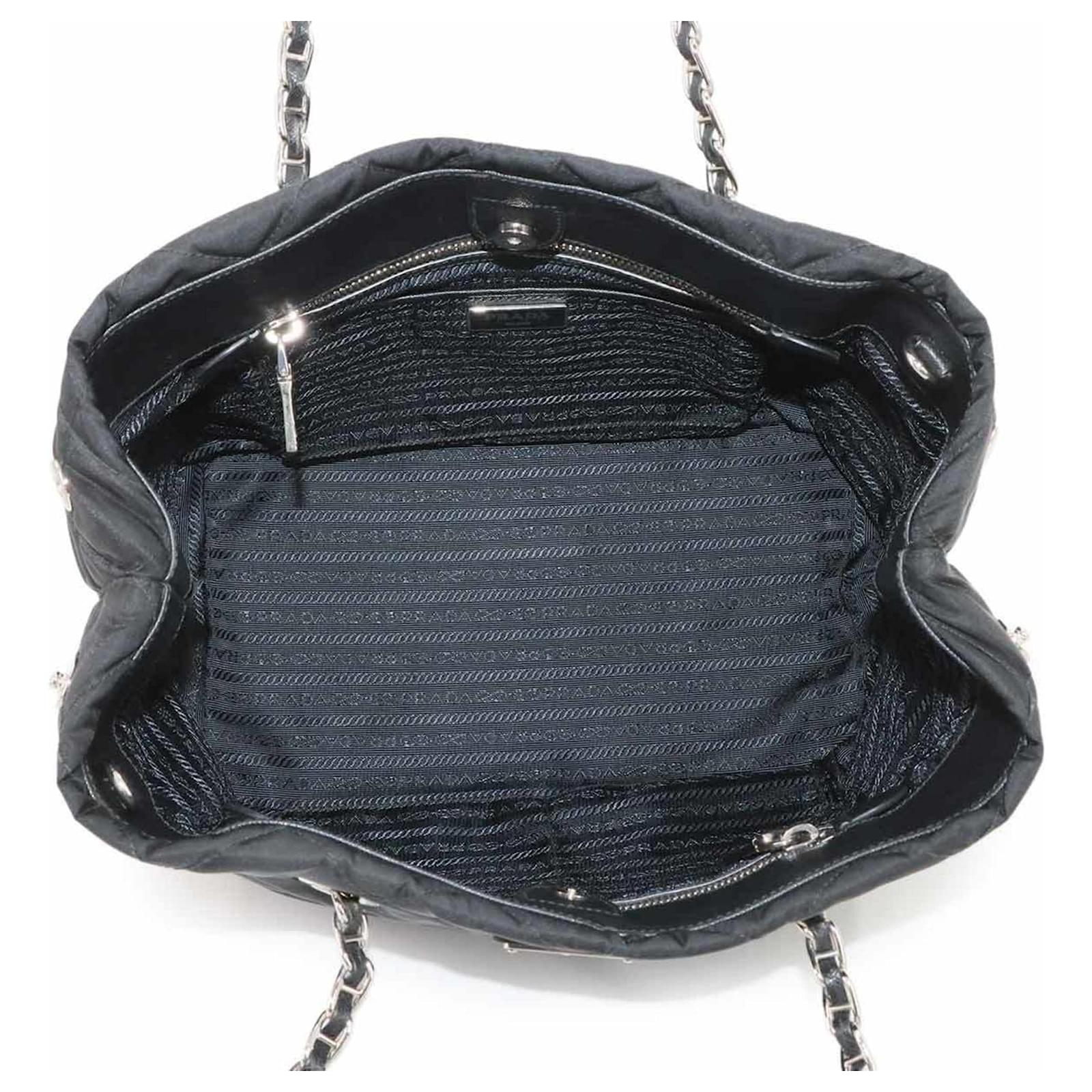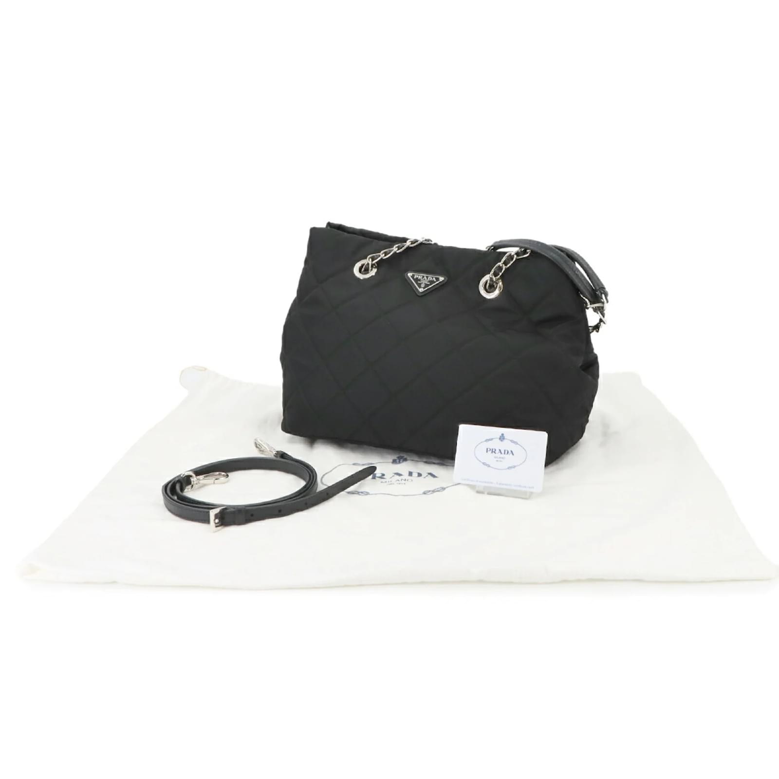 This Prada 2-way tote shoulder bag is crafted from nylon and Saffiano leather in a classic Nero color. Measuring 22cm x 28.5cm x 17cm, it offers a practical size for daily use. The bag features silver hardware and comes with a dust bag, guarantee card, and shoulder strap. \n\nThe item is in used condition, rated as Rank S, indicating it is in mint condition with insignificant traces of use, including minor handle peelings. Potential buyers are encouraged to review the provided images for a detailed view of the bag’s condition and included accessories.
