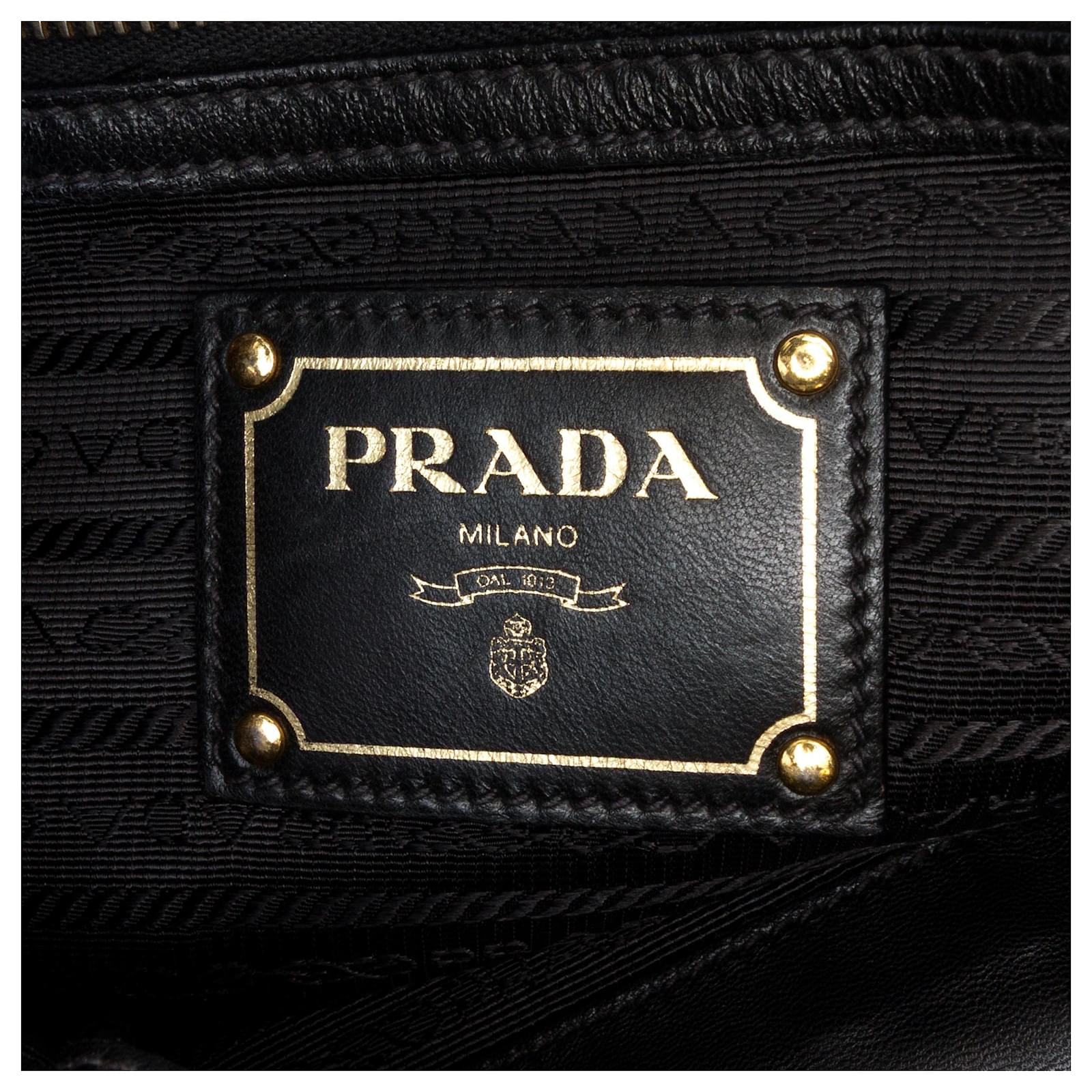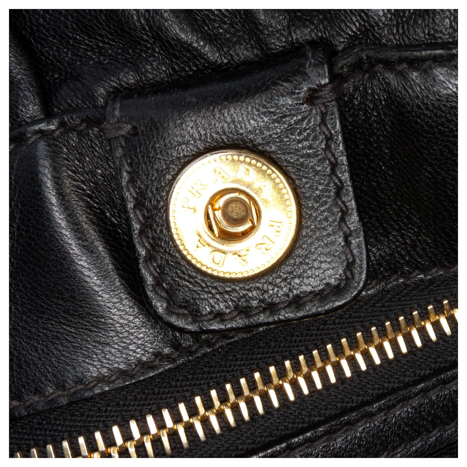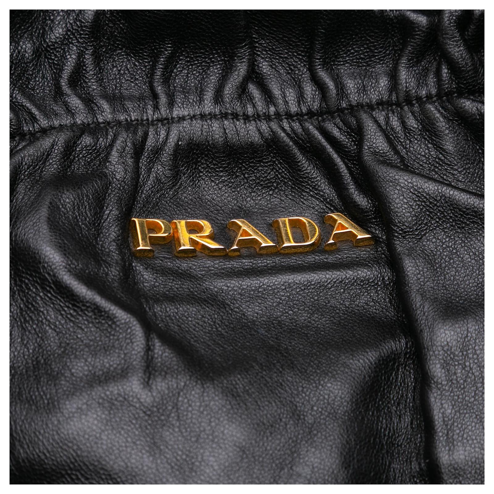 This satchel features nappa leather body with large leather bows on the sides, double flat leather handles, a detachable flat leather strap, an open top with magnetic snap button closure, and interior zip and slip pockets. It carries a B+ condition rating.\r\n\r\nExterior Back Creased. Exterior Bottom Worn. Lock Scratched. Exterior Corners Worn. Exterior Front Creased. Exterior Handle Creased, Split. Interior Lining Worn. Practical Attachment Scratched. Exterior Side stained with Other. Exterior Top Worn. Zipper Scratched. \r\n\r\nDimensions: \r\nLength: 35 cm\r\nWidth: 36 cm\r\nDepth: 15 cm\r\nHand Drop: 24\r\nShoulder Drop: 68\r\n\r\nInclusions: No longer comes with original accessories.\r\n\r\nColor: Black\r\n\r\nMaterial: Leather x Nappa Leather\r\n\r\nCountry of Origin: Italy\r\n\r\nBoutique Reference: PJC316649F956 \r\n