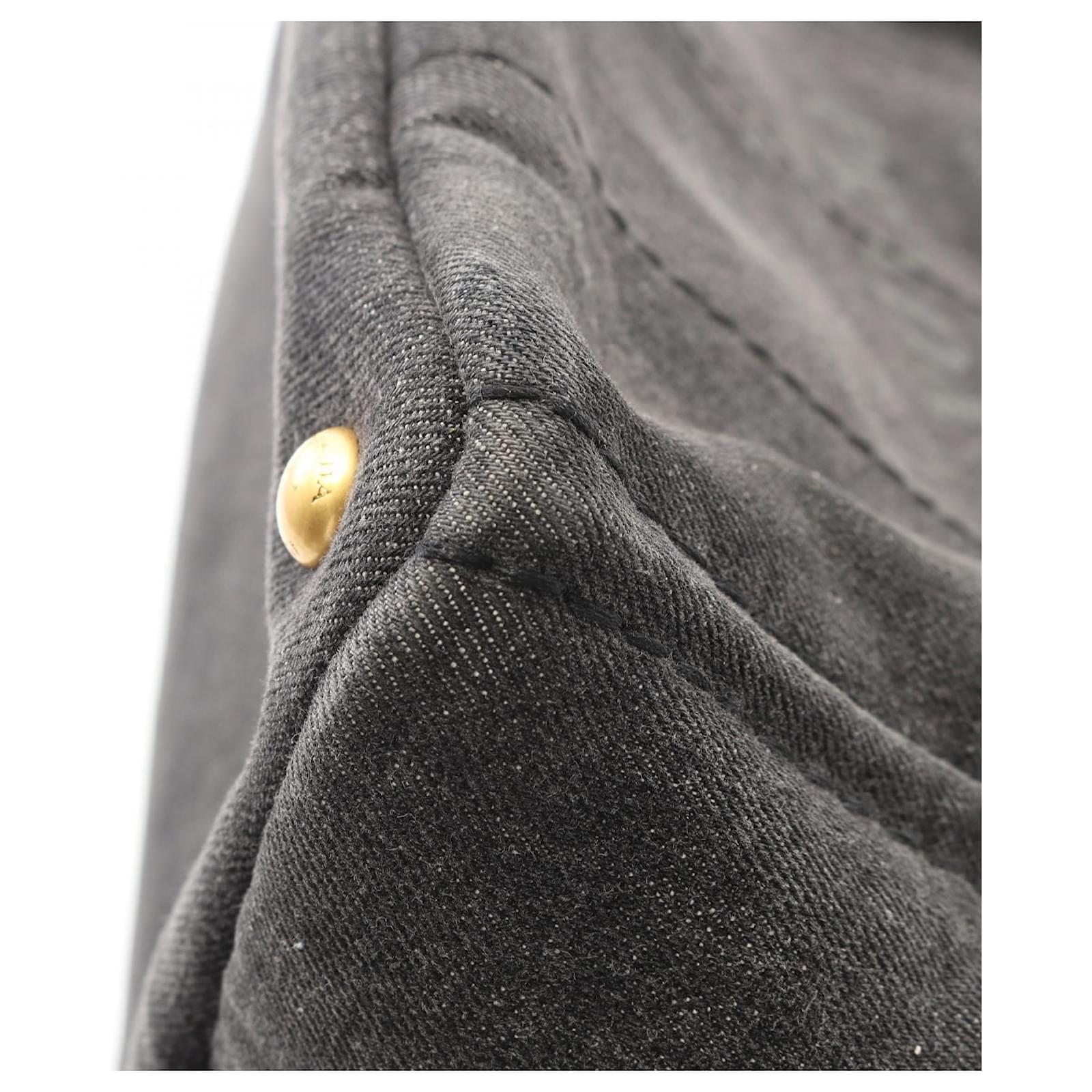 Brand Name: Prada; Condition: Good; Category: Bag; SubCategory: Handbag; Product Name: Prada Denim Canapa Handbag Gray; Style: Ladies; Height (cm): 23; Width (cm): 22; Length (cm): 35; Color: Grey; Material: Denim; Measurments: width: 220 mm length: 350 mm height: 230 mm \n Product Id: 524964 \n