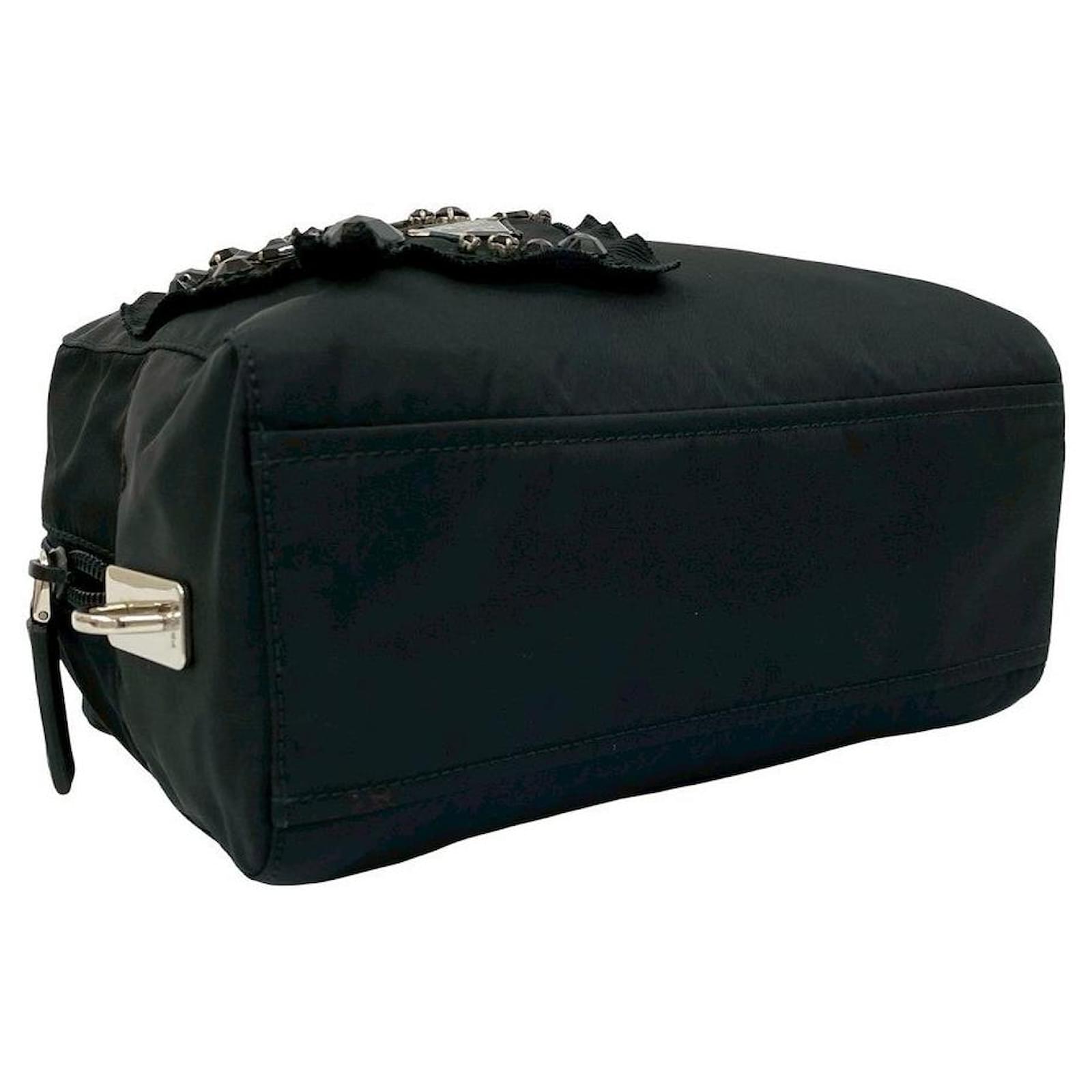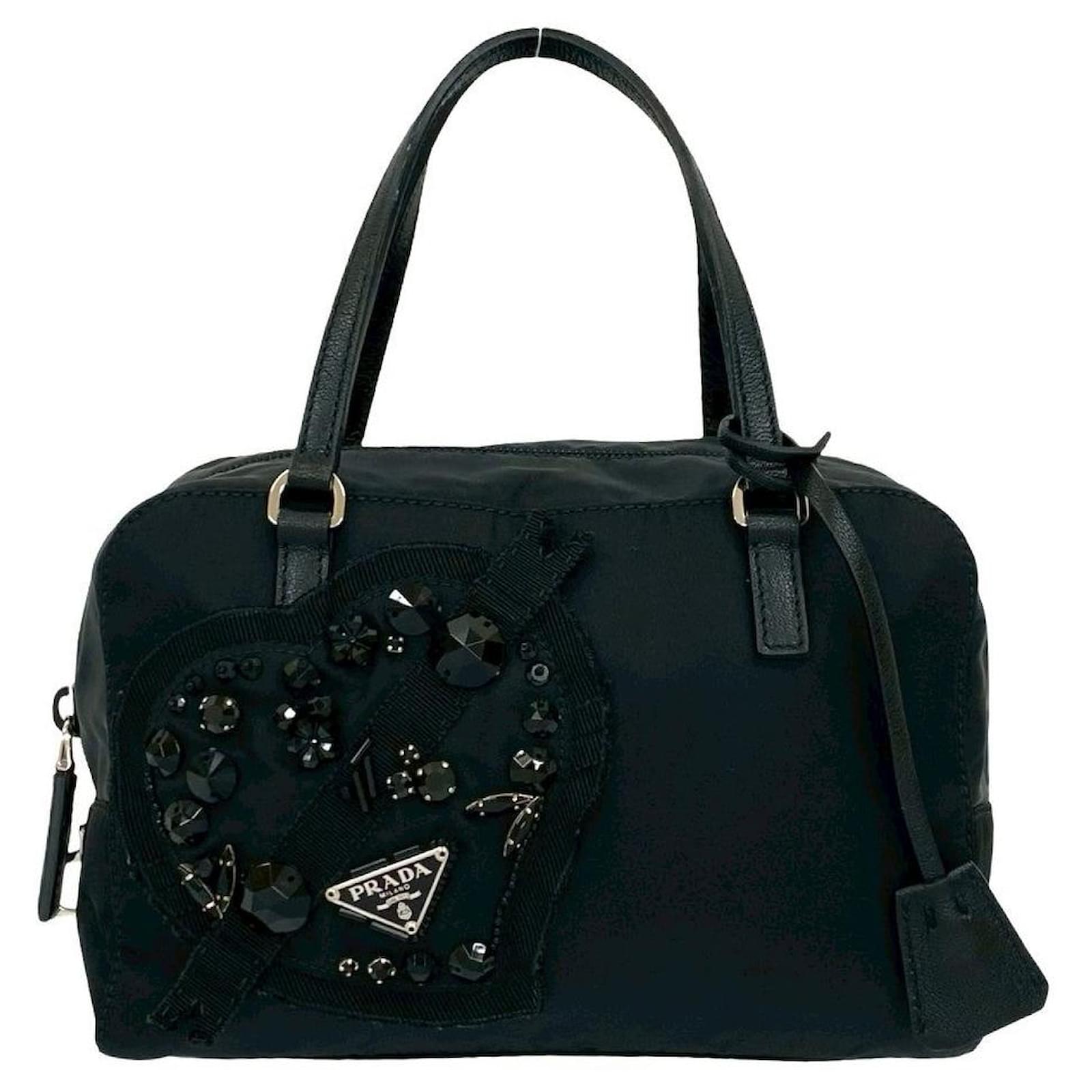 – General information -\nBrand : PradaItem name : Prada Evening Heart Nylon Leather HandbagModel number : – Design -Type : HandbagMaterial : LeatherColor : BlackGender : Female- Size -Size : Length : 21Depth : 8Height : 15Item Material : Nylon, LeatherItem Color : BlackClosure Type : ZipperInterior : Main compartment x 1- Inventory -Serial Number : SKU : 120210021411000A0025848858- Included Items -Accessories : null*Before purchasing, please refer to the images of the accessories included with the item.- Condition -Condition : Great ConditionRank : Used A Good used condition with slight scratches and stains.Condition Notice : Before purchasing, please refer to the images for the exact condition of the item. Measurments: width: 80 mm length: 210 mm height: 150 mm \n Product Id: 525985 \n