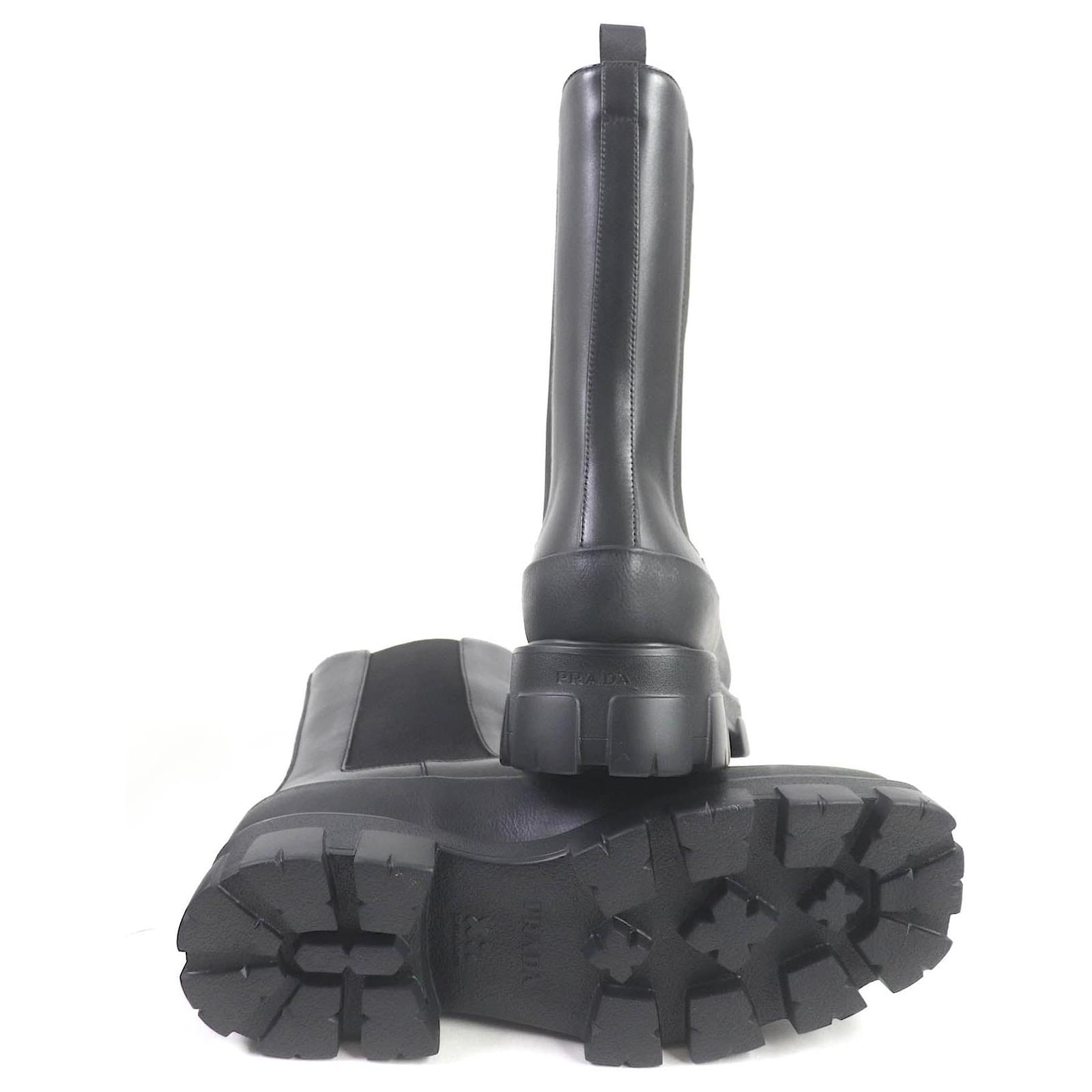 – General information -\nBrand : Prada\nItem name : Prada Monolith Leather Chelsea Shoes 2UG007\nModel number : 2UG007\n- Design -\nType : Shoes\nMaterial : Leather\nColor : Black\nGender : Male\n- Size -\nSize :\nShaft height : 31.5\nInstep width : 12.5\nInsole total length : 34\nHeel : 5\nShoe size(JP) : 10\nColor : Black\nMaterial : Leather\n- Inventory -\nSerial Number : null\nSKU : 120250001597200A0025511875\n- Included Items -\nAccessories : null\n*Before purchasing, please refer to the images of the accessories included with the item.\n- Condition -\nCondition : Pristine Condition\nRank : Used A Unused. Storefront display.\nCondition Notice : Before purchasing, please refer to the images for the exact condition of the item.