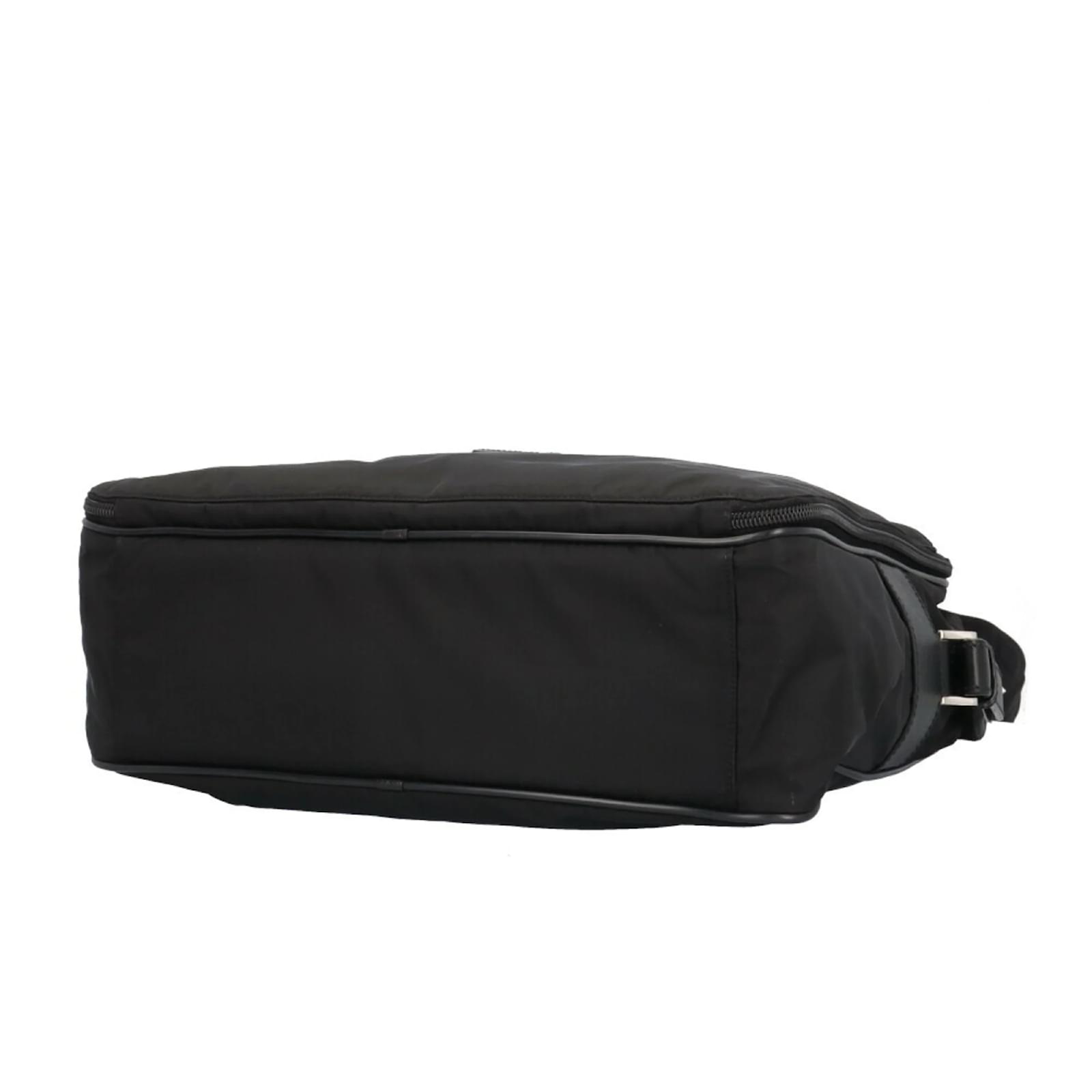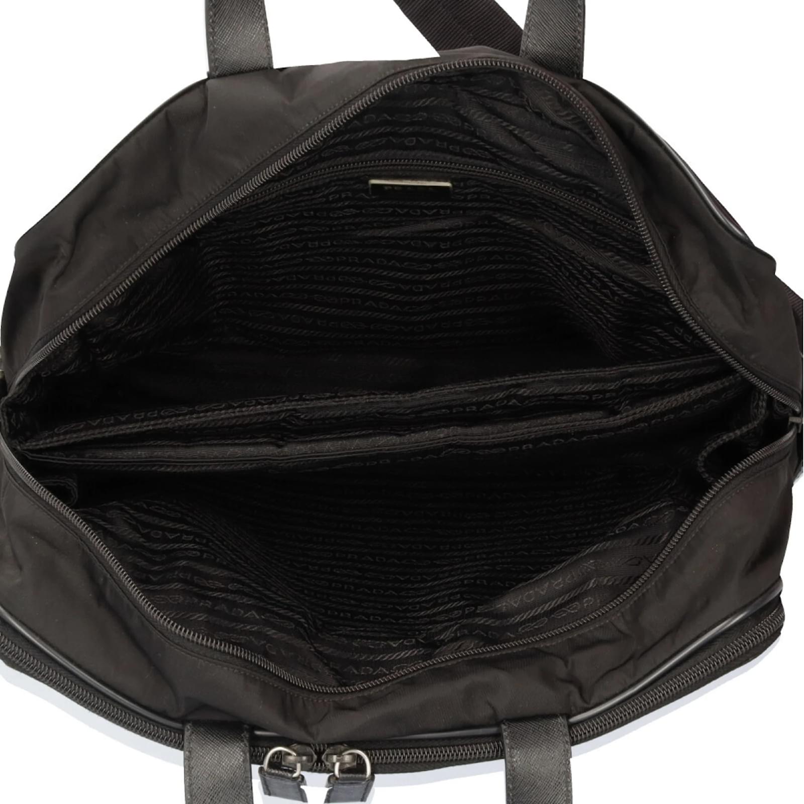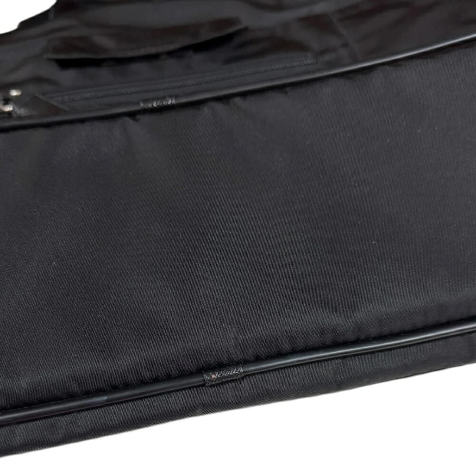 This Prada briefcase is crafted from a combination of nylon and leather, featuring a sleek black design. It includes a zipper closure and multiple pockets for organization, with two outer pockets (one zipper and one open) and one inner zipper pocket. The bag measures 30cm in height, 35cm in width, and 11cm in depth, with a handle length of 38cm and a strap length of 137cm for versatile carrying options. \n\nThe item is classified as used and is in acceptable condition, showing noticeable traces of use, including scuffs and creases. There is slight overall dirt, and the bag has an old, insignificant smell. It comes with a name tag and is recommended to be reviewed through provided images for a better understanding of its condition. \n\nThis briefcase is suitable for those seeking a practical yet stylish accessory for daily use.