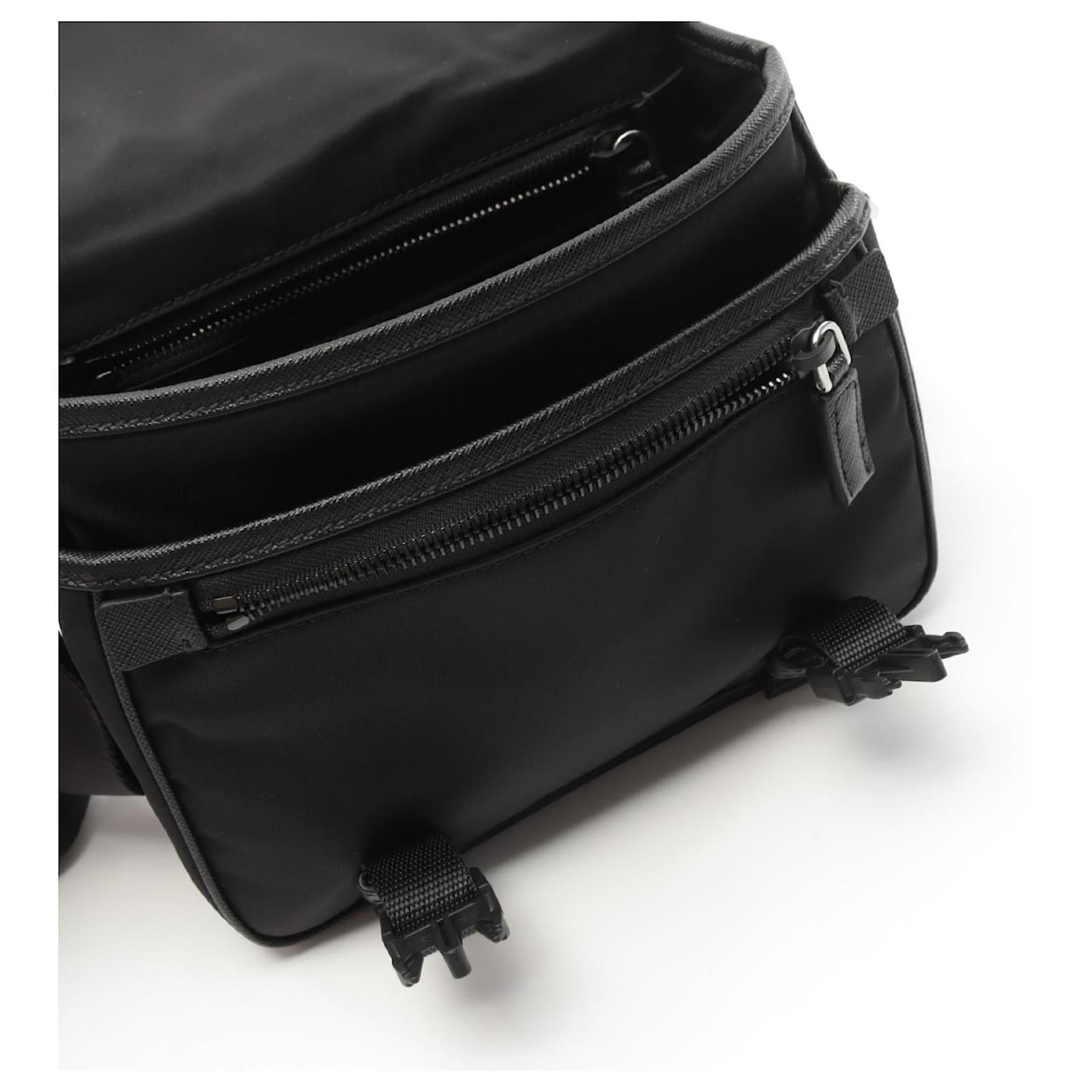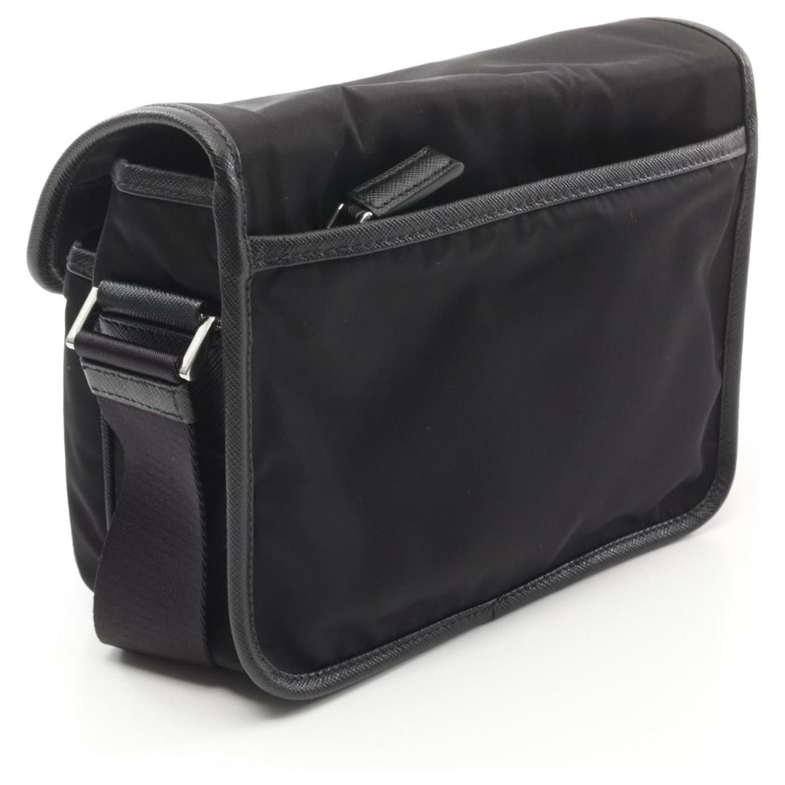 Brand Name: Prada; Condition: Pristine; Category: Bag; SubCategory: Crossbody Bag; Product Name: Prada Nylon Saffiano Leather Shoulder Bag; Model Number: 2VD0342DMHF0002; Style: Gentleman; Accessories: Dust Bag,Pouch; Height (cm): 17; Length (cm): 20; Color: Black; Material: Nylon × Saffiano Leather; Origin: Italy; Measurments: length: 200 mm height: 170 mm \n Product Id: 522497 \n