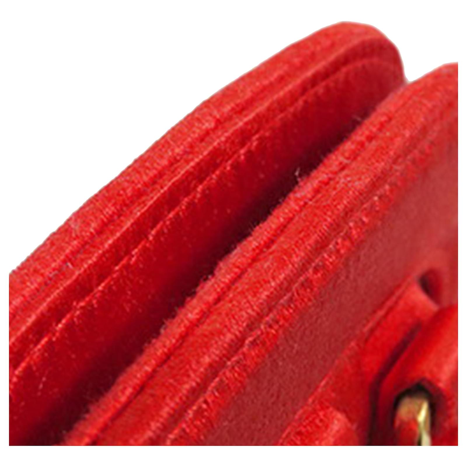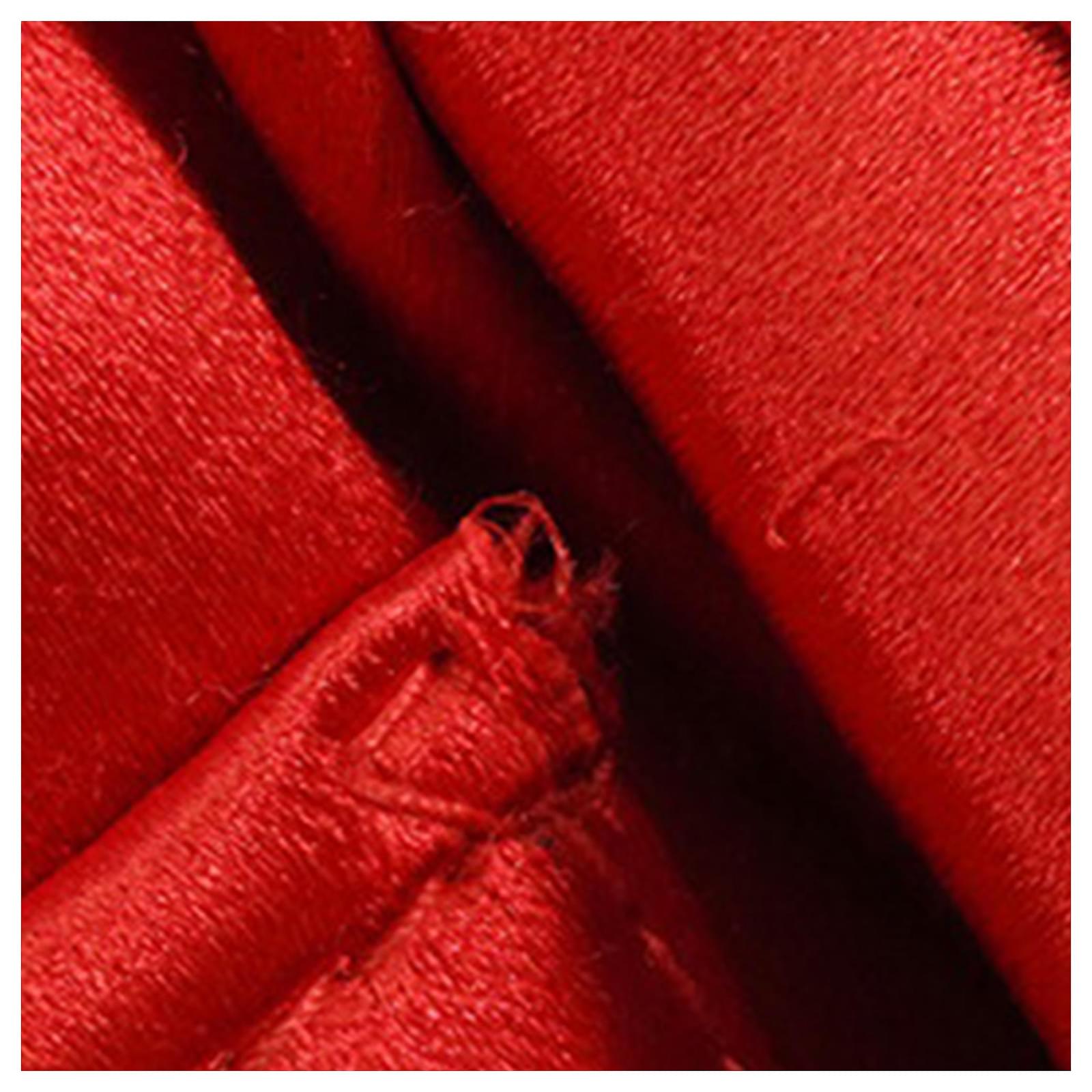 This handbag features a satin body, rolled handles, a magnetic snap closure, and an interior slip pocket. It carries a B+ condition rating.\r\n\r\nLock Scratched. Exterior Handle Scratched, Worn. Exterior Handle stained with Other. Interior Lining Worn. Interior Lining stained with Other, Pen Mark. Practical Attachment Rusty/Tarnished, Scratched. Exterior Side Loose Stitching. Exterior Side stained with Other. Item has an odor of Musty. \r\n\r\nDimensions: \r\nLength: 19 cm\r\nWidth: 21 cm\r\nDepth: 8 cm\r\nHand Drop: 10\r\n\r\nInclusions: No longer comes with original accessories.\r\n\r\nColor: Red\r\n\r\nMaterial: Fabric x Satin\r\n\r\nCountry of Origin: Italy\r\n\r\nBoutique Reference: PJC325338F956 \r\n