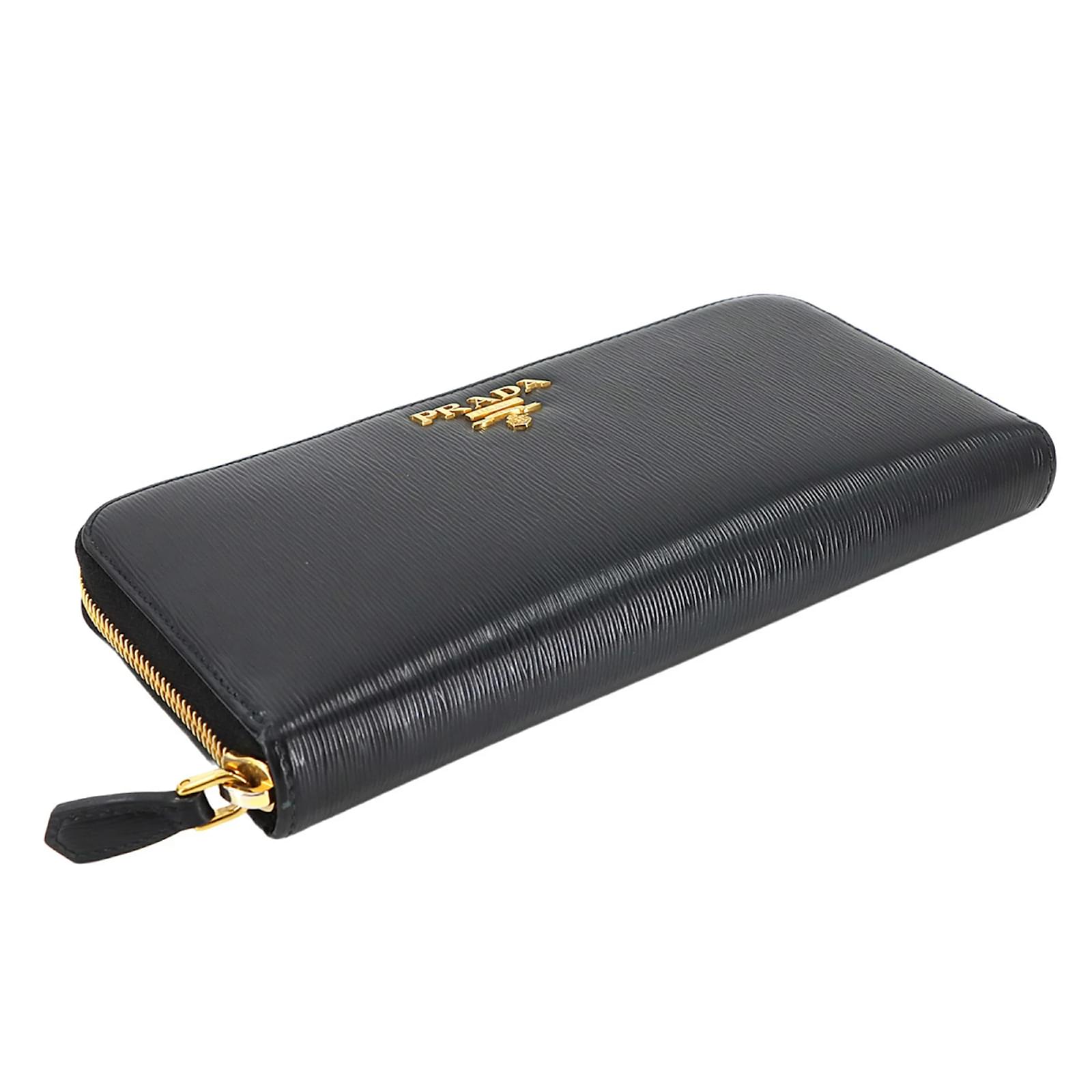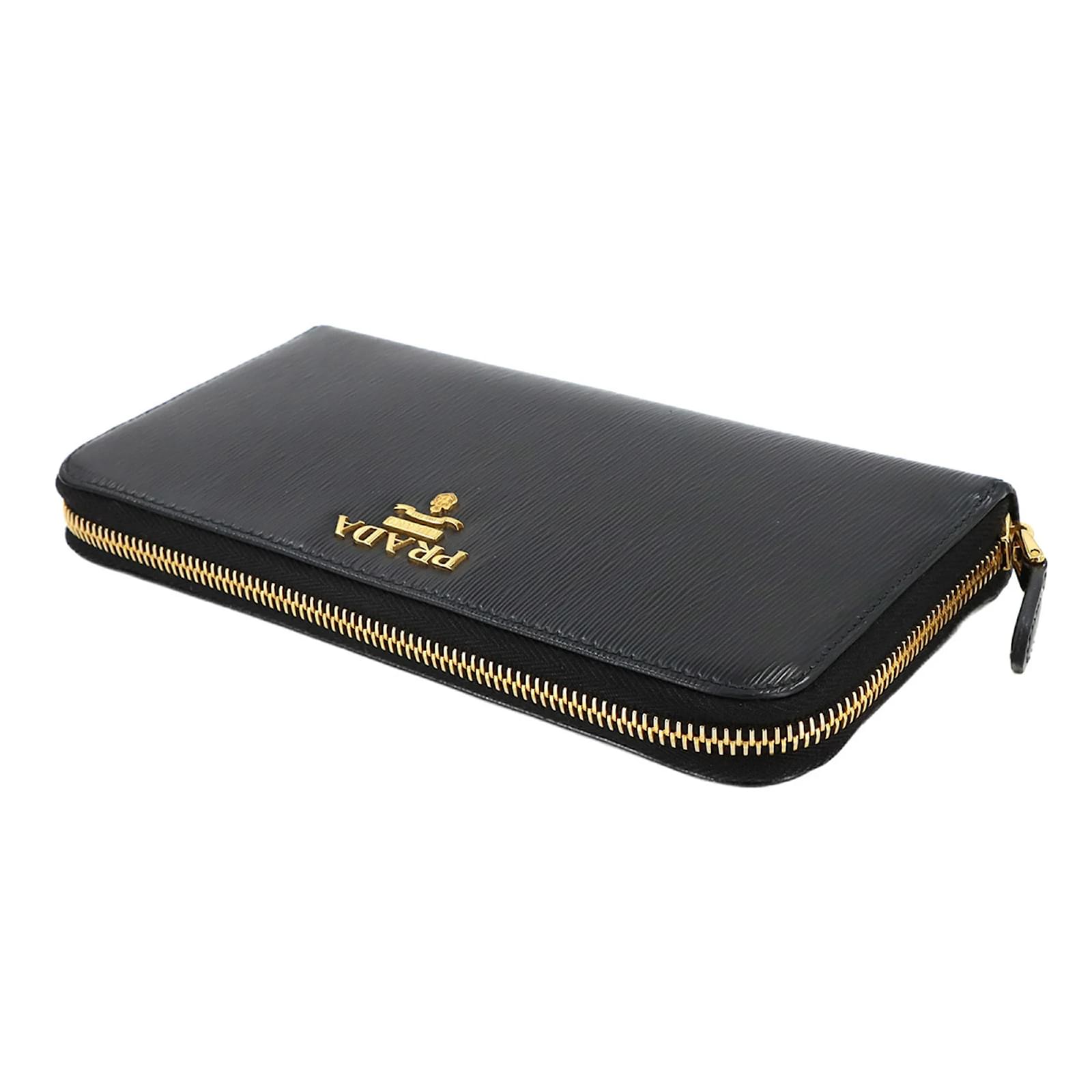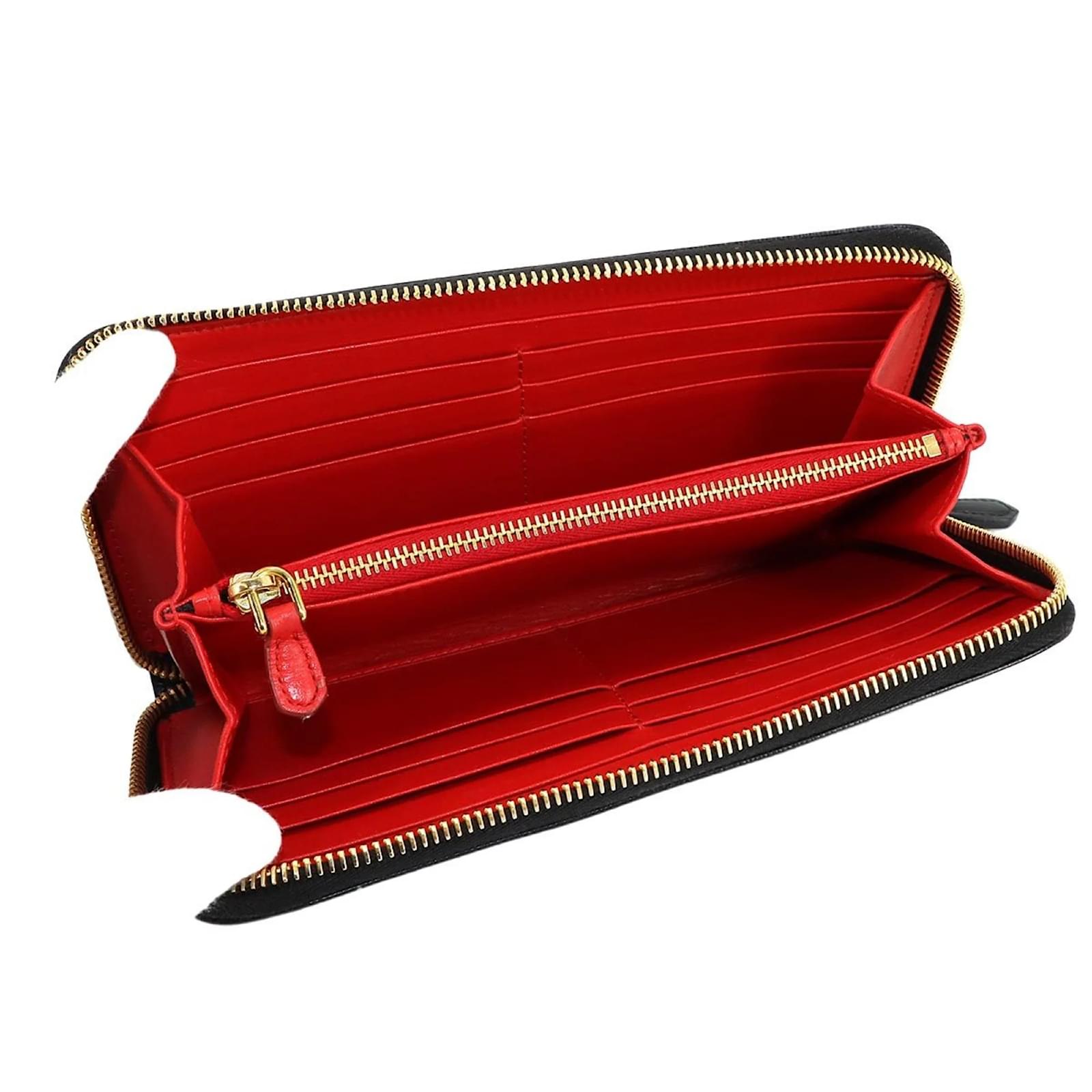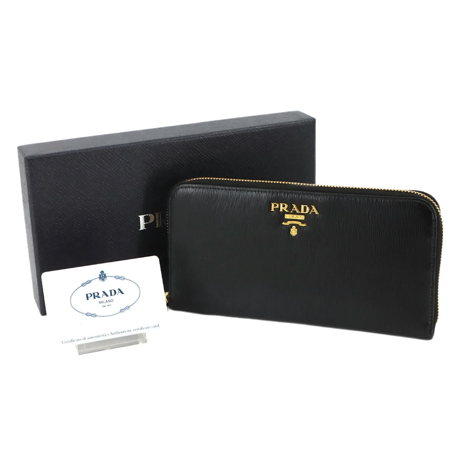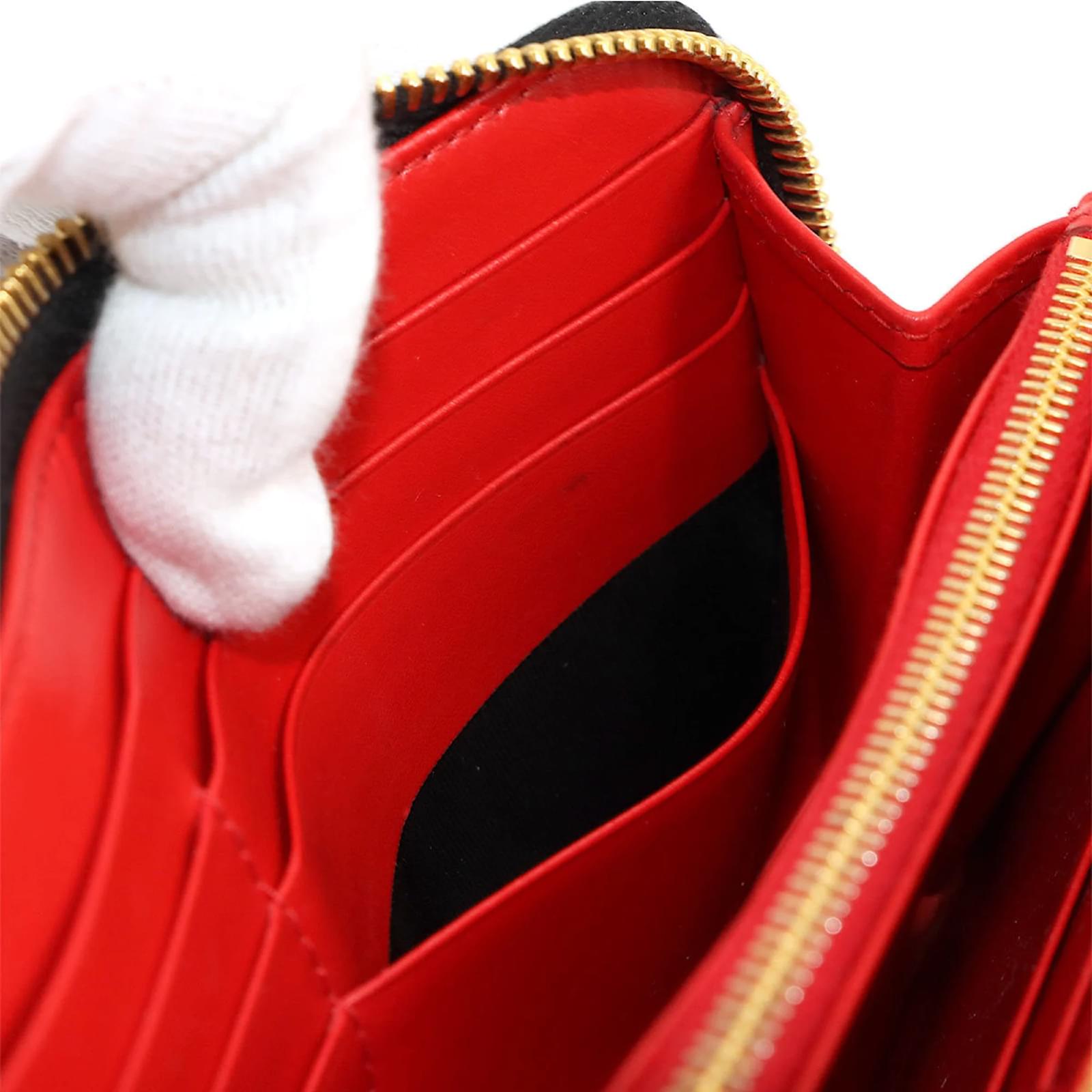 This Prada long wallet features a bi-fold design crafted from leather, available in a classic black color with red accents. Measuring 10.5cm x 20cm x 2.5cm, it is compact yet spacious enough for essentials. The wallet is in very good used condition, classified as Rank A, with only slight traces of usage, including minor scratches and corner peeling. It includes a box and a guarantee card. Potential buyers are encouraged to review the images for a detailed view of the item’s condition and included accessories.