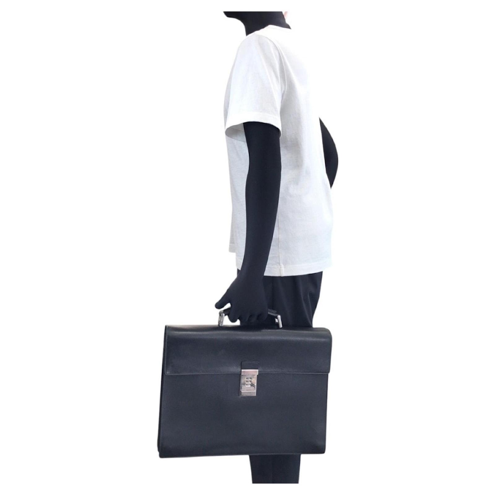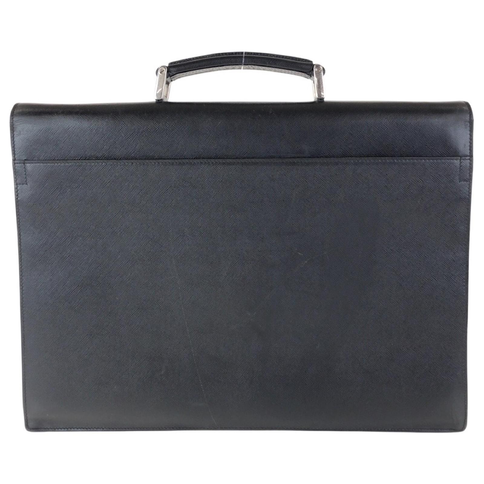 This Prada briefcase is crafted from black leather and features silver hardware, making it a sophisticated choice for business use. Measuring 30cm in height, 40cm in width, and 6cm in depth, it offers ample space for essentials. \n\nThe bag is in good used condition, classified as Rank AB, with slight traces of usage, including minor scratches and dirt. There is a slight rust on the hardware, but overall, the briefcase remains functional and stylish. \n\nPlease note that no accessories are included, and potential buyers are encouraged to review the images for a detailed view of the item’s condition.