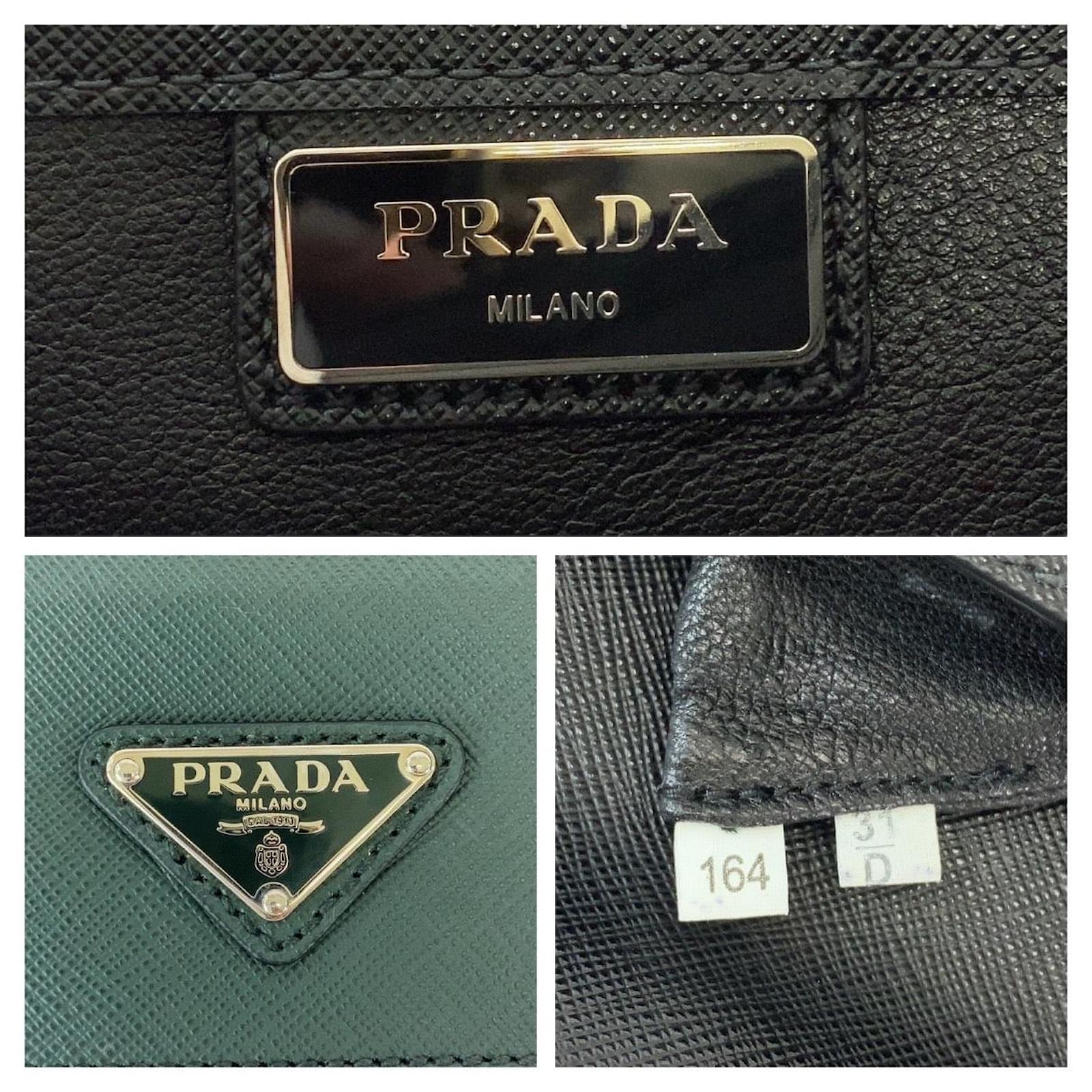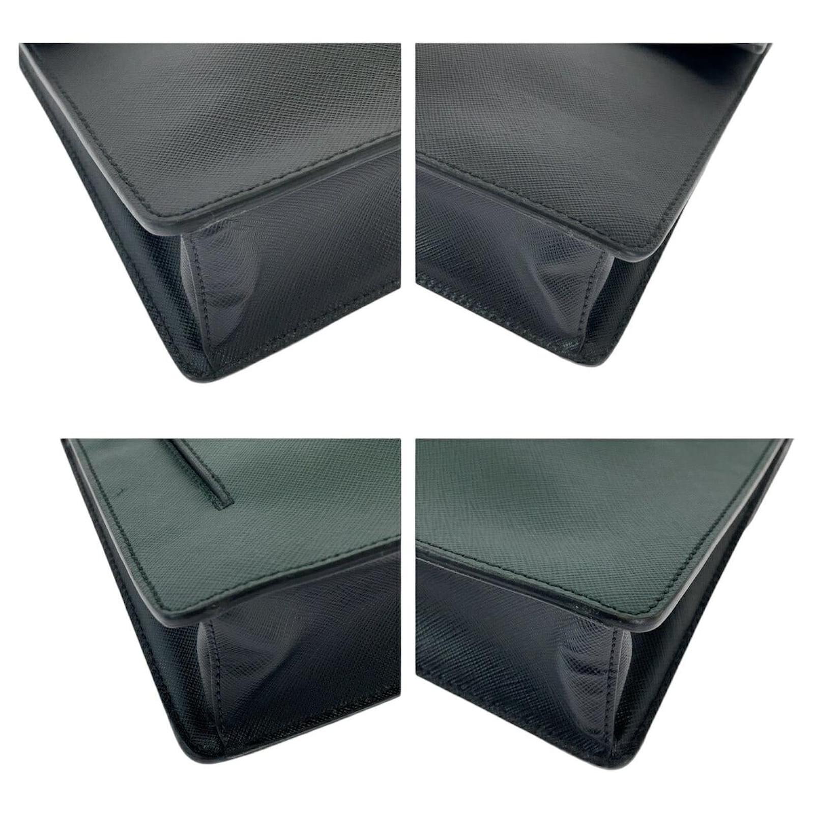 – General information -\nBrand : PradaItem name : Prada Saffiano Leather Clutch BagModel number : VR089M – Design -Type : Clutch BagMaterial : LeatherColor : GreenGender : Male- Size -Size : Length : 34Depth : 6.5Height : 24Item Material : LeatherItem Series : SaffianoItem Color : Bicolor Green BlackClosure Type : Push lockInterior : Main compartment x 1, Open pocket x 1, Zip pocket x 1Exterior : Zip pocket x 1- Inventory -Serial Number : SKU : 120210013446000A0025778953- Included Items -Accessories : null*Before purchasing, please refer to the images of the accessories included with the item.- Condition -Condition : Good ConditionRank : Used A Used condition with obviously scratches and stains.Condition Notice : Before purchasing, please refer to the images for the exact condition of the item. Measurments: width: 6 mm length: 34 mm height: 24 mm \n Product Id: 505803 \n