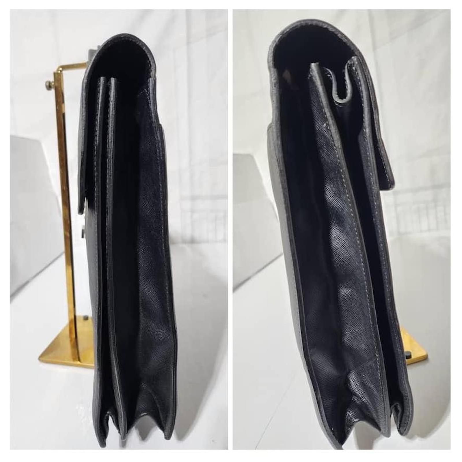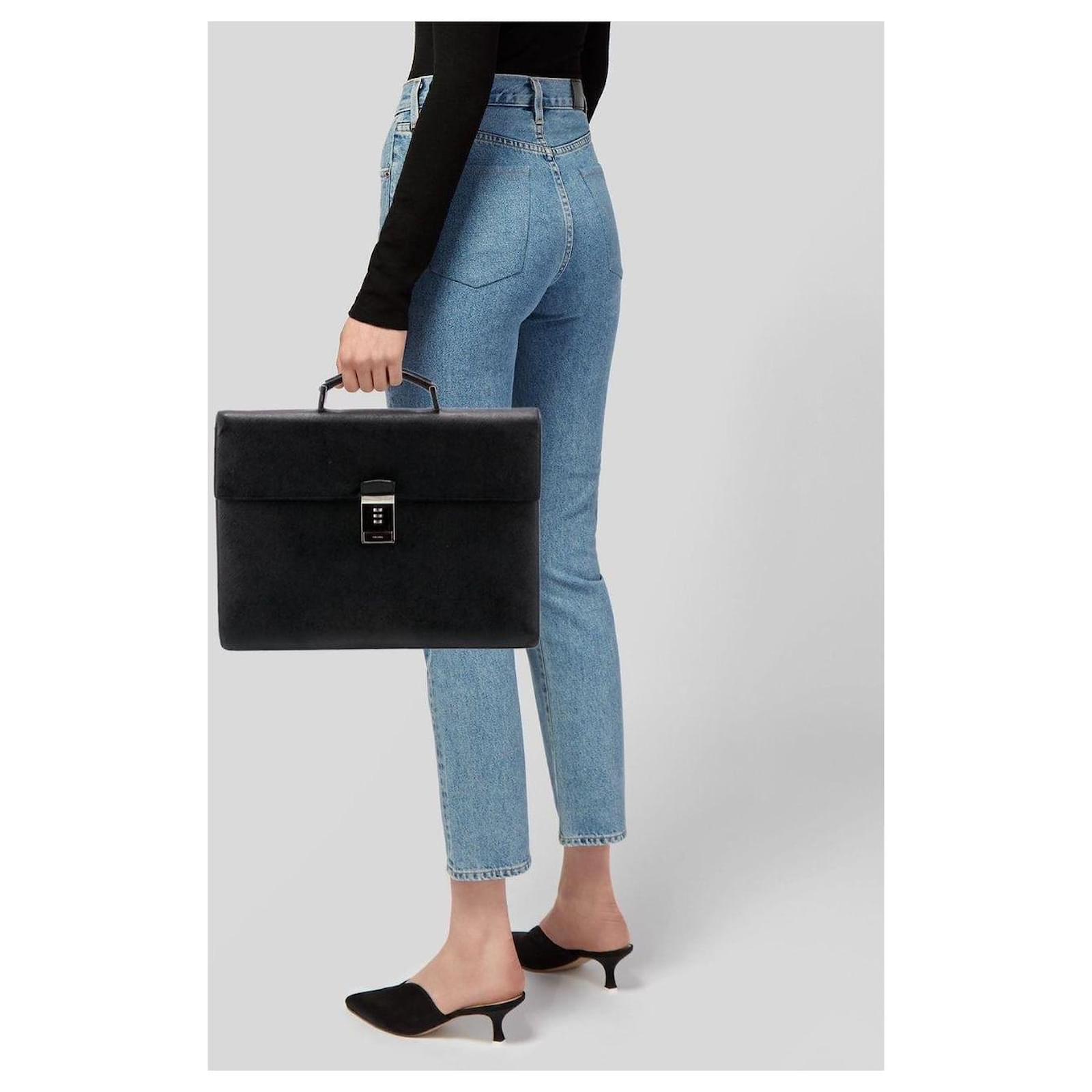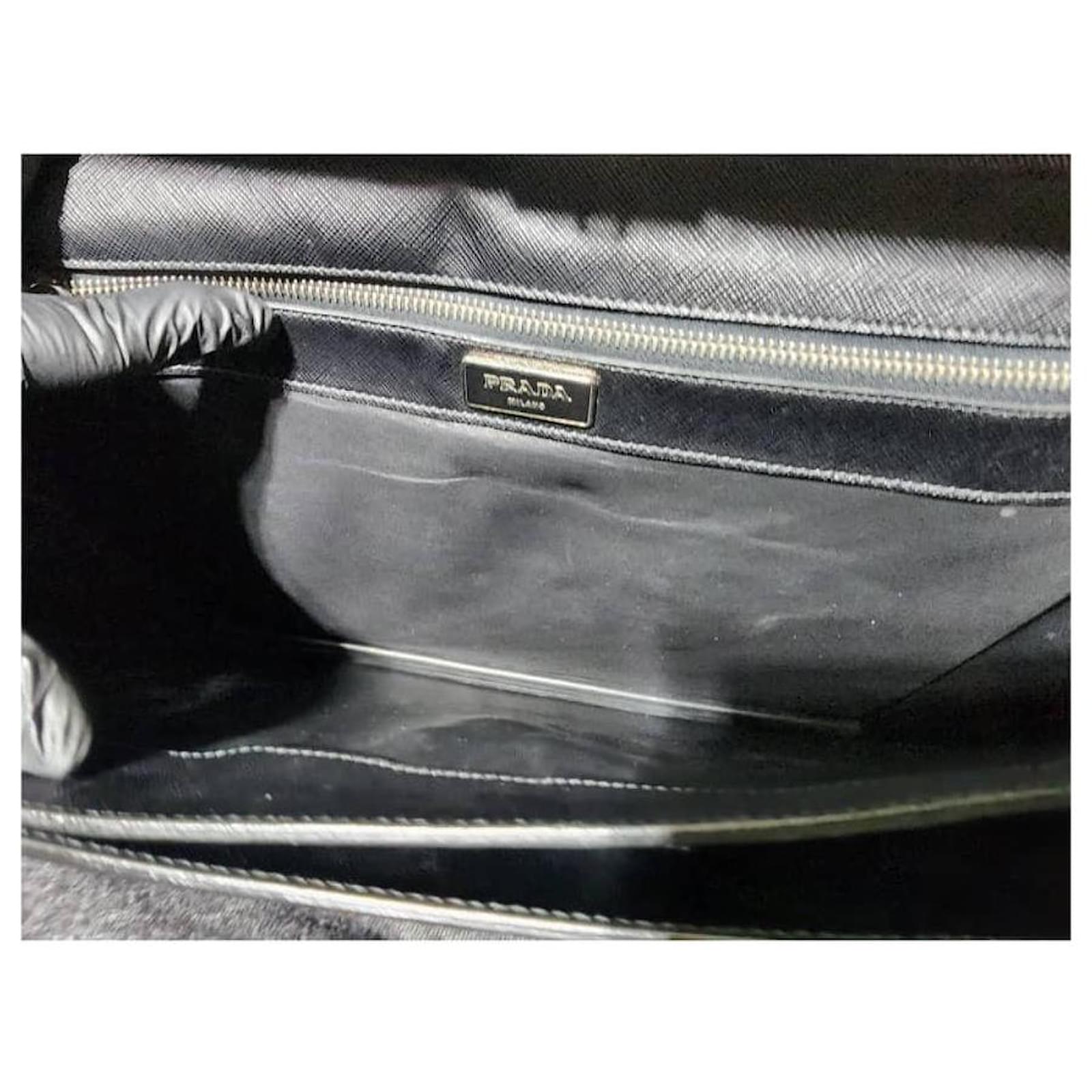 This authentic Prada Saffiano Leather Top Handle Briefcase Black is in it’s good pre-owned condition. The exterior is clean and beautiful. The interior is clean. Silver hardware. \r\n\r\nKindly note that picture on mannequin is not ours but for size reference and fit.\r\n\r\nDimensions \r\nHeight: 11.5\”\r\nWidth: 15.5\”\r\nDepth: 2.75\”