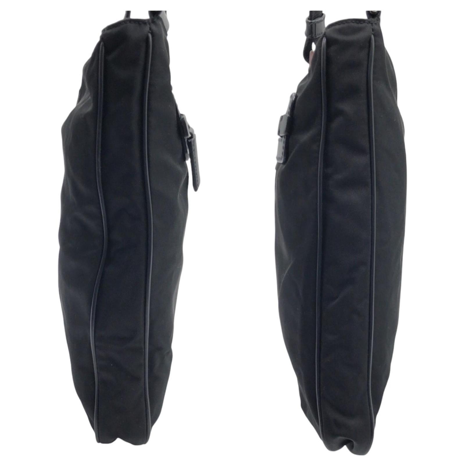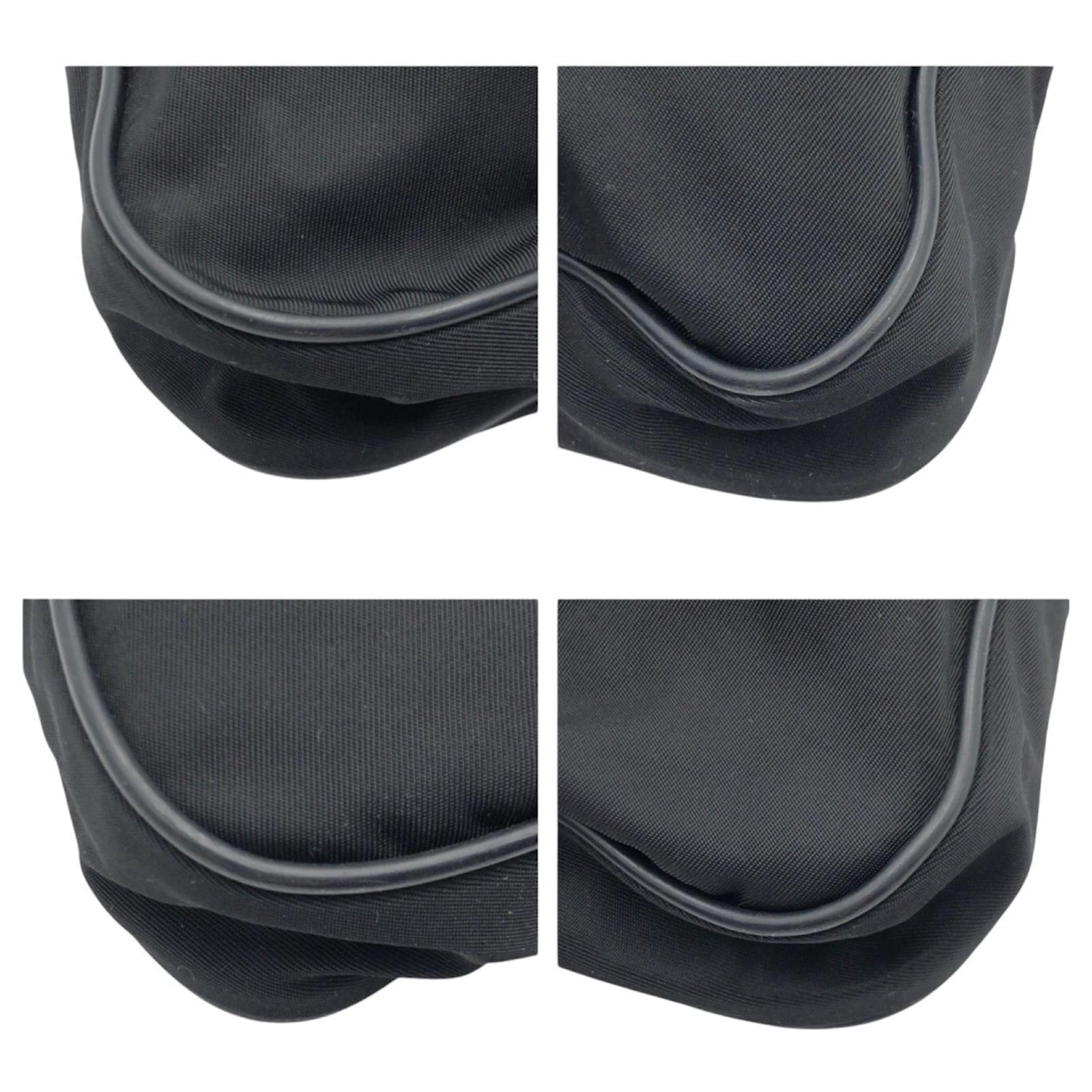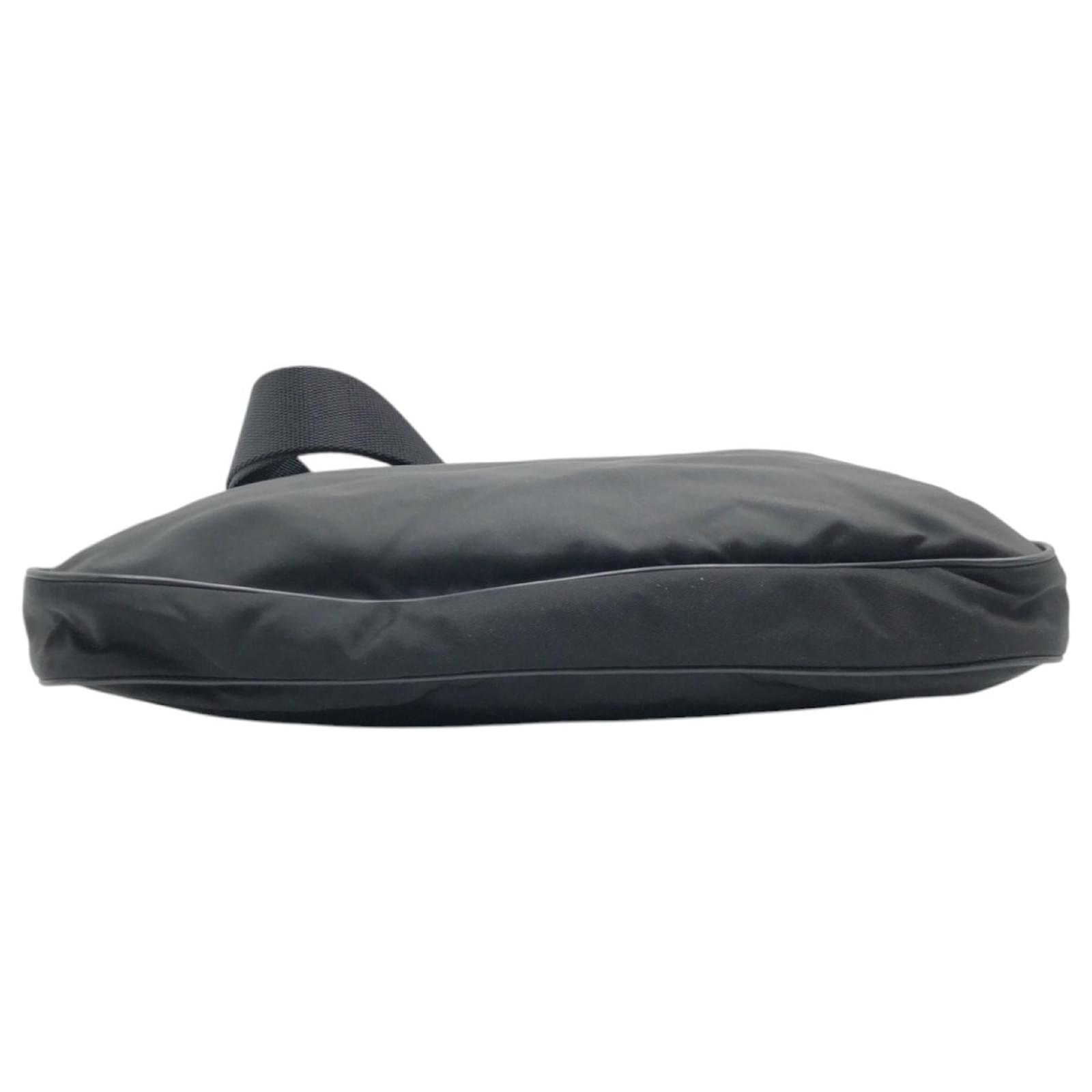 This Prada pochette is crafted from durable black nylon and features the iconic triangle logo. Measuring 25cm x 30cm x 5cm, it is designed for practicality and style. The bag is classified as used but remains in good condition, showing slight traces of use, including minor scratches and dirt. It is important to review the provided images for a clear understanding of its condition. No additional accessories are included with this item.