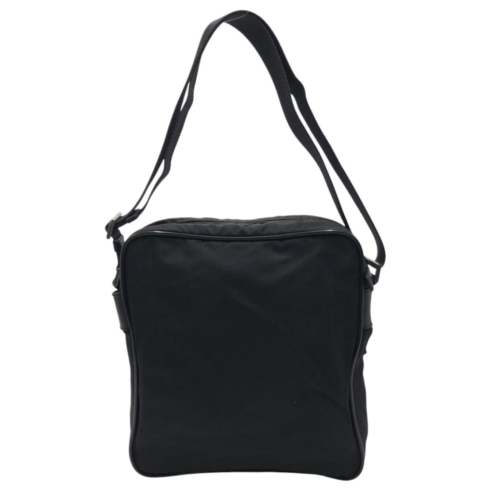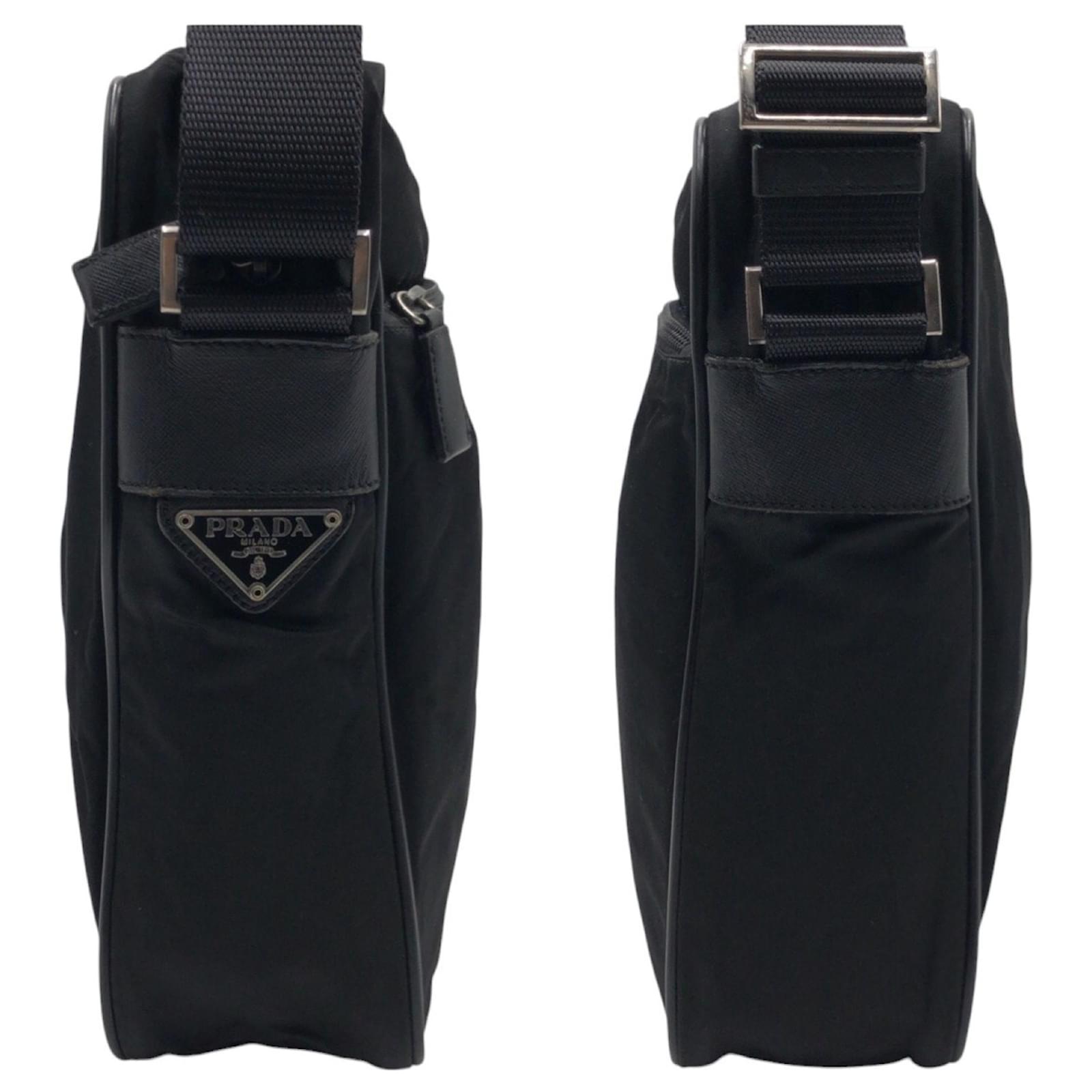 The Prada Tessuto Triangle Logo Black Nylon Shoulder Bag is a versatile accessory designed for men, suitable for both messenger and shoulder use. Crafted from durable nylon, this bag features a zipper closure and includes one outer and one inner zipper pocket for secure storage. \n\nMeasuring 28cm x 25cm x 9cm, with an adjustable strap length ranging from 63cm to 120cm, it offers practicality and style. This item is pre-owned and classified as being in good condition, with minor traces of usage such as slight scratches and dirt. Potential buyers are encouraged to review the provided images for a detailed view of the bag’s condition and included accessories. \n\nOriginating from Italy, this bag reflects the quality and craftsmanship associated with the Prada brand.