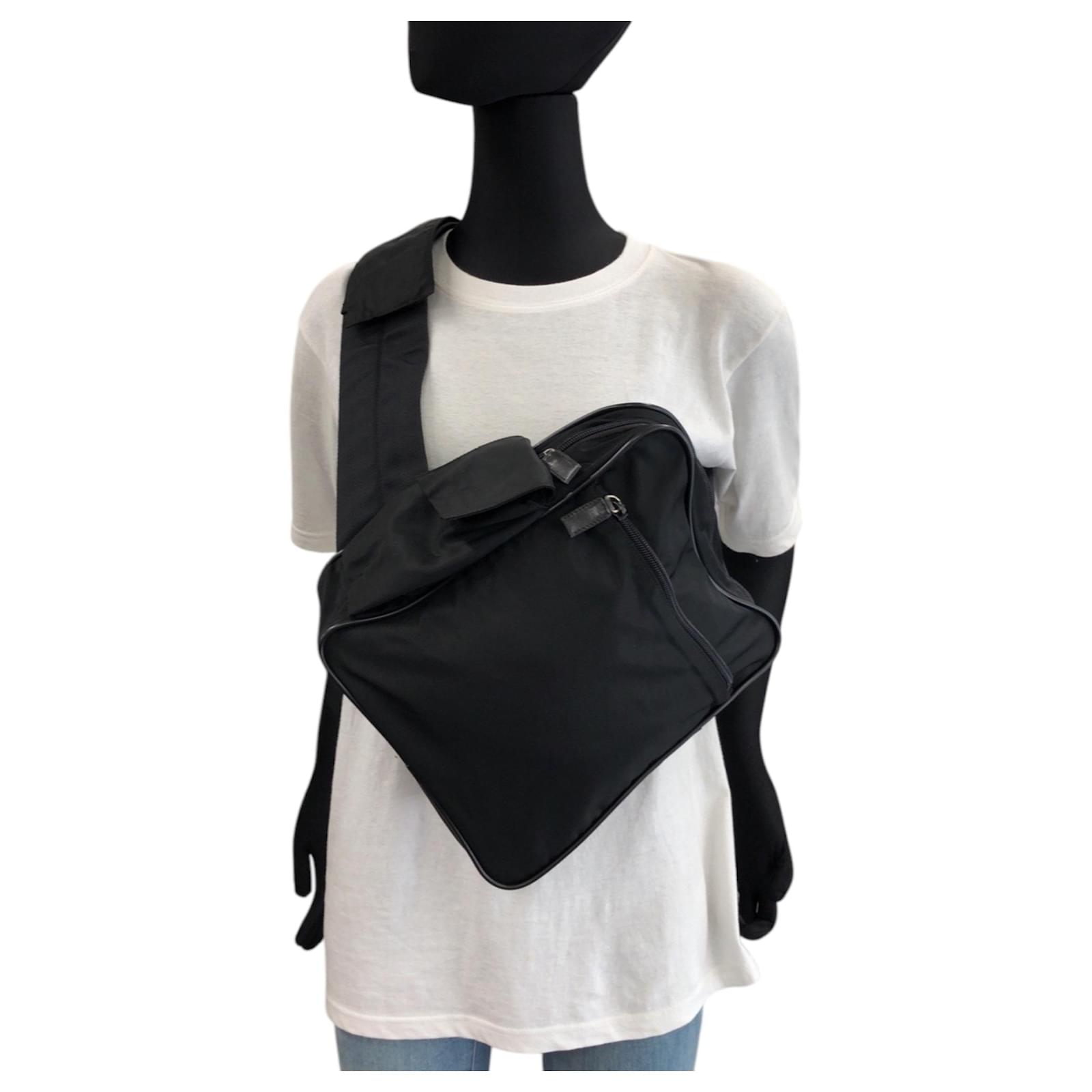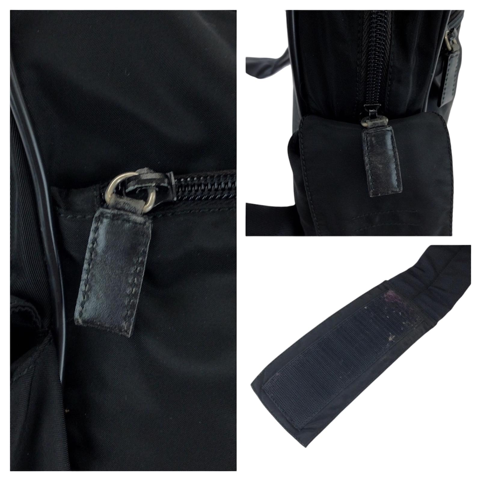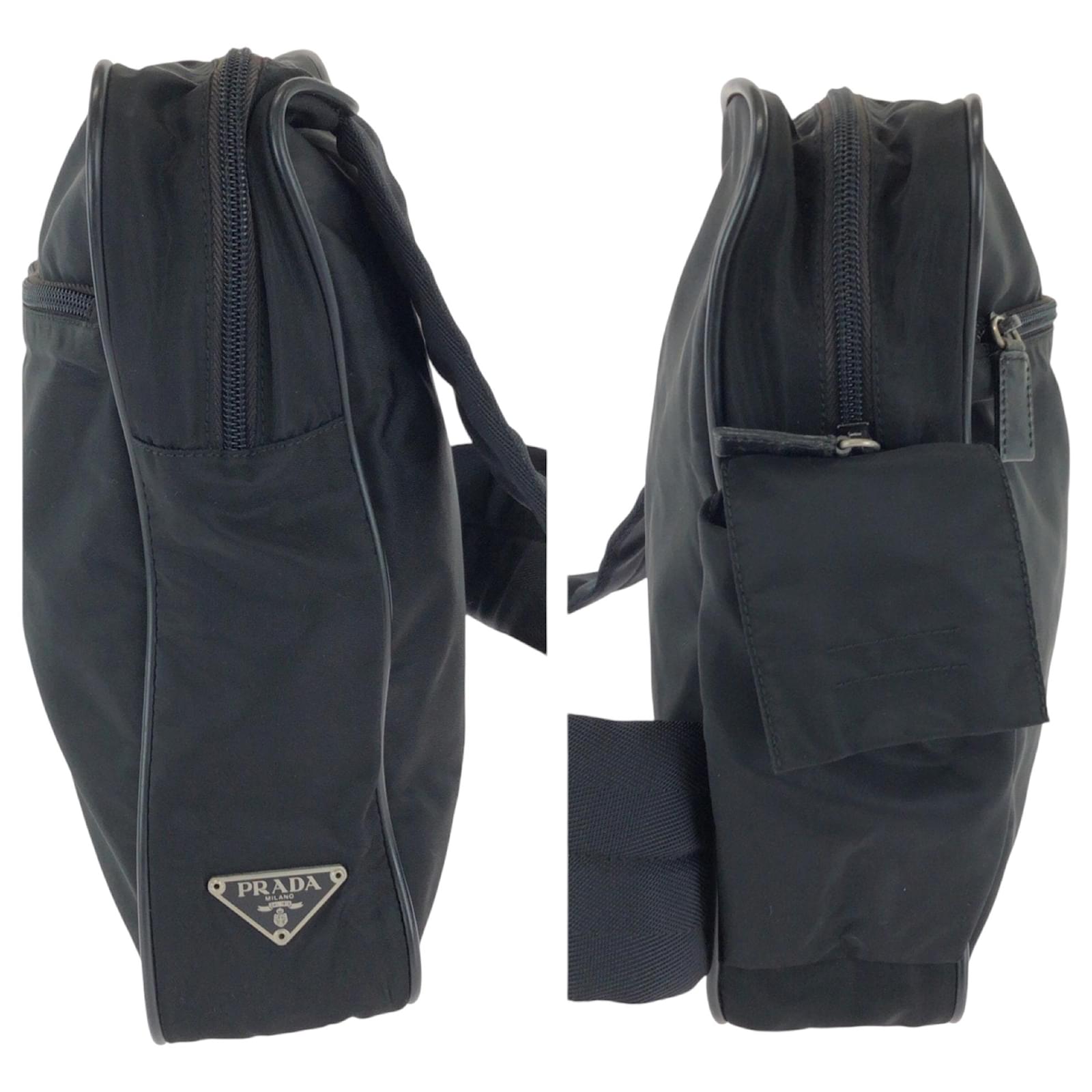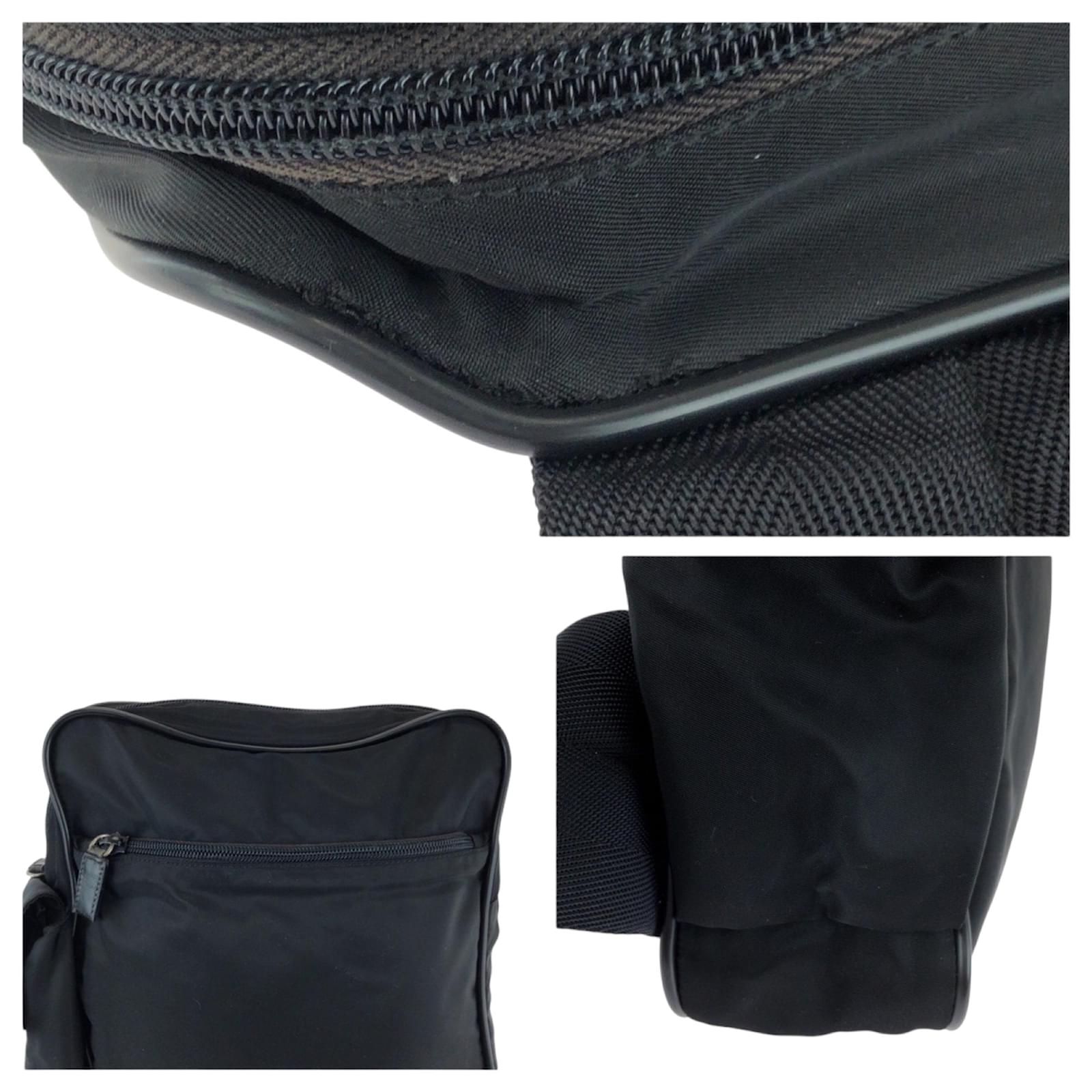 This Prada Tessuto Triangle Logo Plate bag is designed as both a messenger and shoulder bag, featuring a sleek black nylon exterior complemented by silver hardware. The dimensions of the bag are 29cm in height, 23.5cm in width, and 7cm in depth, making it a practical choice for daily use. \n\nThe bag is classified as used but remains in good condition, showing slight traces of usage, including minor scratches and dirt. It is advisable to review the provided images for a clear understanding of its condition before purchasing. No additional accessories are included with the bag.