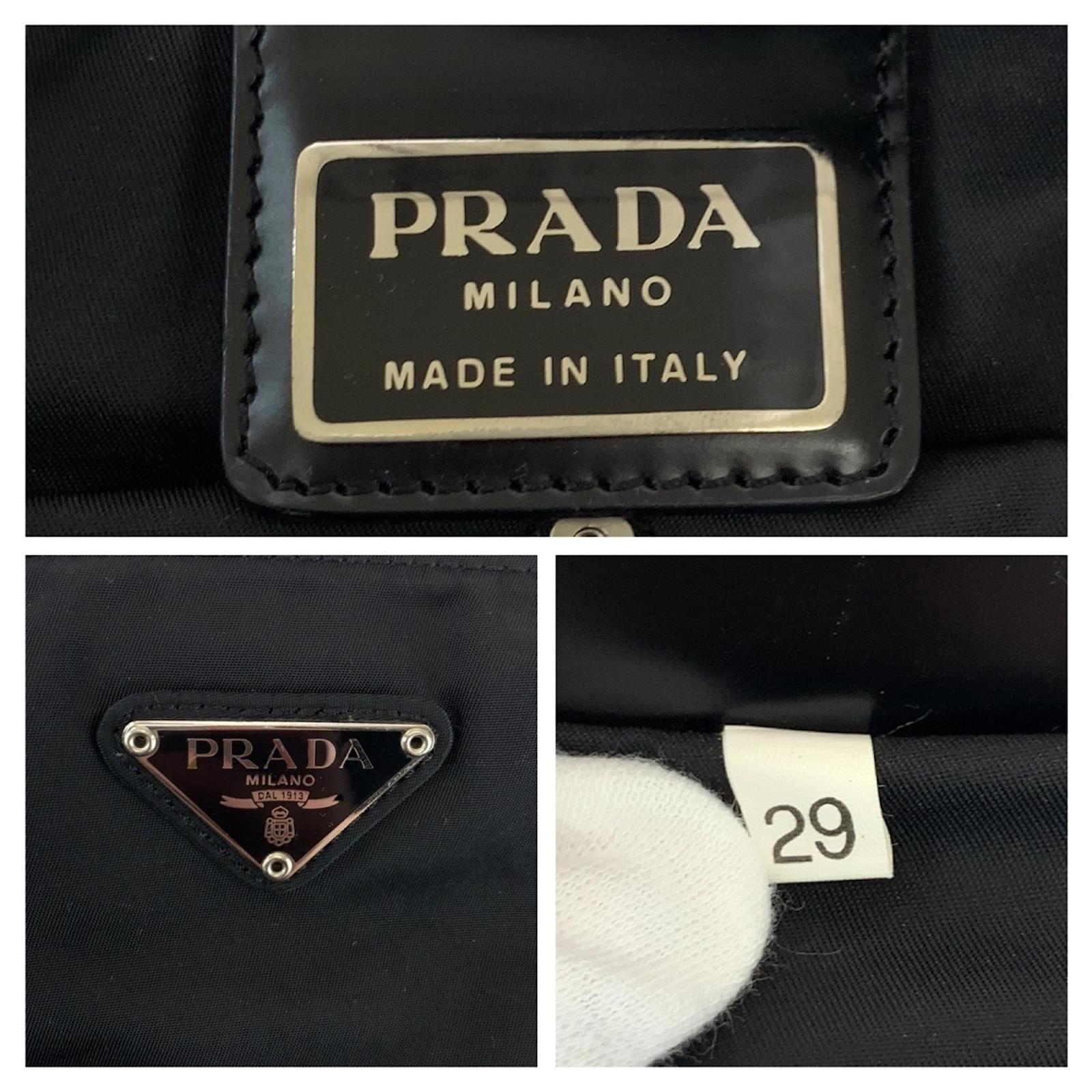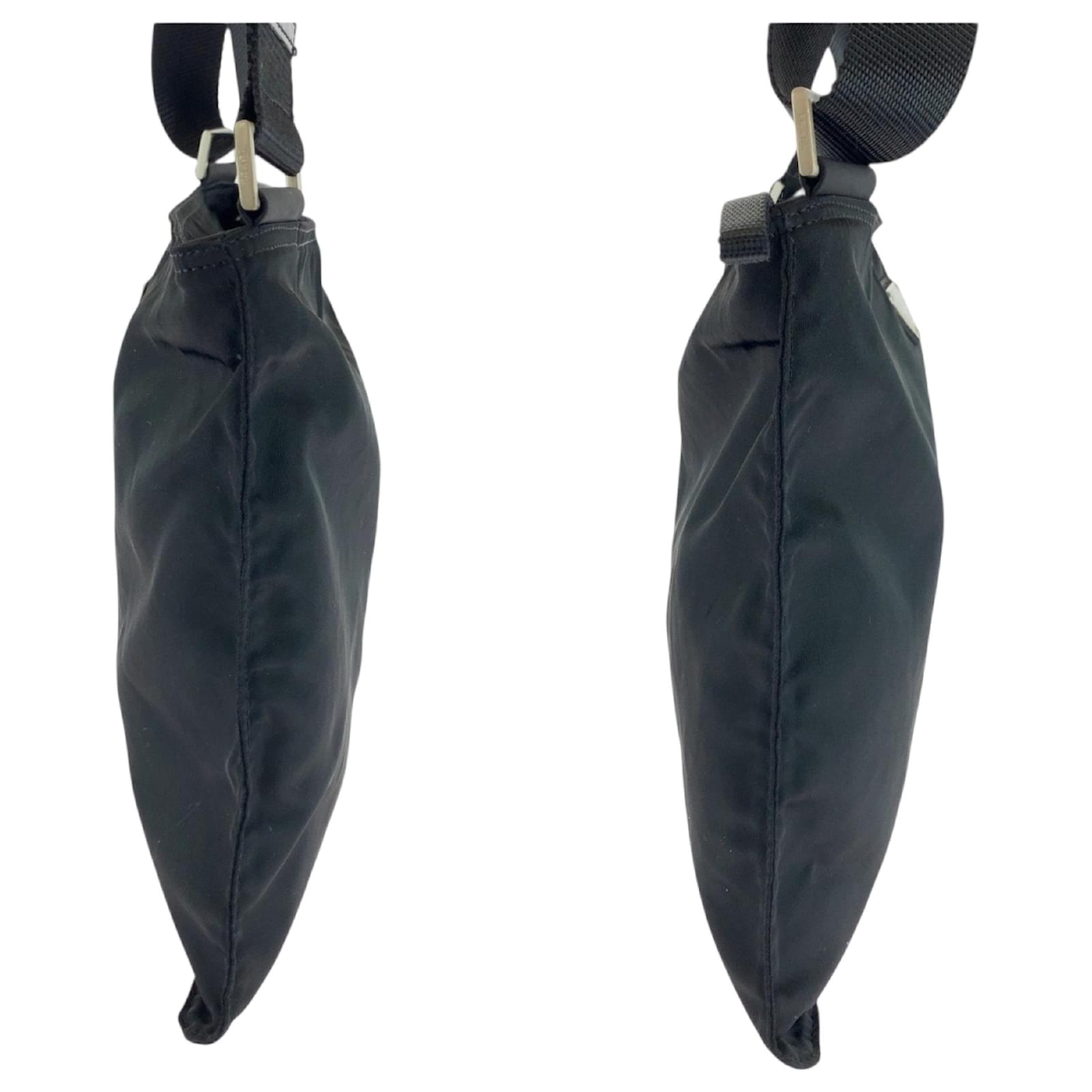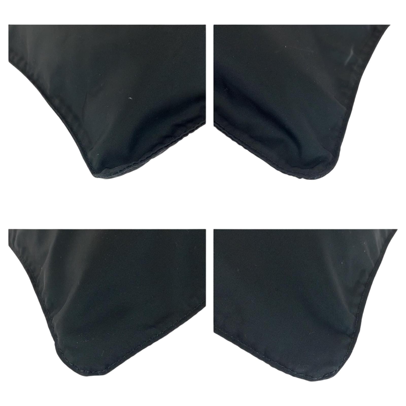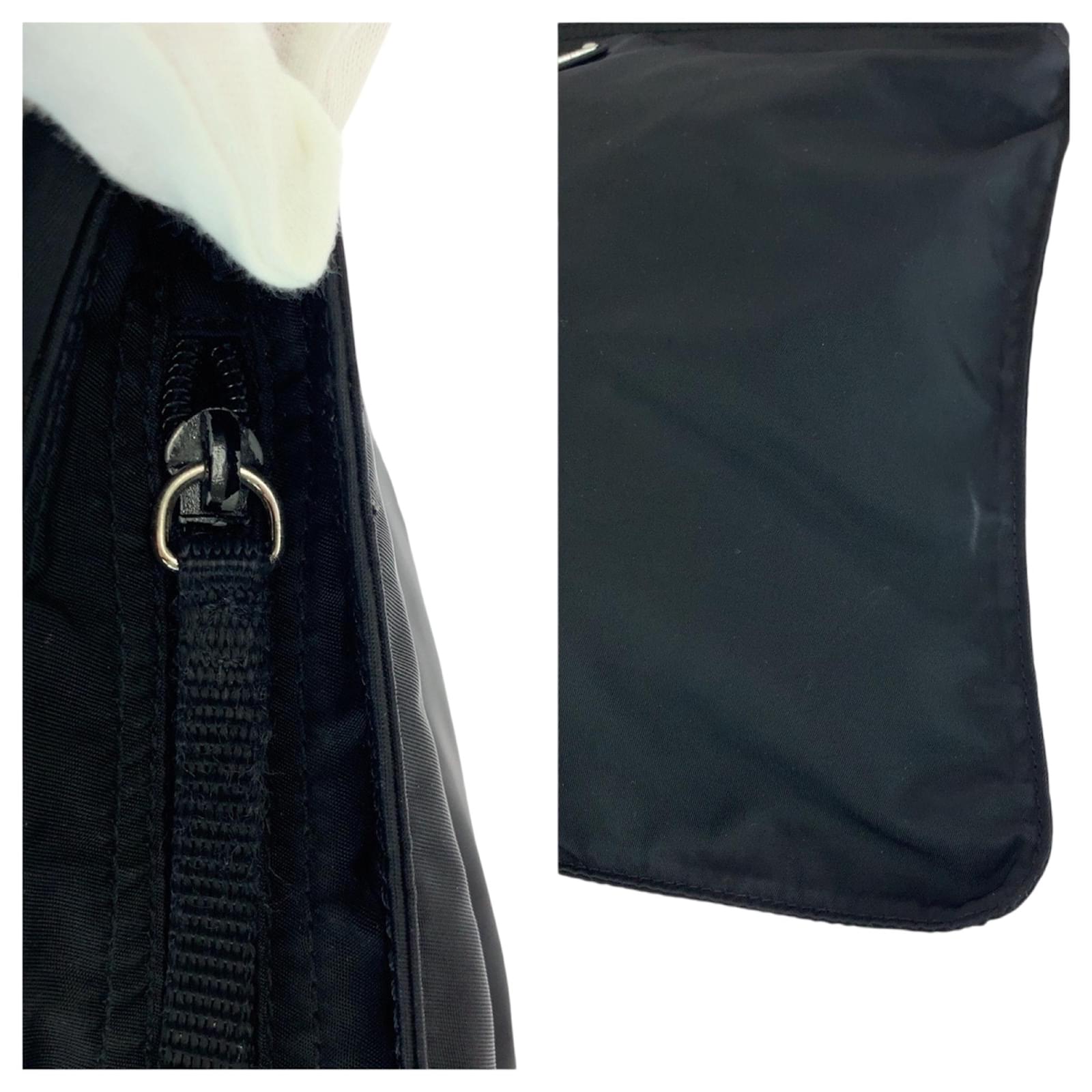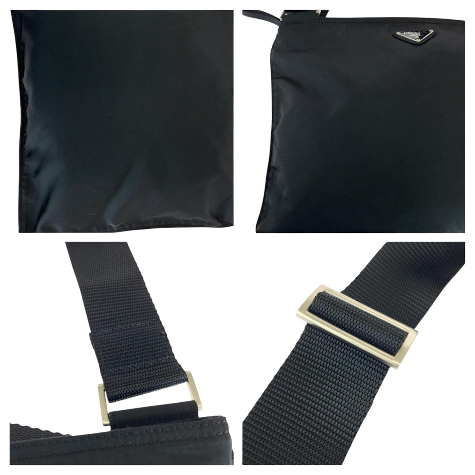 This Prada shoulder bag, crafted from durable nylon, features a sleek black design complemented by silver hardware. The bag measures 26cm in height, 31.5cm in width, and 2cm in depth, making it a practical choice for everyday use. It is categorized as a pochette and is suitable for men. \n\nThe item is in very good used condition, classified as Rank A, with only slight traces of use, including minor scratches and dirt. Potential buyers are encouraged to review the provided images for a detailed view of the bag’s condition. No additional accessories are included with the purchase.