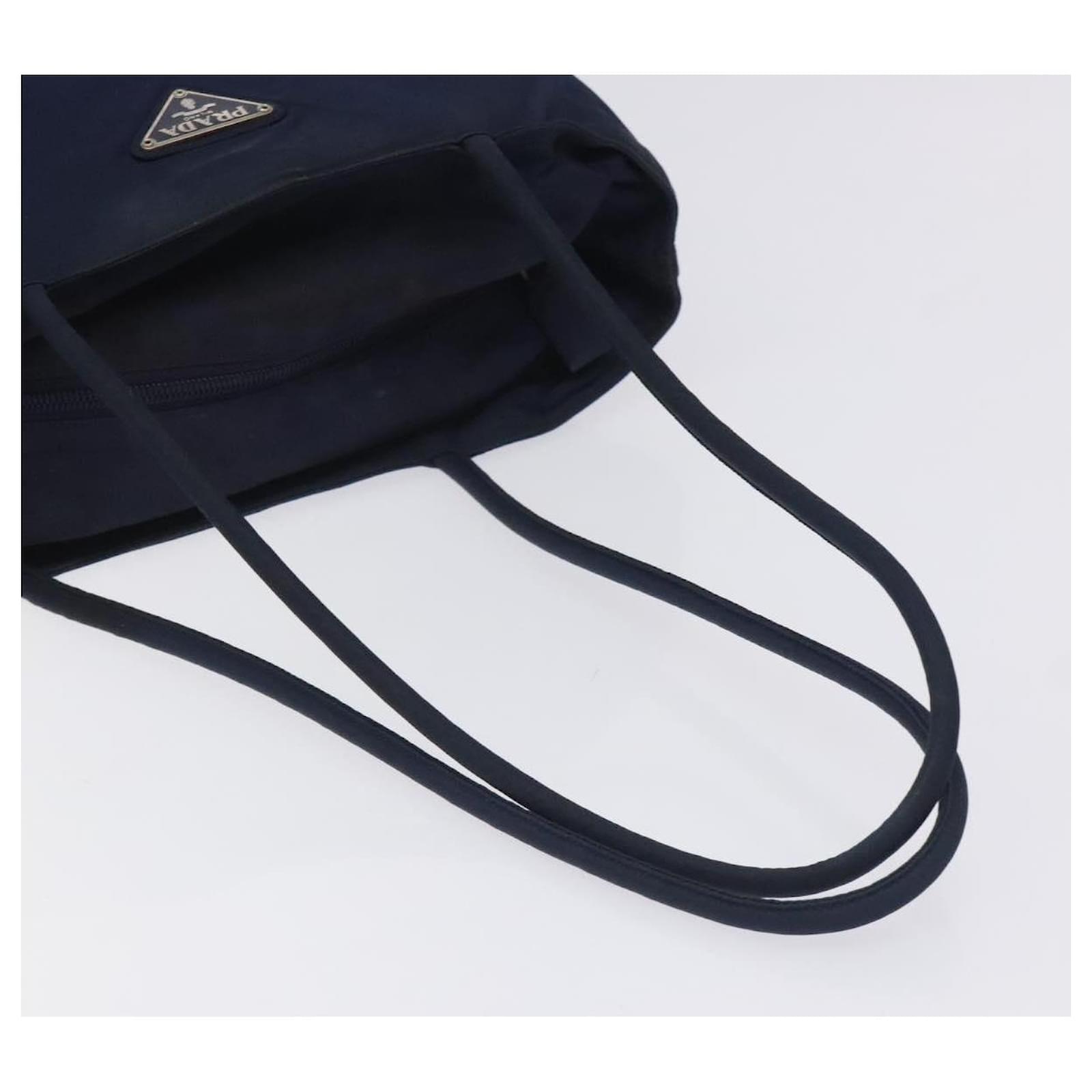 BRAND : PRADA\n Color : Blue / Silver\n Material : Nylon \n Size(cm) : W29cm x H28cm x D8cm(Approx) / Handle Drop 27cm(Approx)\n Size(inch) : W11.4 x H11.0 x D3.1inch(Approx) / Handle Drop 10.6inch(Approx)\n Style : Tote Bag\n Accessory : There is no item box and dust bag. We will send only the item which is put in the photo.\n Product No. : -\n Serial No. : 31\n Made in : Italy\n RANK : CD\n SKU : bs26593\n Condition : \n Outside : SurfaceFlose shape , rubbing , stain , sticky\n Metal fittingsFscratches\n Inside : rubbing , tear , slight stain\n Pocket : rubbing , slight stain\n Corners : rubbing\n Odor : There is keeping(storage) smell.\n Other Remarks : –