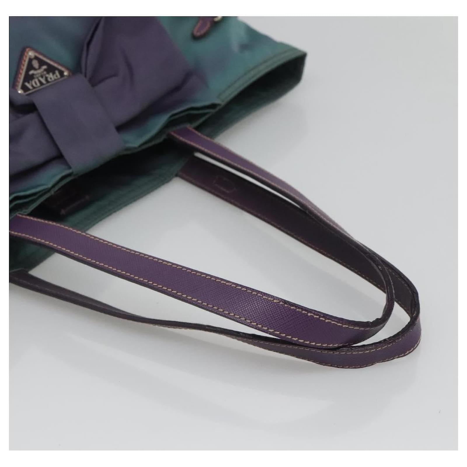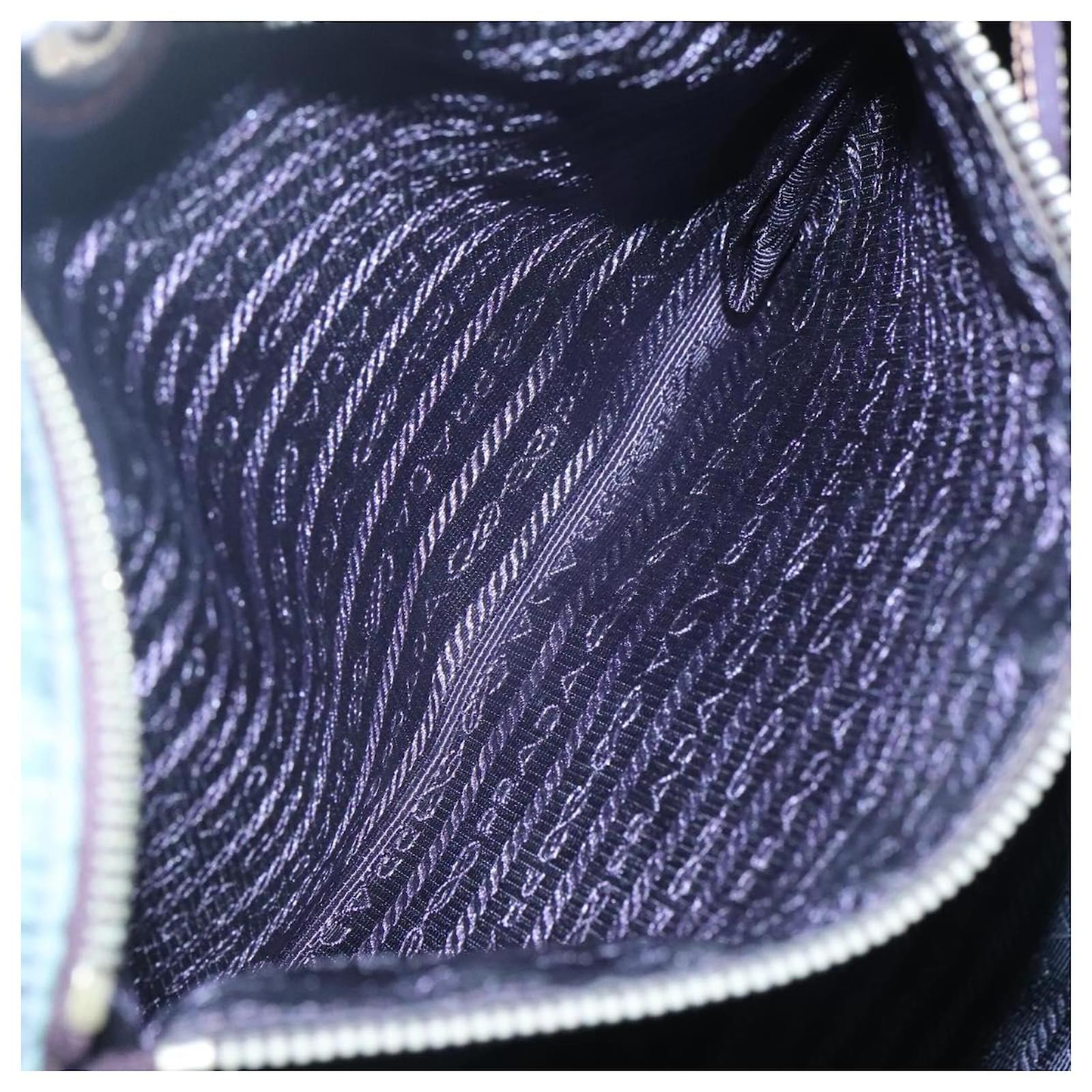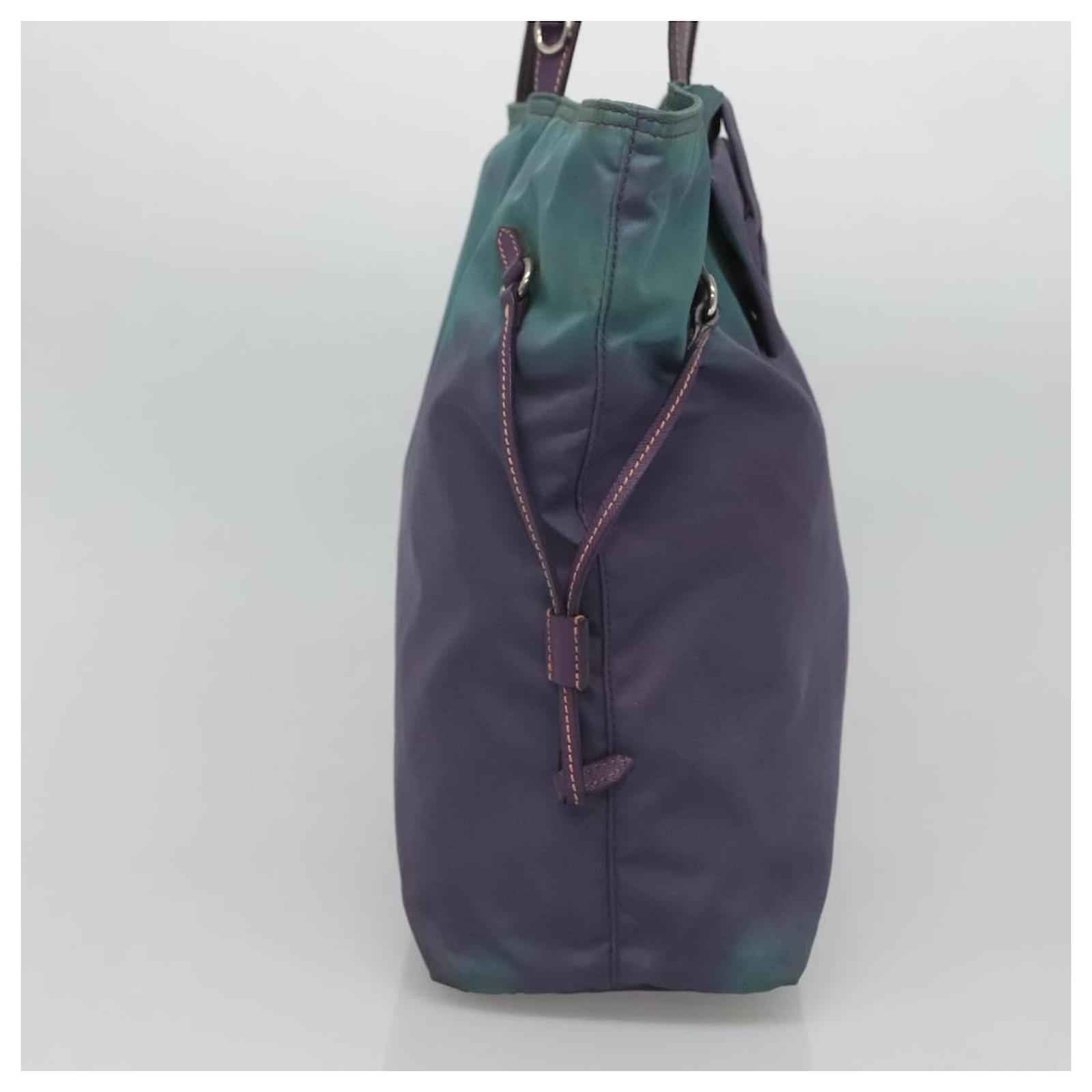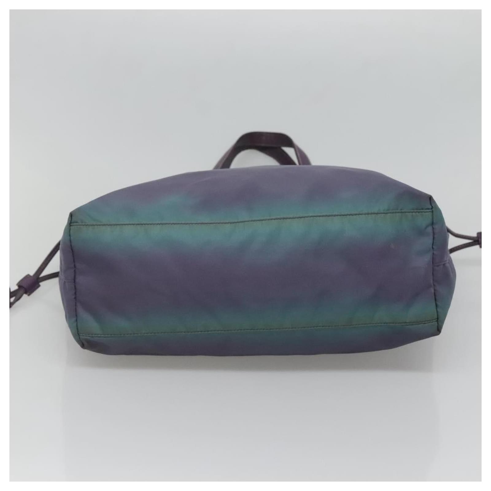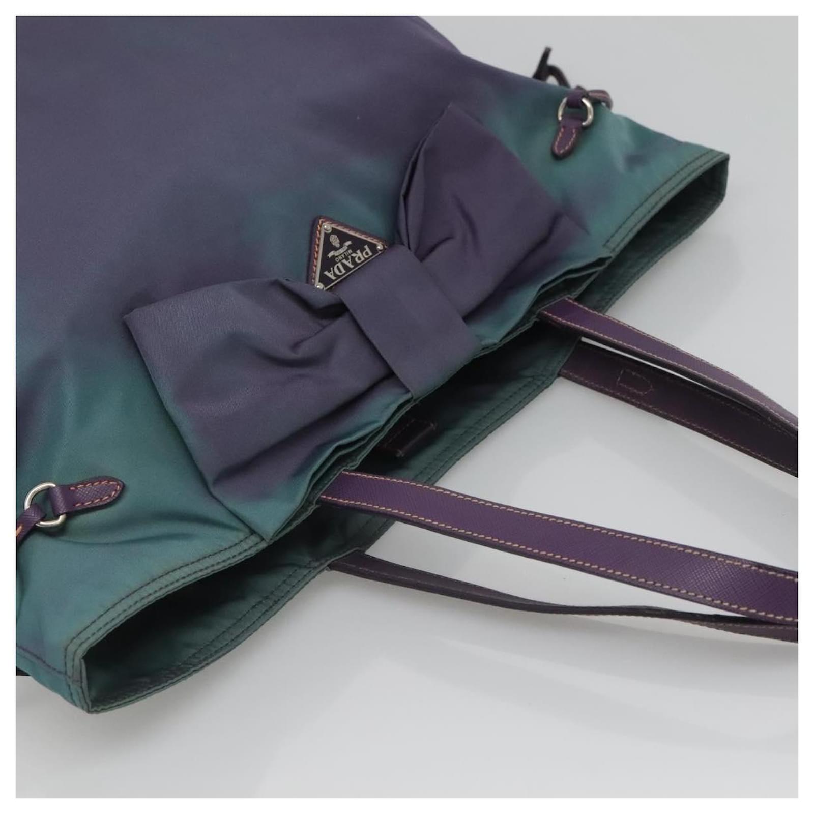 BRAND : PRADA\n Color : Turquoise Blue / Silver\n Material : Nylon \n Size(cm) : W31cm x H31cm x D11cm(Approx) / Handle Drop 21cm(Approx)\n Size(inch) : W12.2 x H12.2 x D4.3inch(Approx) / Handle Drop 8.3inch(Approx)\n Style : Tote Bag\n Accessory : There is no item box and dust bag. We will send only the item which is put in the photo.\n Product No. : -\n Serial No. : 25\n Made in : Italy\n RANK : C\n SKU : bs26897\n Condition : \n Outside : SurfaceFlose shape , rubbing , stain , lose color\n Metal fittingsFscratches\n Inside : rubbing , stain\n Pocket : rubbing , slight stain\n Corners : rubbing\n Odor : There is keeping(storage) smell.\n Other Remarks : –