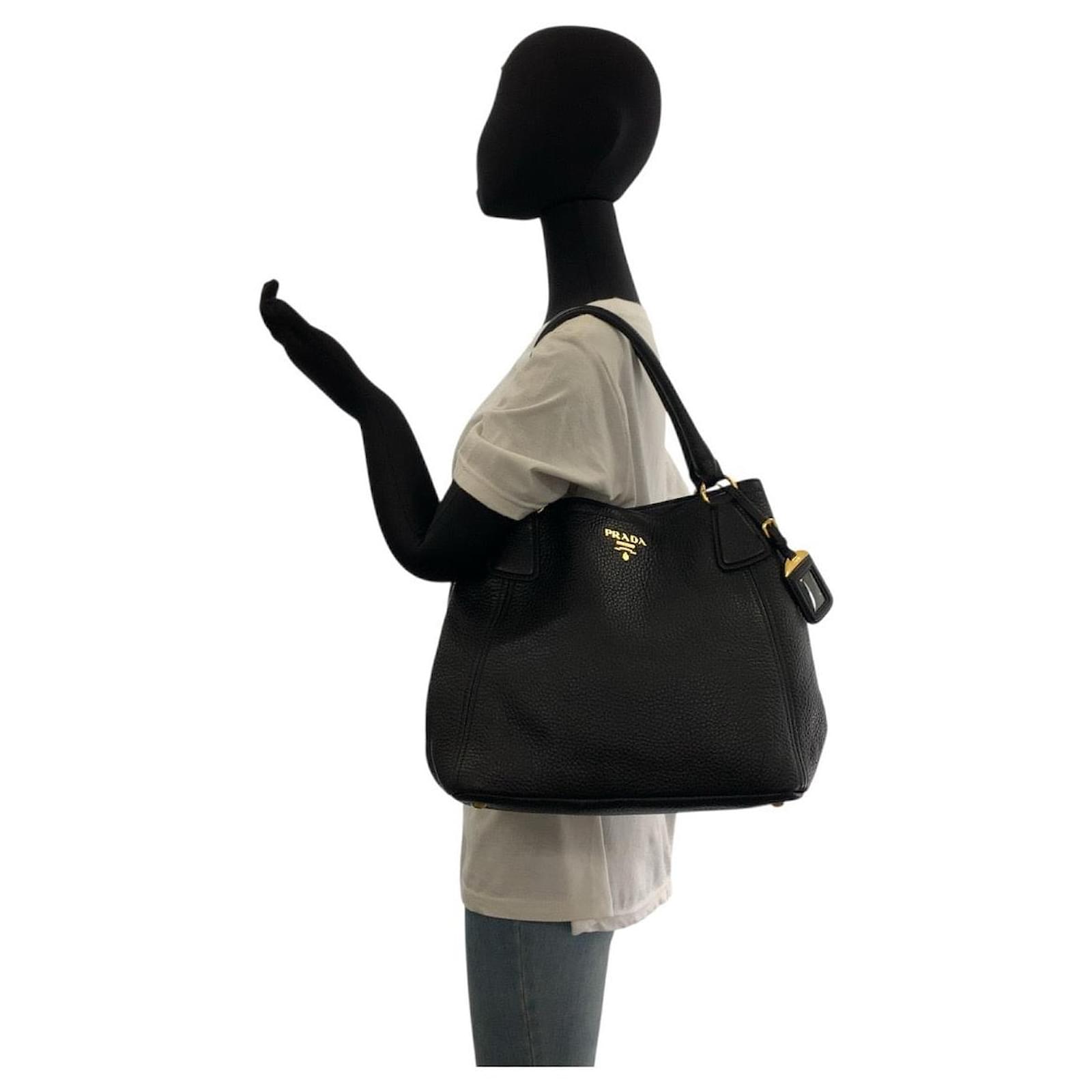 – General information -\nBrand : PradaItem name : Prada Vitello Daino 2way bag LeatherModel number : – Design -Type : Shoulder BagMaterial : LeatherColor : BlackGender : Female- Size -Size : Length : 30Depth : 18Height : 27Shoulder strap : 45Item Material : VITELLO DAINOItem Color : BlackClosure Type : Snap buttonInterior : Open pocket x 1, Zipper pocket x 1- Inventory -Serial Number : 165SKU : 120210026946000A0025846818- Included Items -Accessories : Name Tag*Before purchasing, please refer to the images of the accessories included with the item.- Condition -Condition : Good ConditionRank : Used A Used condition with obviously scratches and stains.Condition Notice : Before purchasing, please refer to the images for the exact condition of the item. Measurments: width: 180 mm length: 300 mm height: 270 mm strap length: 450 mm \n Product Id: 525275 \n