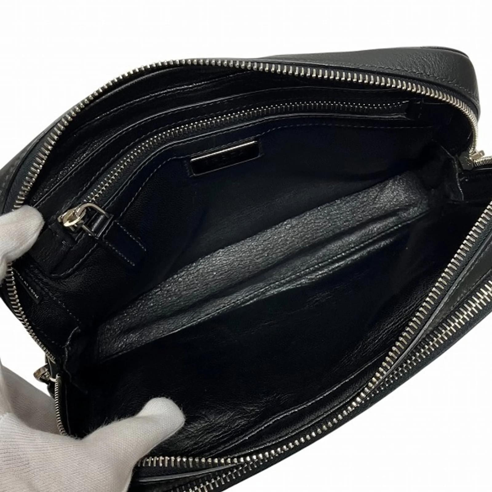 The Prada VR0052 Travel Pouch Bag is a versatile accessory designed for both travel and everyday use. This clutch bag, crafted from black leather, measures 15cm x 23cm x 5.5cm, making it a compact yet functional choice. It is categorized as a second clutch for men and is in good used condition, showing slight traces of usage, including minor scratches and dirt. The bag comes with a guarantee card and a shoulder strap for added convenience. Potential buyers are encouraged to review the images for a detailed view of the item’s condition and included accessories.