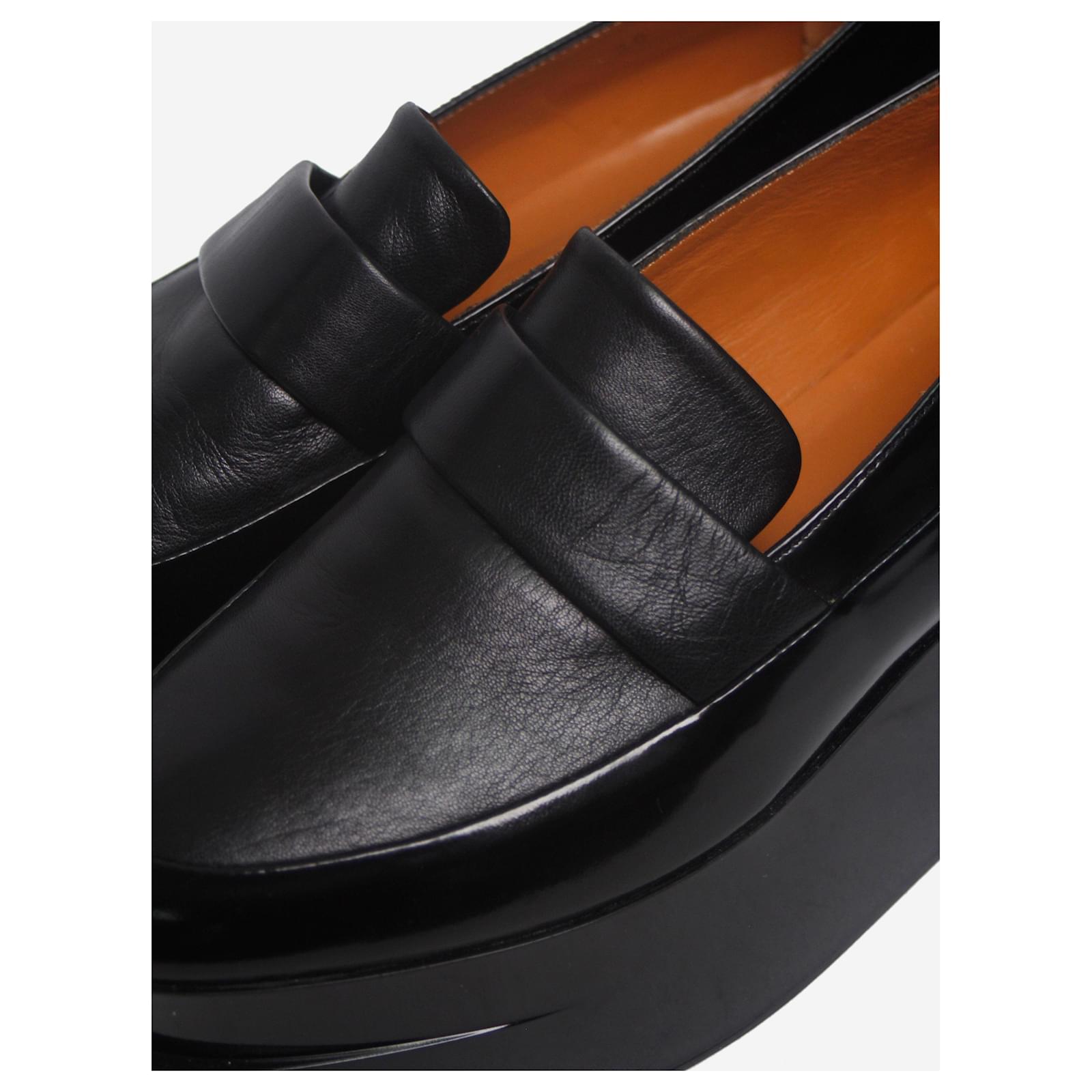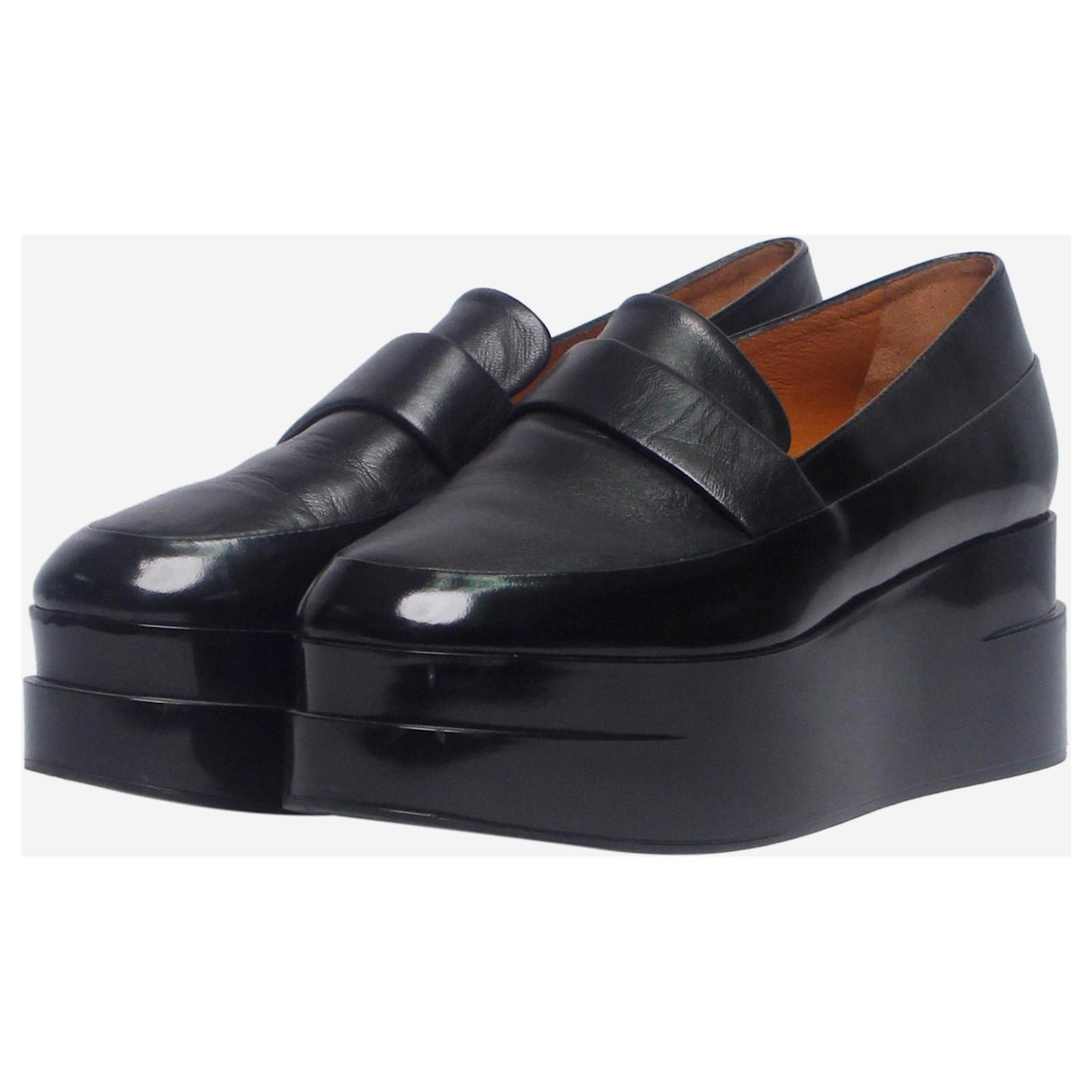 Clergerie black platform loafers.\nCondition: This item is in good pre-owned condition, showing signs of creasing on the leather.\nSize: EU 38 (UK 5)\nMaterial: Leather\nHeel height: 6 cm\n