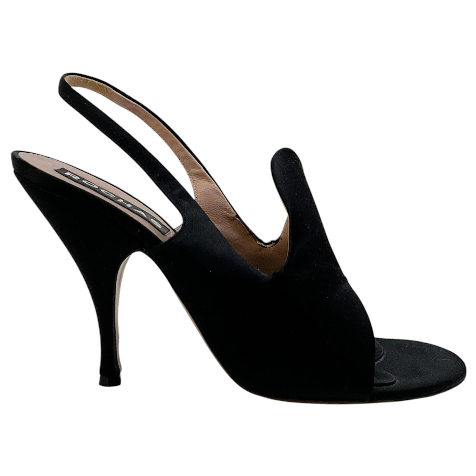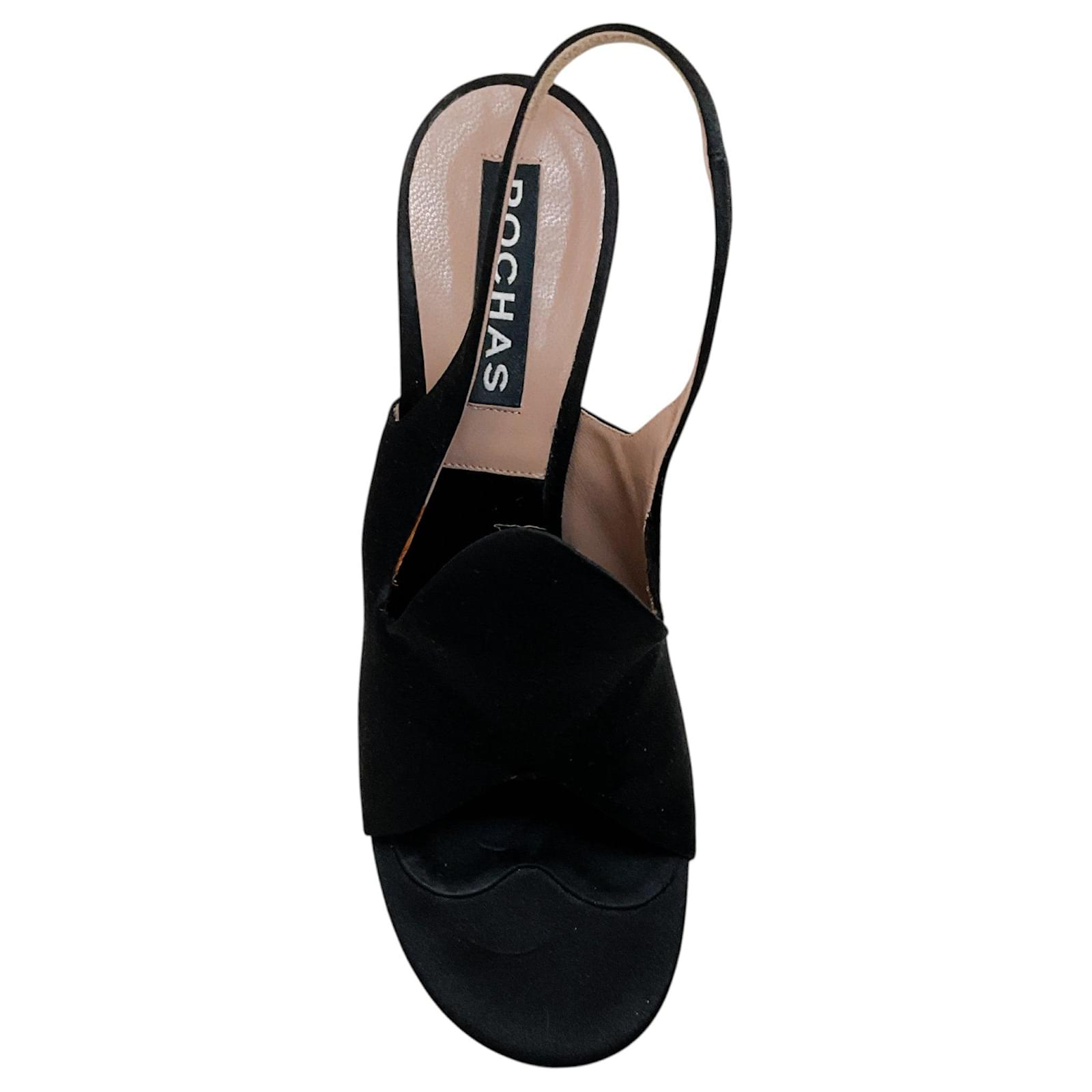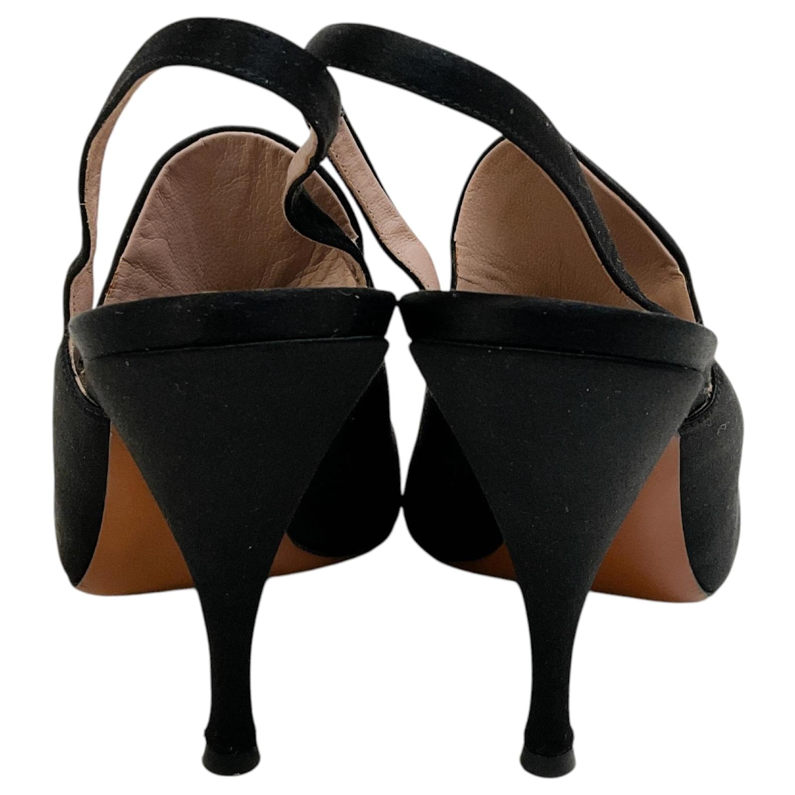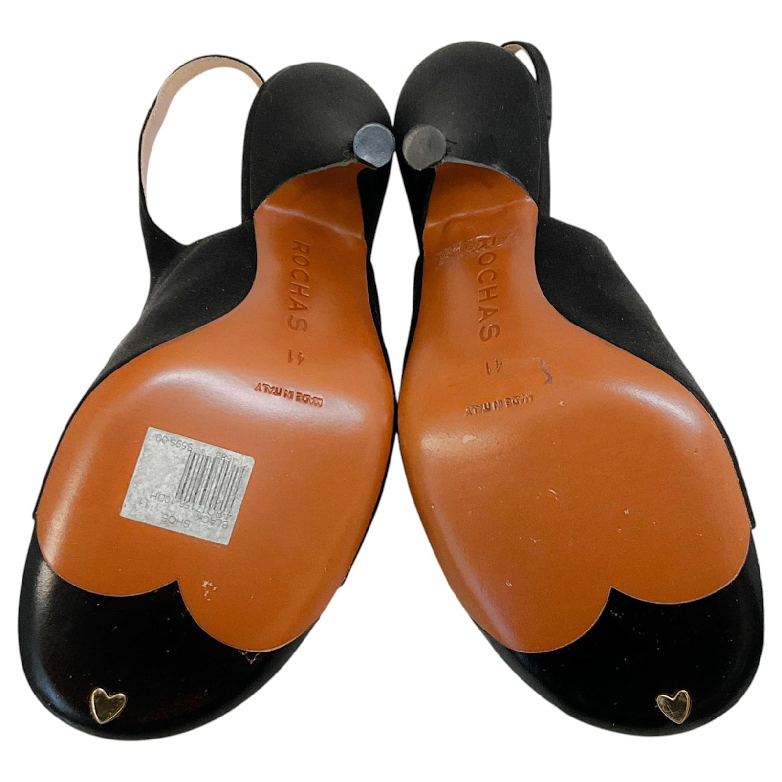 Rochas Black Satin Slingback Pumps\nCondition: Very good condition\nPre loved. Signs of wear consistent with normal use. Wear on heels by heel taps. Please see photos\nMaterial: Cloth\nIncludes: N/A\nCountry of origin: Italy\n*Please note as with most designer shoes they may run small\nHeel height: 4.5\”\nSole: Leather\nColor: Black\nSize: US 11 / EU 41\nCategory: Shoes\nSubcategory: Heels\n19483-3590 F525MA\n** Photos are of the actual item **\n** Roundabout Couture Certified Authentic **