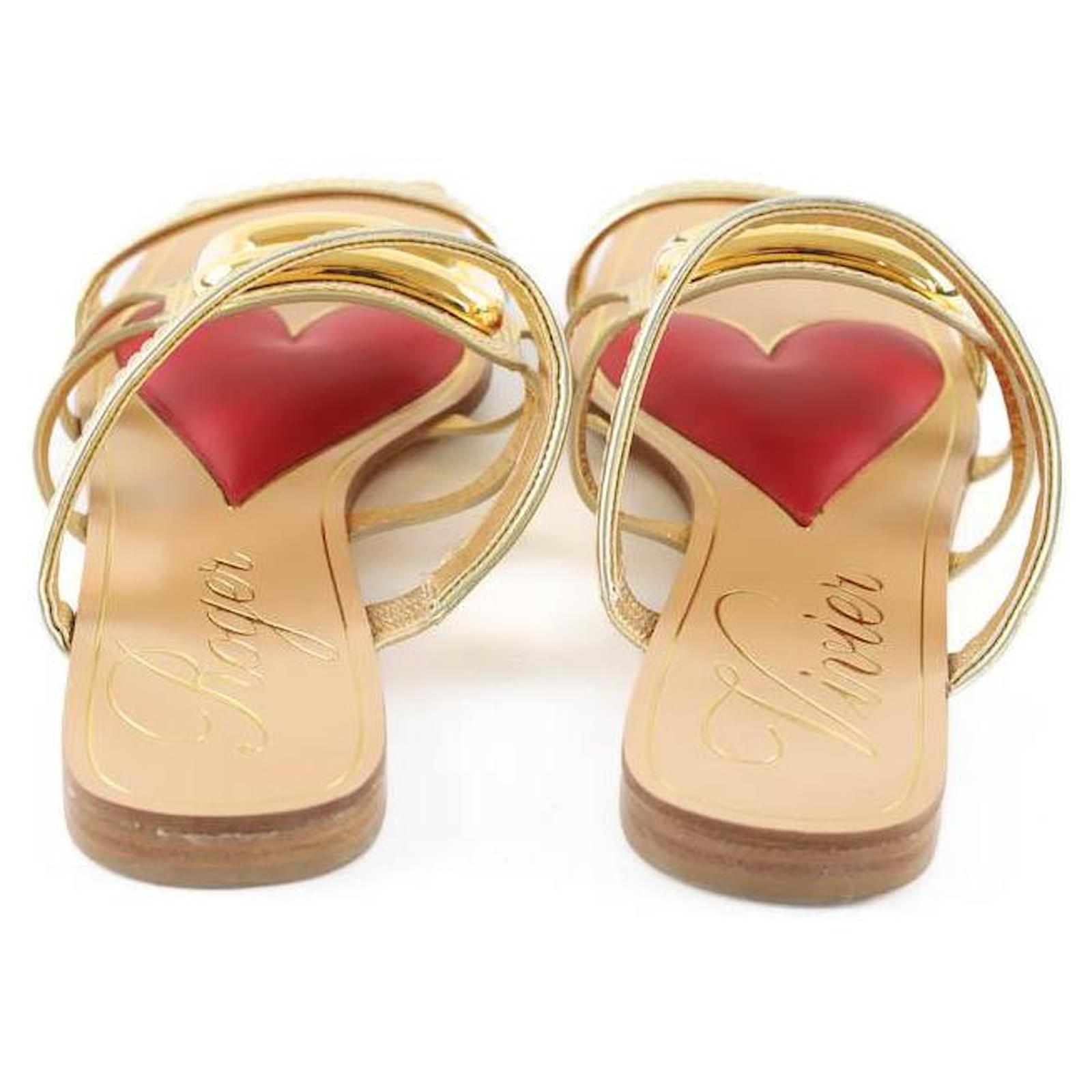 Second-hand Roger Vivier sandals in gold. Main material leather. Size 40. Women’s Collection. Very Good Condition. Reference: 024190186.