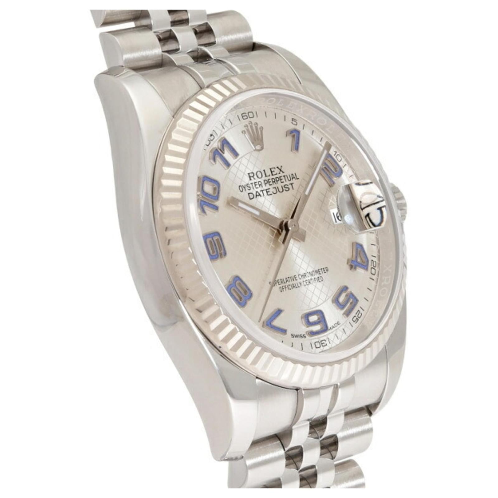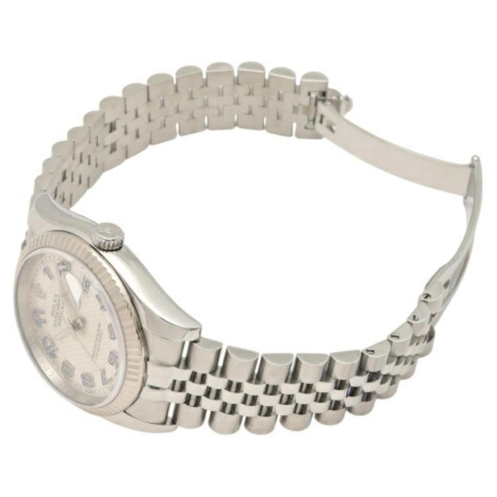 The Rolex Datejust 36 is a sophisticated wristwatch designed for men, featuring a silver dial and crafted from stainless steel for both the case and band. This self-winding automatic movement timepiece has a case diameter of 36mm and is suitable for a wrist size of 17cm (6.69 inches). \n\nThis particular watch is in very good used condition, with insignificant scratches on the bezel, case, and bracelet, while the dial and glass remain free from any scratches. It comes with an international warranty and is ranked as \”Rank A Used,\” indicating minimal signs of wear. Potential buyers are encouraged to review the provided images for a detailed view of the watch’s condition and included accessories.