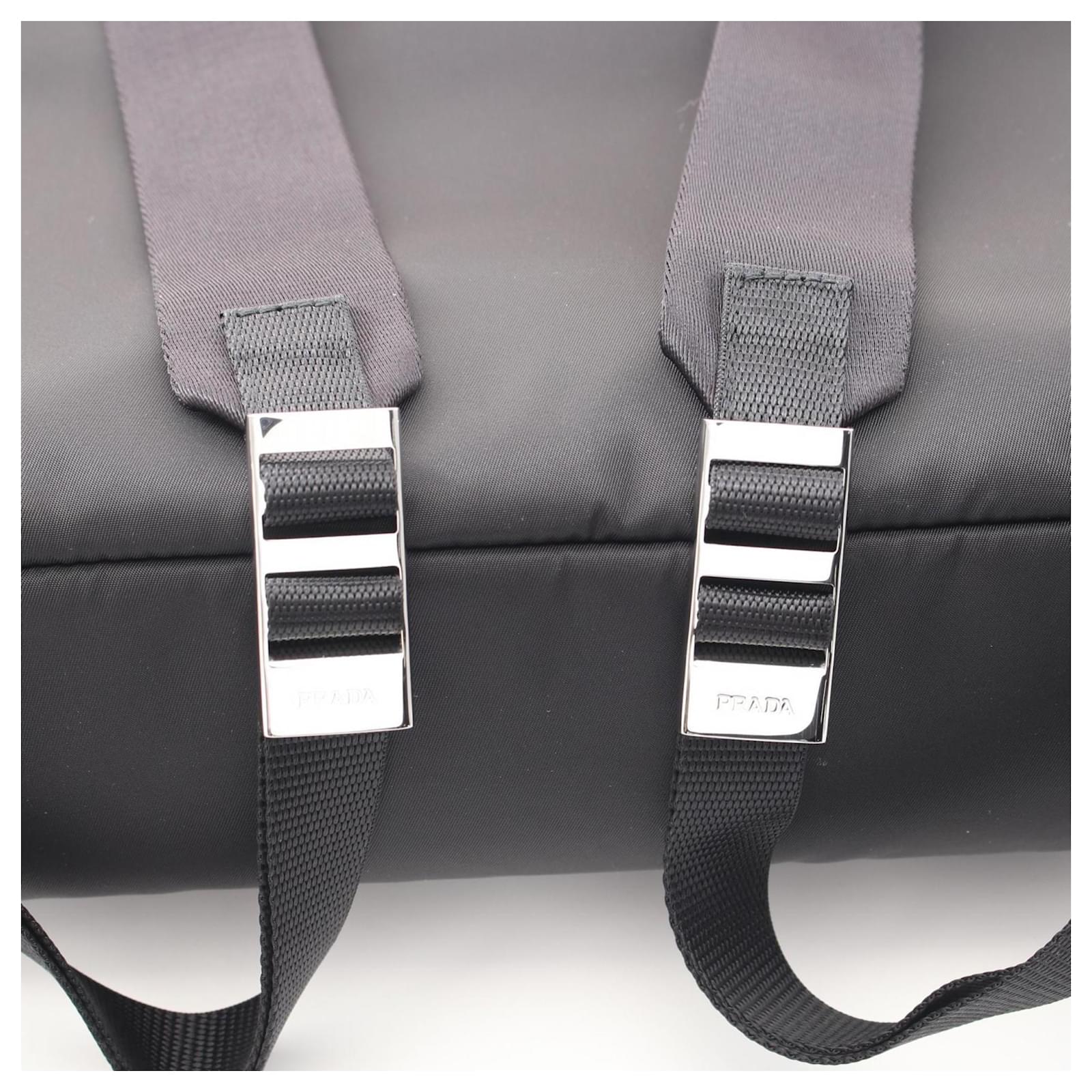 The Prada Tessuto Backpack is a stylish accessory designed for practicality and elegance. Made from durable nylon and featuring Saffiano triangle leather accents, this black backpack measures 40cm in height, 38cm in width, and 9.5cm in depth. \n\nThis item is in opened but never used condition, classified as a display item with insignificant traces of use, scratches, and dirt. It comes with original accessories, including a box and a dust bag. For a complete understanding of its condition and included items, please refer to the provided images.