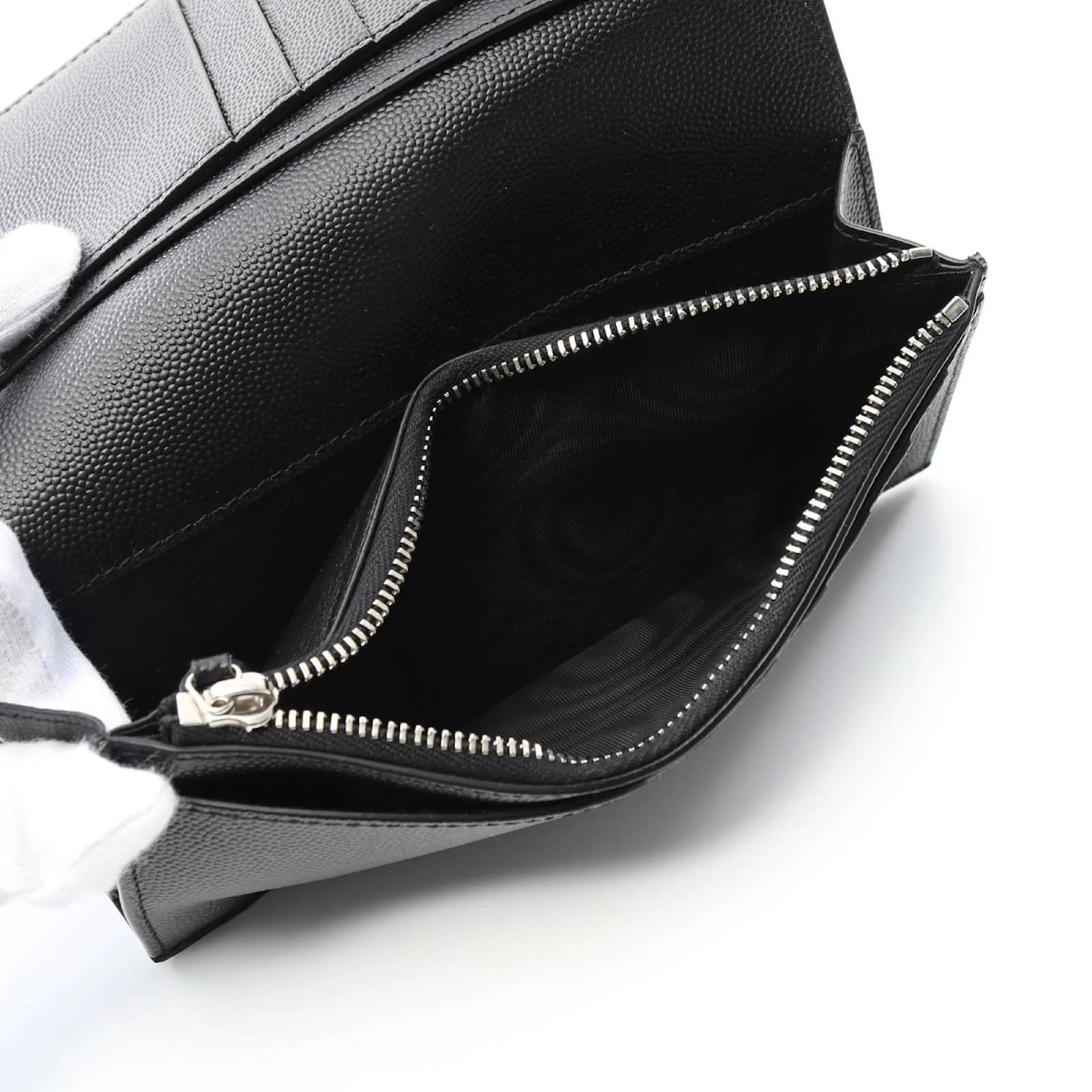 This Saint Laurent bi-fold wallet is crafted from leather and features a sleek black design. Measuring 18cm x 9cm x 2cm, it is compact yet functional, making it suitable for everyday use. The wallet is new and has never been used, ensuring it is in pristine condition. It comes with a box and a dust bag for protection. Before purchasing, it is advisable to review the images of the included accessories.