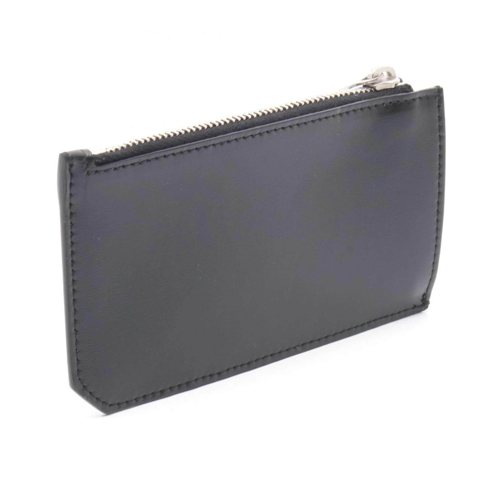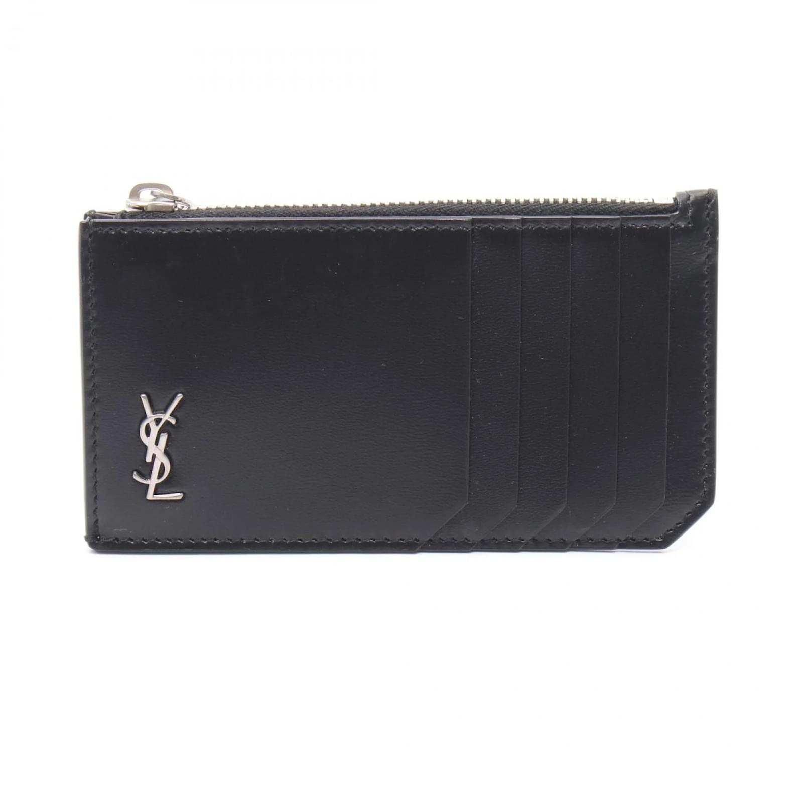 This Saint Laurent bi-fold wallet is crafted from black leather, offering a sleek and stylish accessory for both men and women. Measuring 7cm x 13cm x 1cm, it is compact yet functional, making it suitable for everyday use. The wallet features the iconic TINY MONOGRAM design, adding a touch of elegance to its practical form. \n\nIncluded with the wallet are a box and a dust bag for protection and storage. The item is new and has never been used, ensuring it is in pristine condition. Before purchasing, potential buyers are encouraged to review the images of the included accessories.