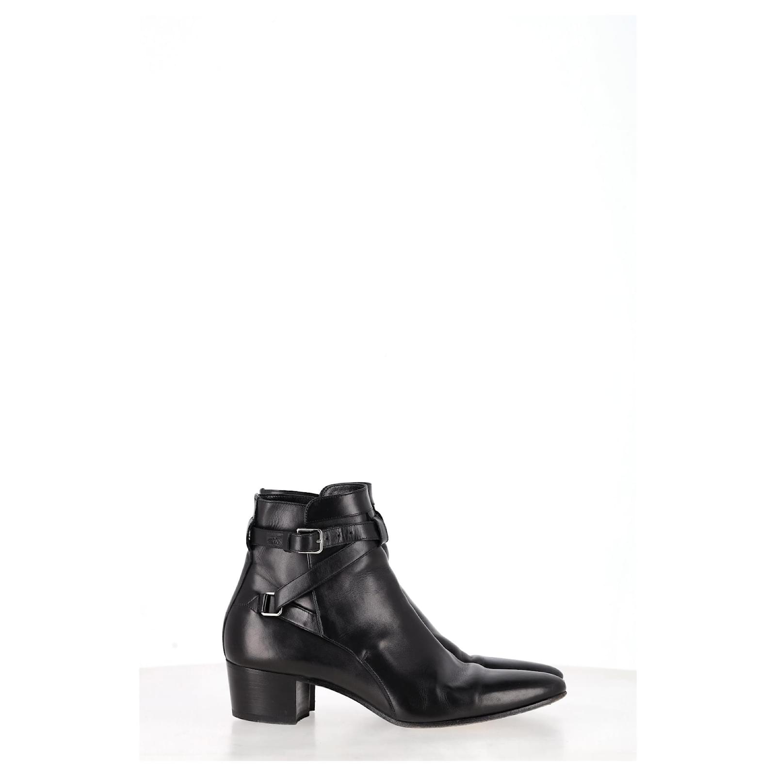 The Saint Laurent Blake ankle boots are your go-to for chic, daily sophistication. Designed in glossy crocodile-embossed black leather with stretch gored panels and a subtle 2-inch heel, they offer all-day comfort without sacrificing edge. Polished enough for work, cool enough for weekends — these boots are the epitome of Saint Laurent’s urban luxury.\n\n\nSaint Laurent Blake Ankle Boots In Black Leather\nCondition: very good\nSigns of wear: No visible sign of wear. No Mark at insole., Unused or used once, but as good as new. Very light mark at soles.\nPackaging: None\nColor: black\nMaterial: Leather | leather\nSize: EU | 39.5\nMeasurements: Heel height: 45; Insole length: 300\nSKU: NAPPUGBSH468300W \n Product Id: 468300 \n
