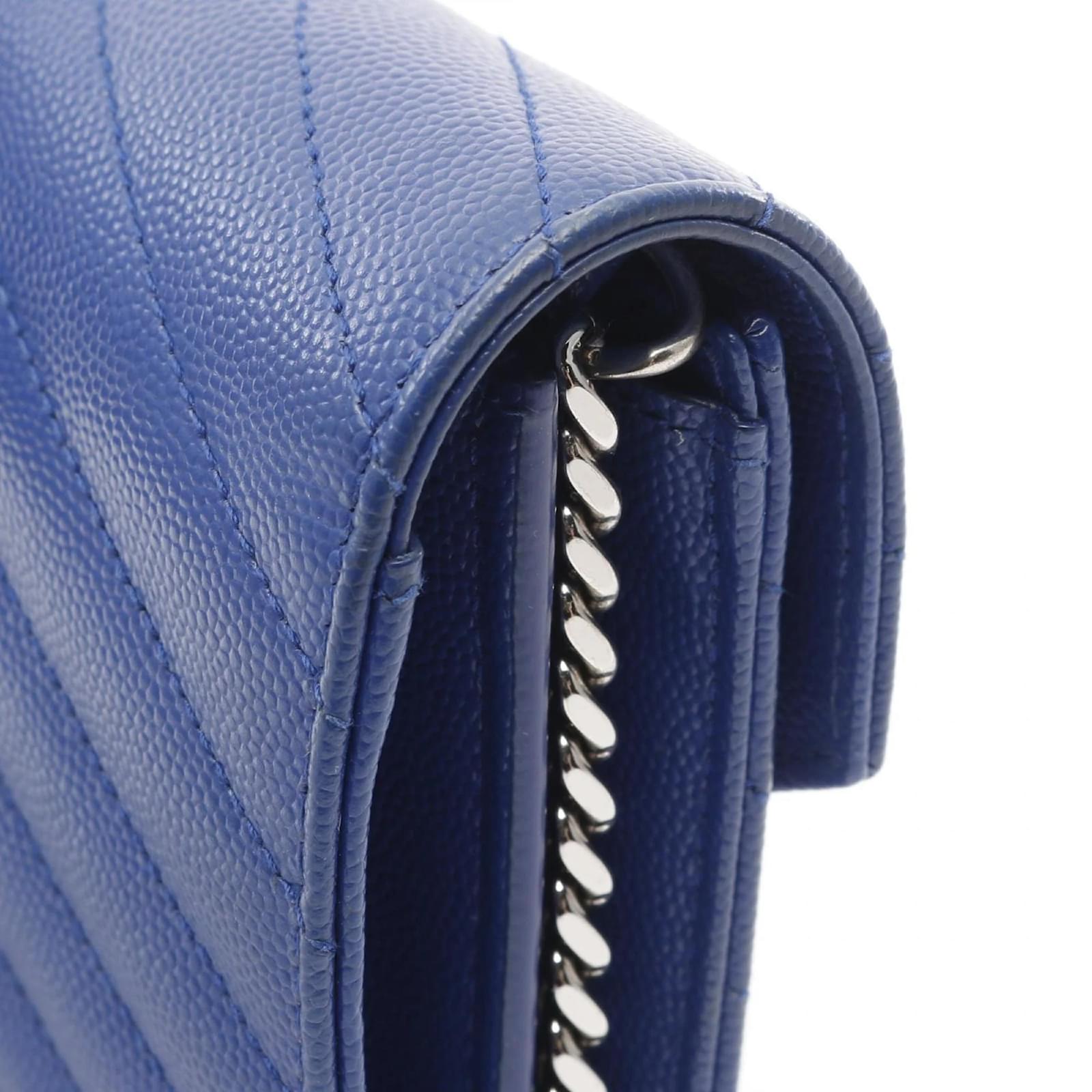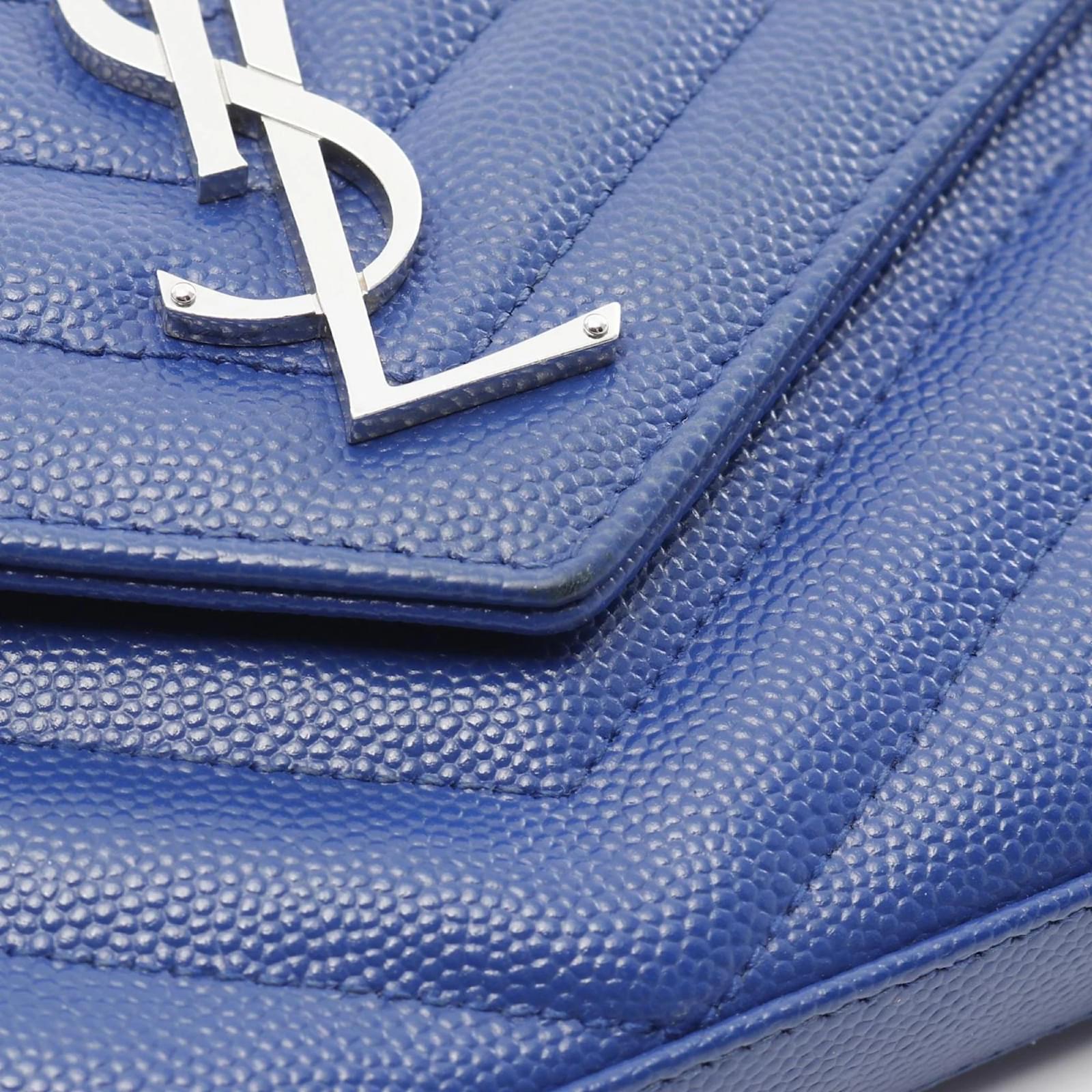 The Saint Laurent Cassandra Classic Shoulder Bag is a stylish accessory crafted from leather in a classic blue color. With dimensions of 14cm x 22cm x 4cm, and a strap length of 105cm, it offers a practical size for everyday use. This bag is categorized as used but remains in good condition, showing slight traces of use, including minor scratches and dirt. It is important to review the provided images for a clear understanding of its condition. The bag comes with a serial number of 1117, ensuring its authenticity.