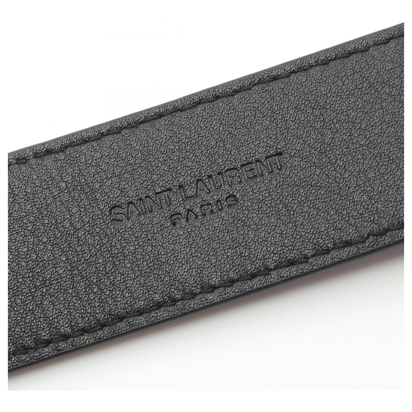 The Saint Laurent Cassandra Belt is a standard leather belt designed for both men and women, featuring a classic black color. It measures between 85cm to 95cm (33.46” to 37.4”) in length, making it a versatile accessory for various outfits. This item is in opened but never used condition, with insignificant traces of use, scratches, and dirt. It is important to refer to the images for a clear understanding of the item’s condition. No additional accessories are included with the belt.