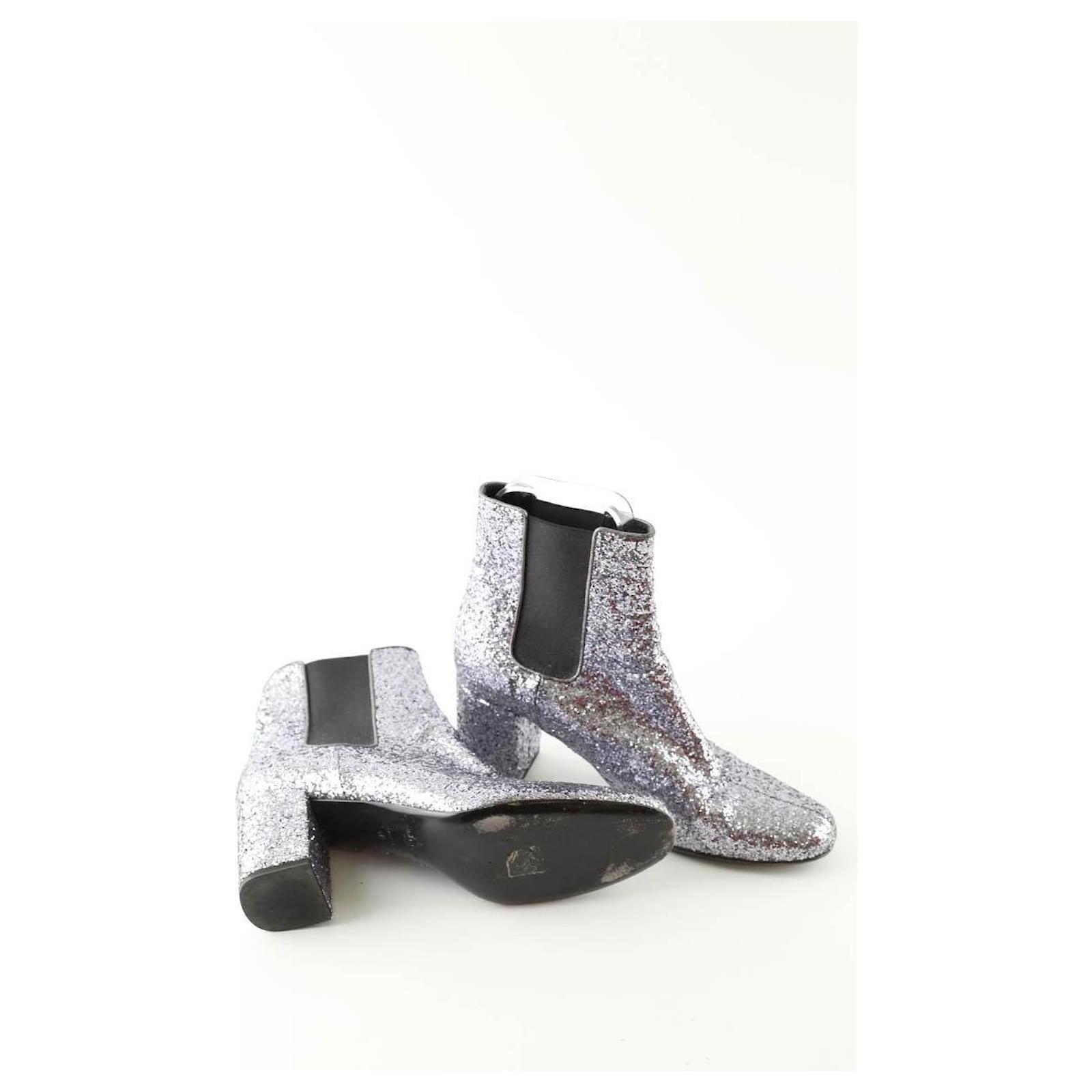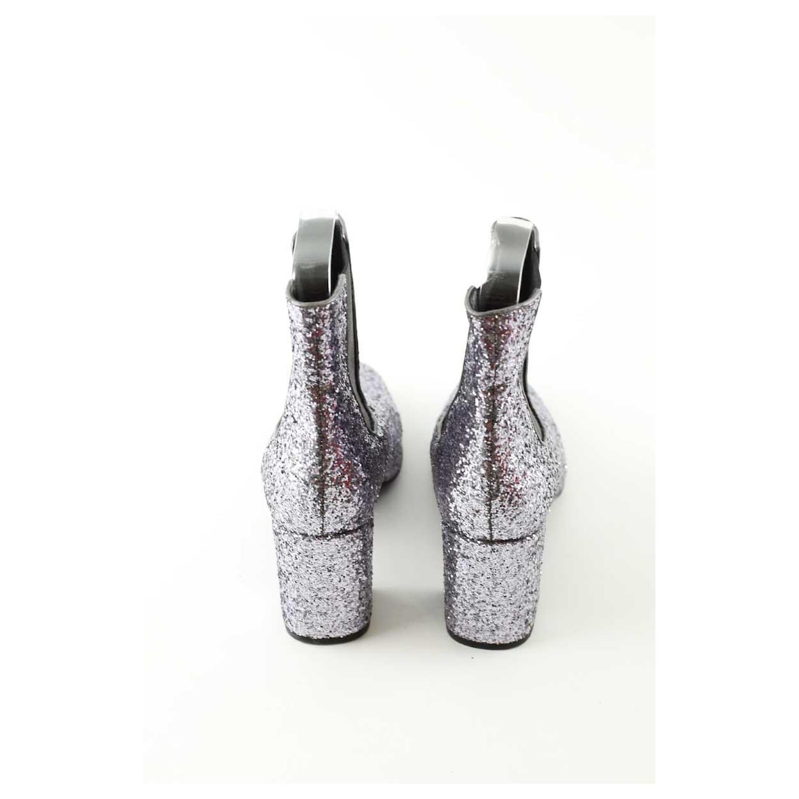 Second-hand Saint Laurent silver boots. Main material sequins. Size 40. Heel height: 8cm. Women’s collection. Very Good Condition. Reference: 041980063.